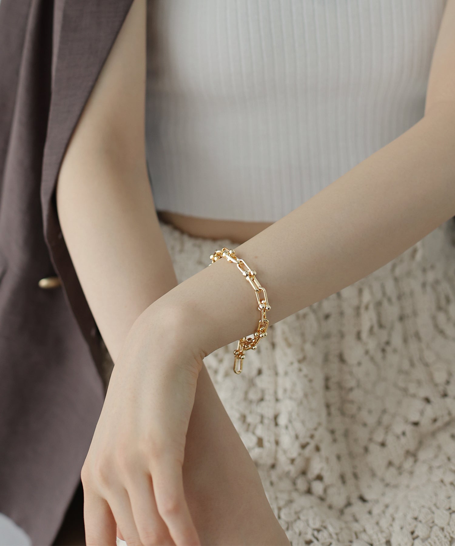 繊細なチェーンを施した、上品なUリンクチェーンブレスレット。