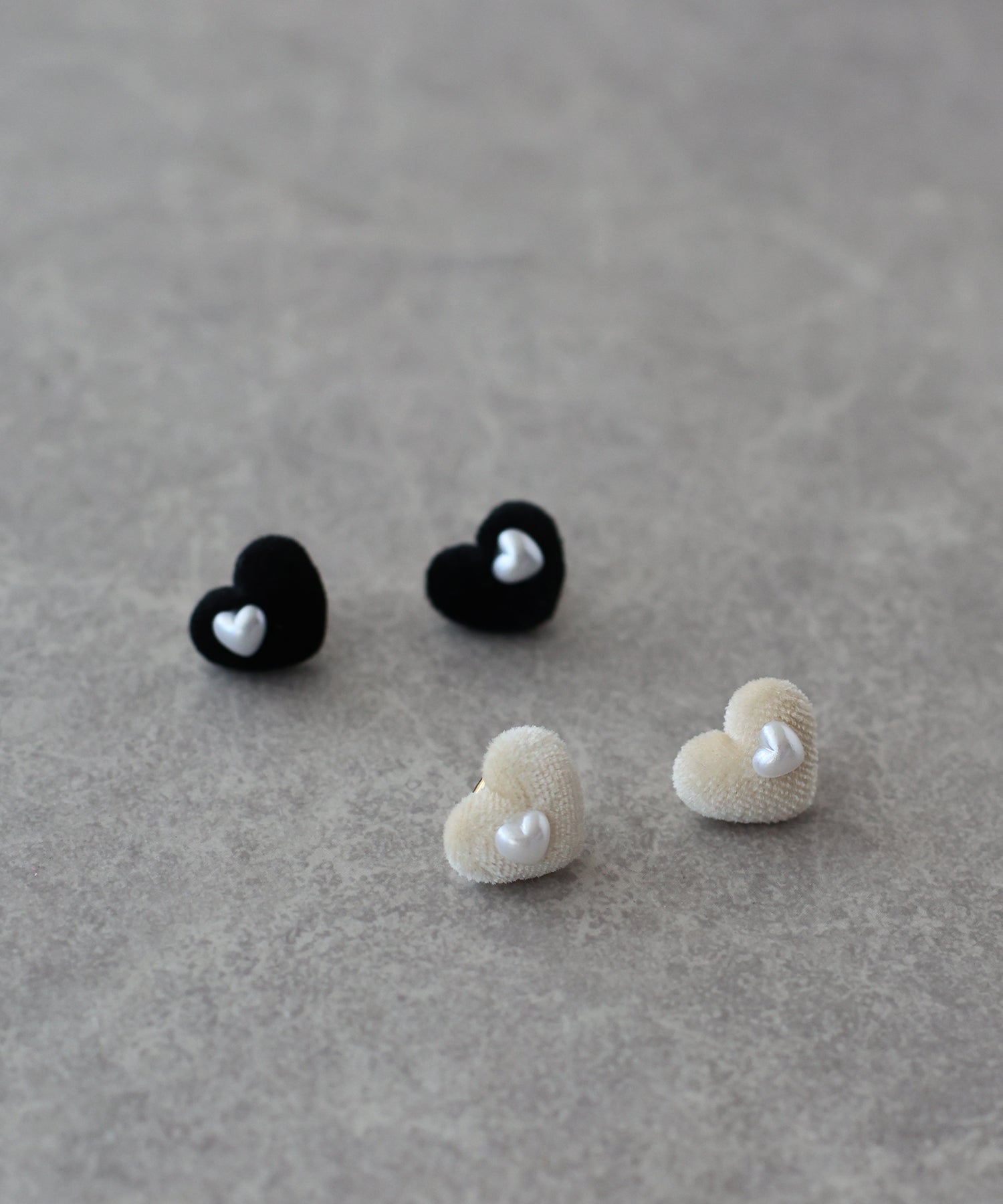 シーズンムード満載のフロッキーハートピアス ?POINT ころんとしたハートモチーフのピアス。 ベロア風の暖かみのある素材に、ハート型のパールがちょこんとついたラブリーなデザイン? 付けるだけで秋冬の雰囲気を取り入れられ、顔周りも華やかに! かわいらしいデザインですが、シンプルなカラーなので様々なコーディネートにおすすめです。