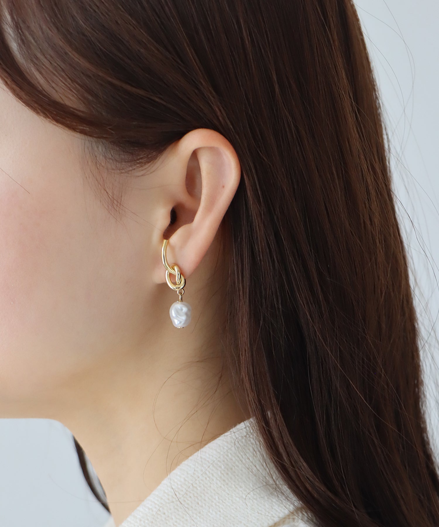 ?DETAIL キャッチ ノットの先に付いたパールが揺れるデザイン