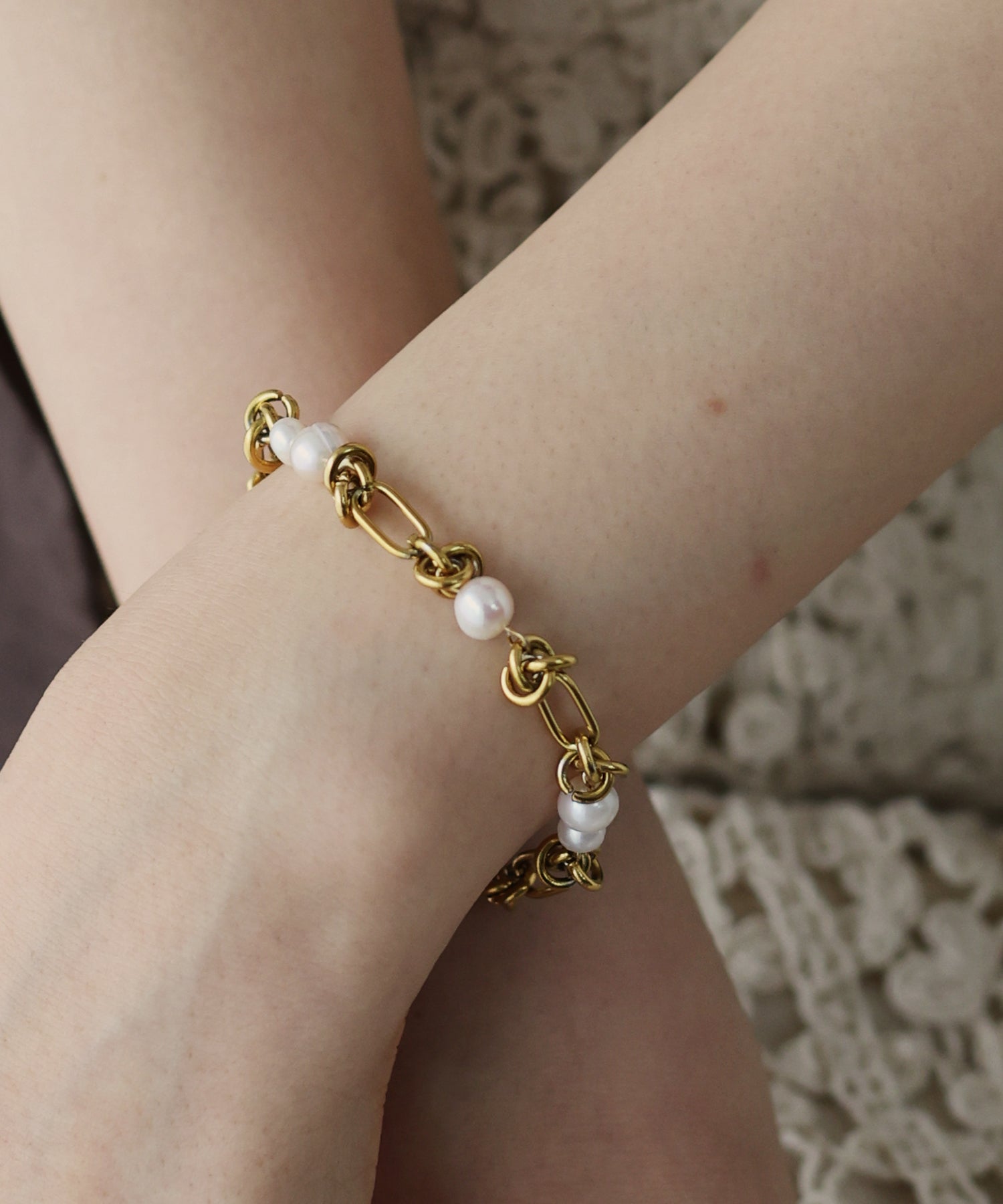手首を上品に彩る淡水パール&チェーンブレスレット