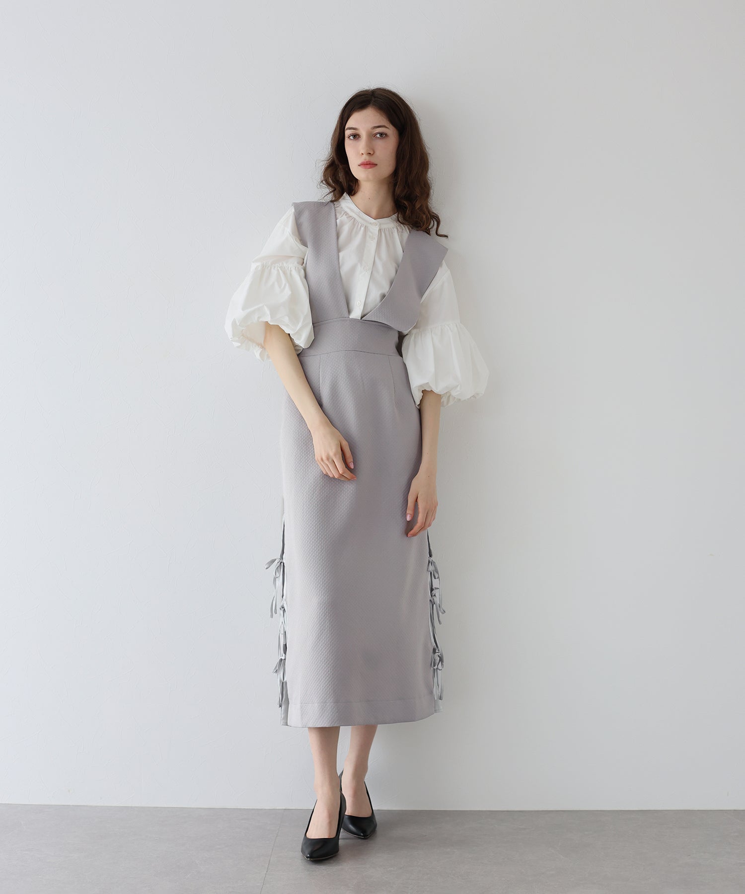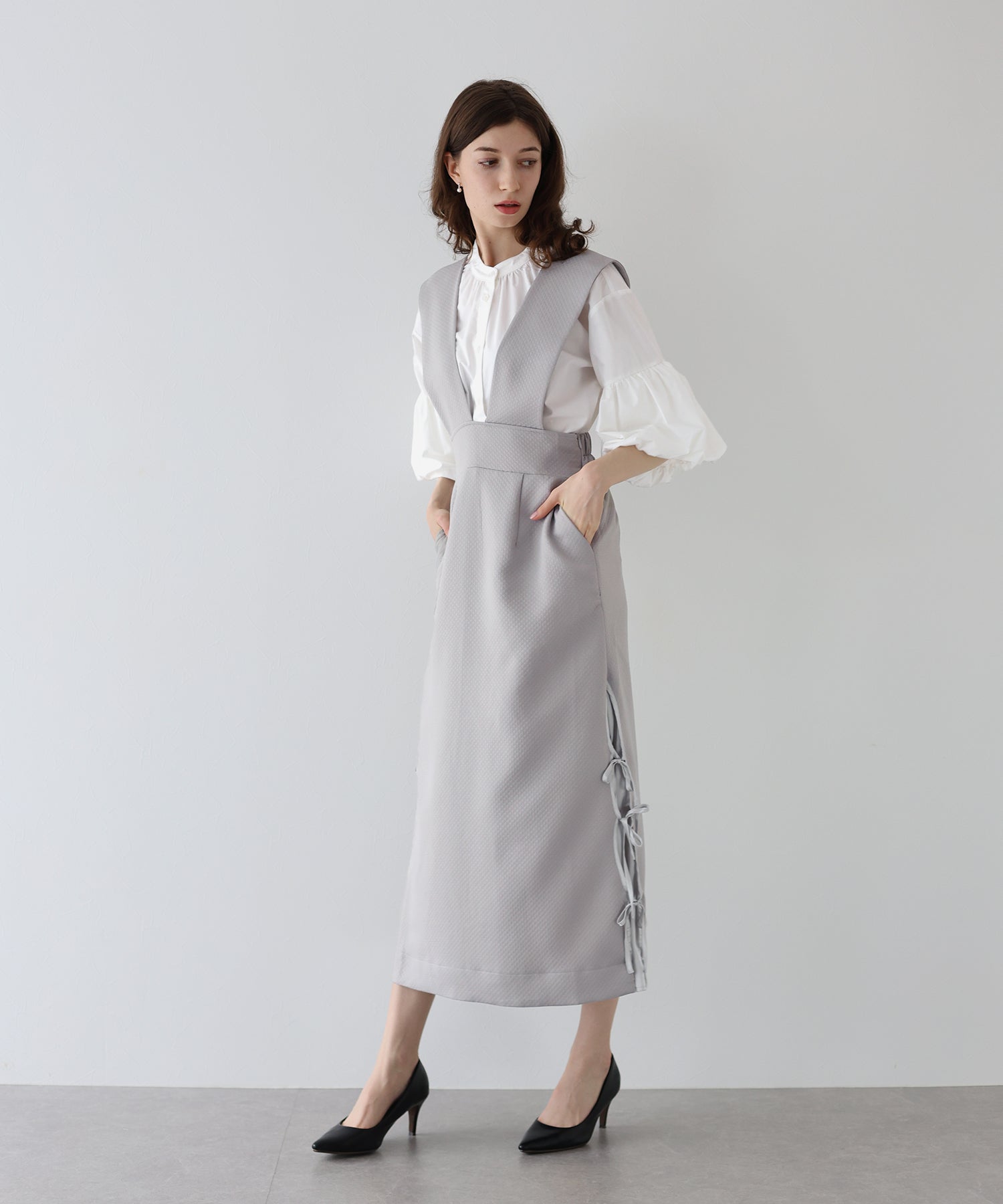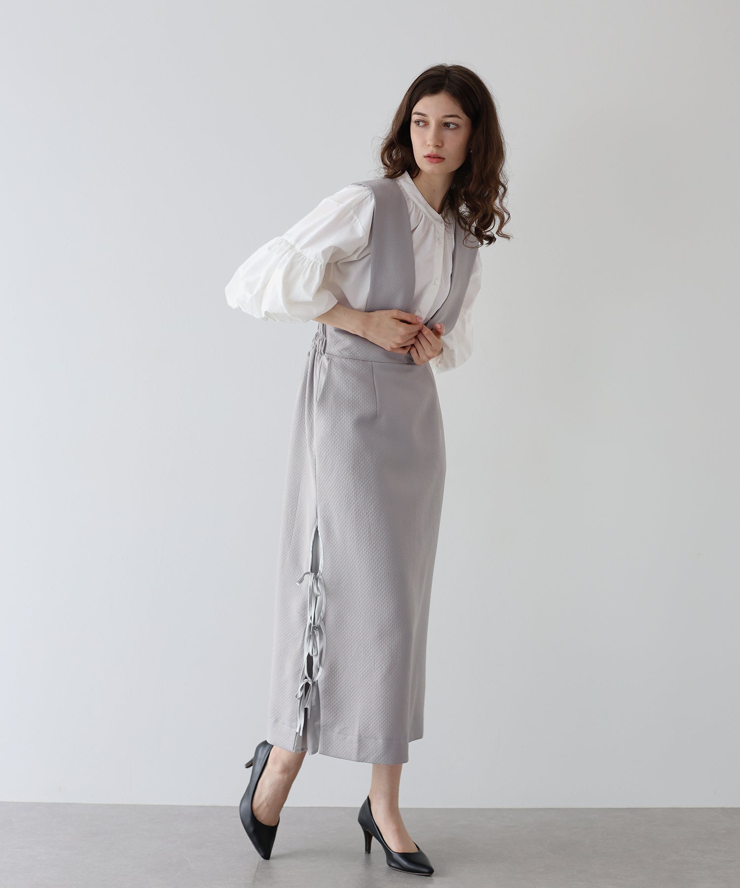 ?STYLING ブラウスやタートルネックのアイテムを合わせれば、デイリーからデートやお出掛けにも大活躍なフェミニンコーデが完成。 年中着られる素材感なので、春夏はブラウスやTシャツ、秋冬はニットと合わせると◎