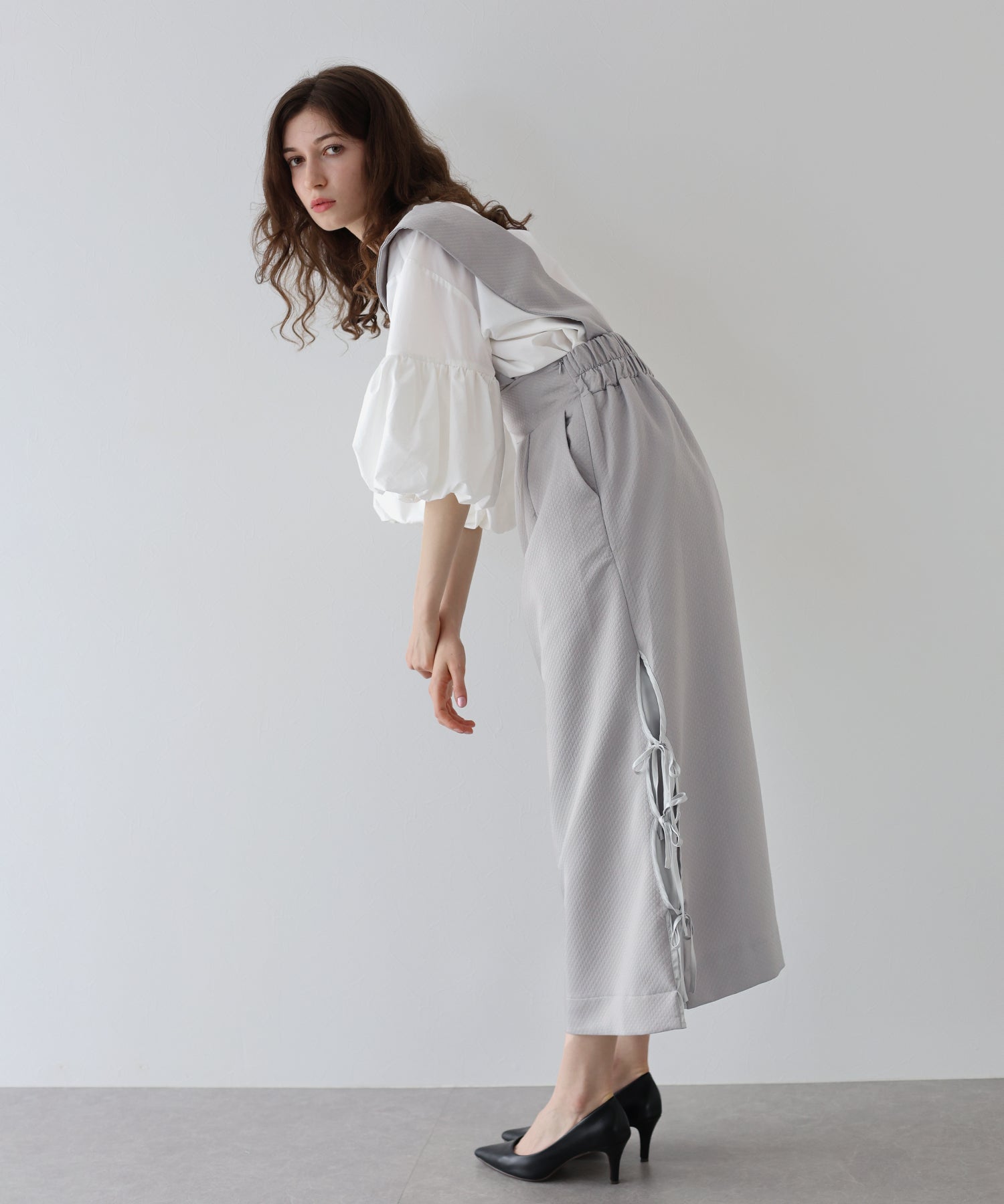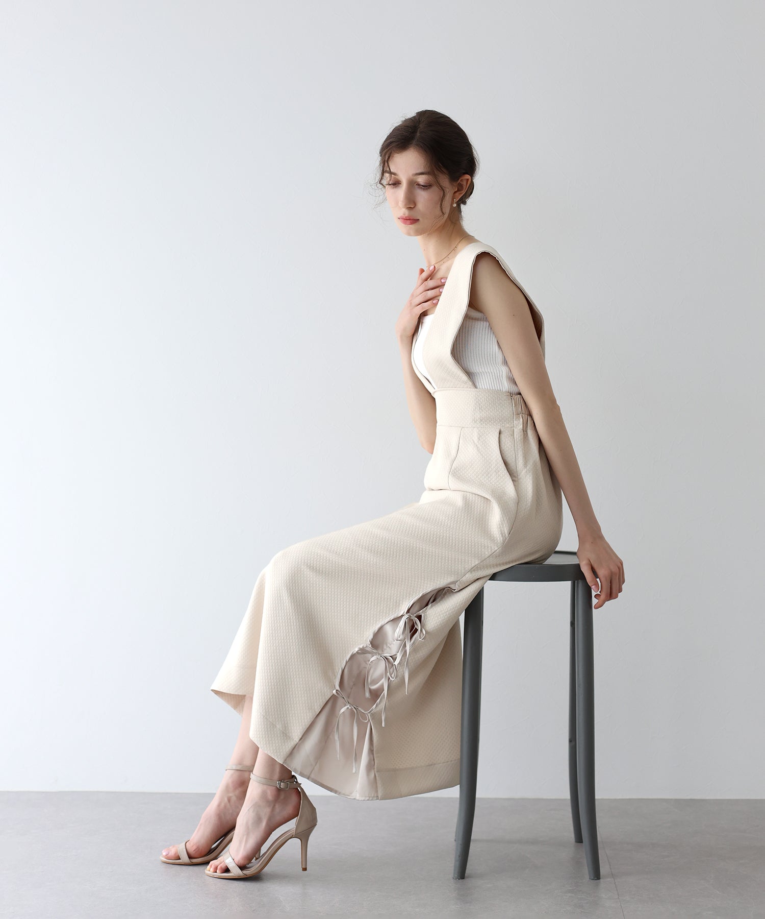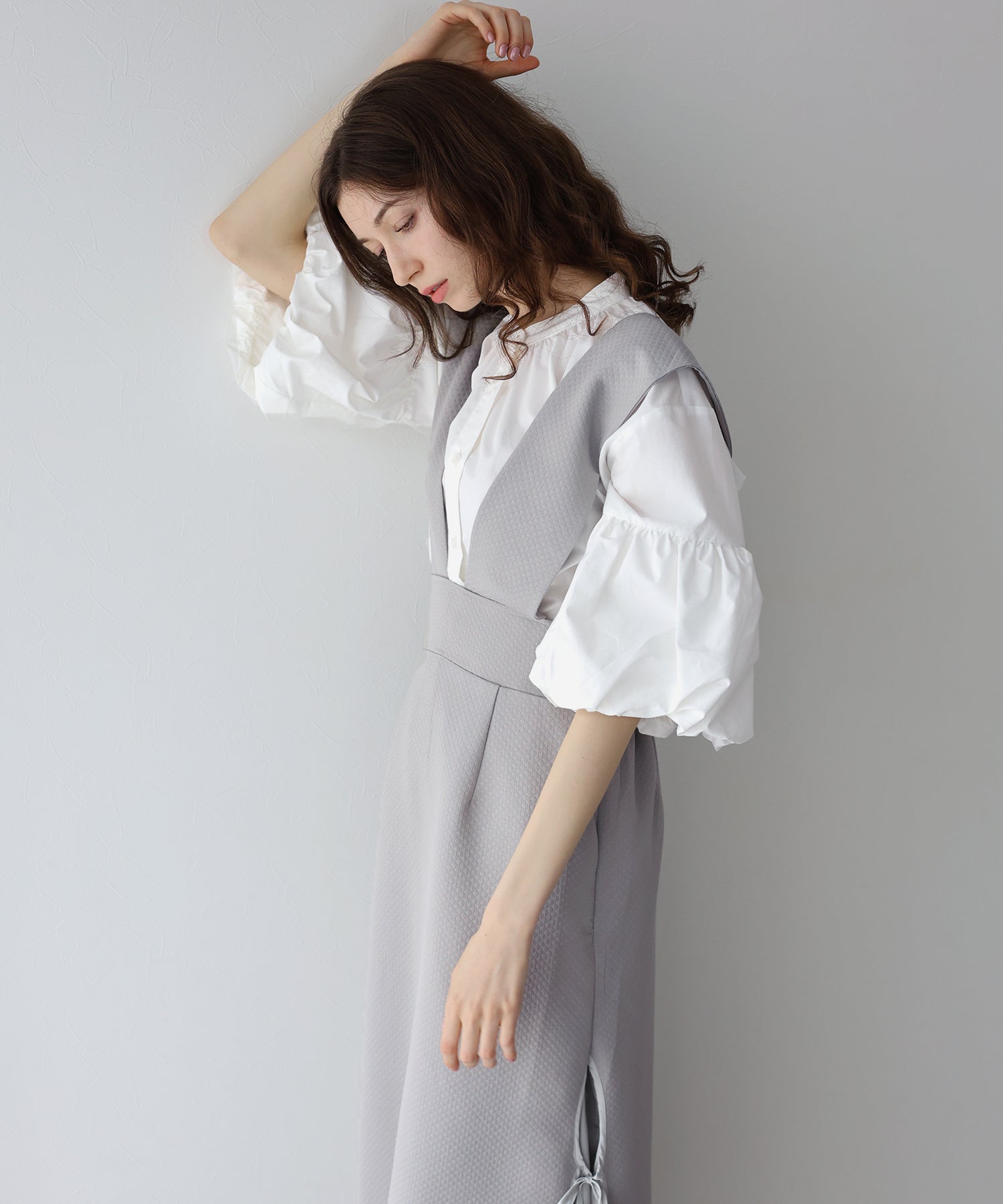 ?STYLING ブラウスやタートルネックのアイテムを合わせれば、デイリーからデートやお出掛けにも大活躍なフェミニンコーデが完成。 年中着られる素材感なので、春夏はブラウスやTシャツ、秋冬はニットと合わせると◎
