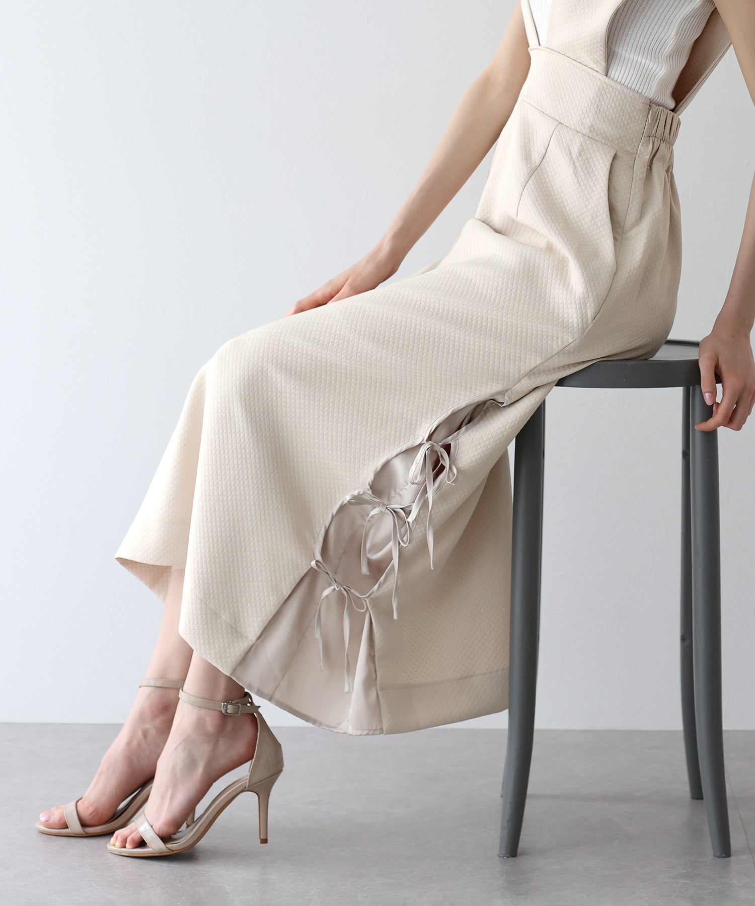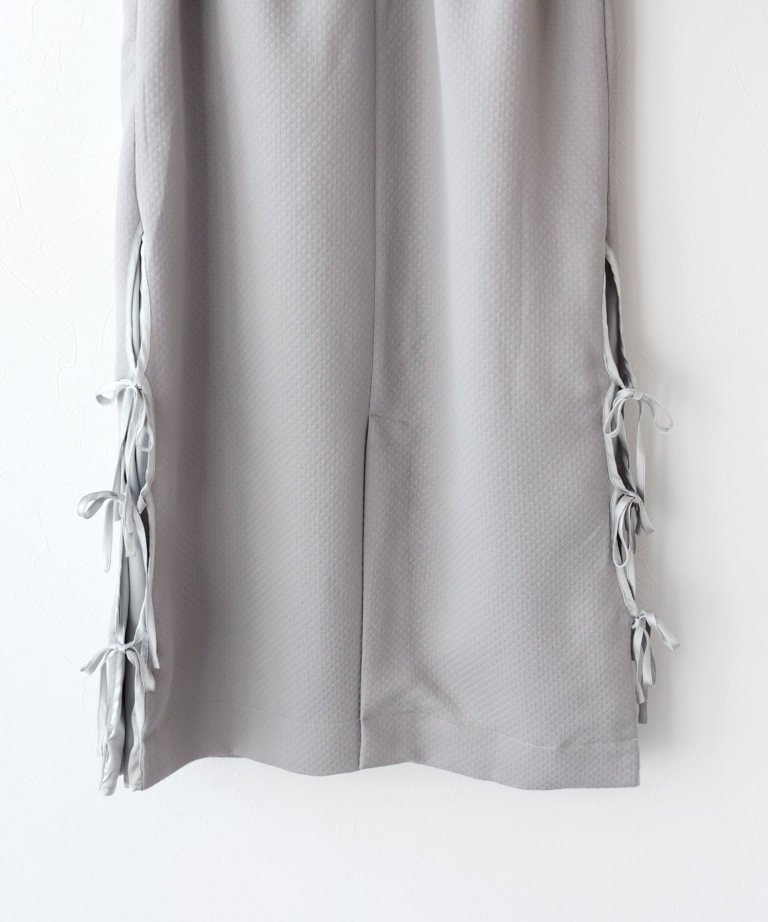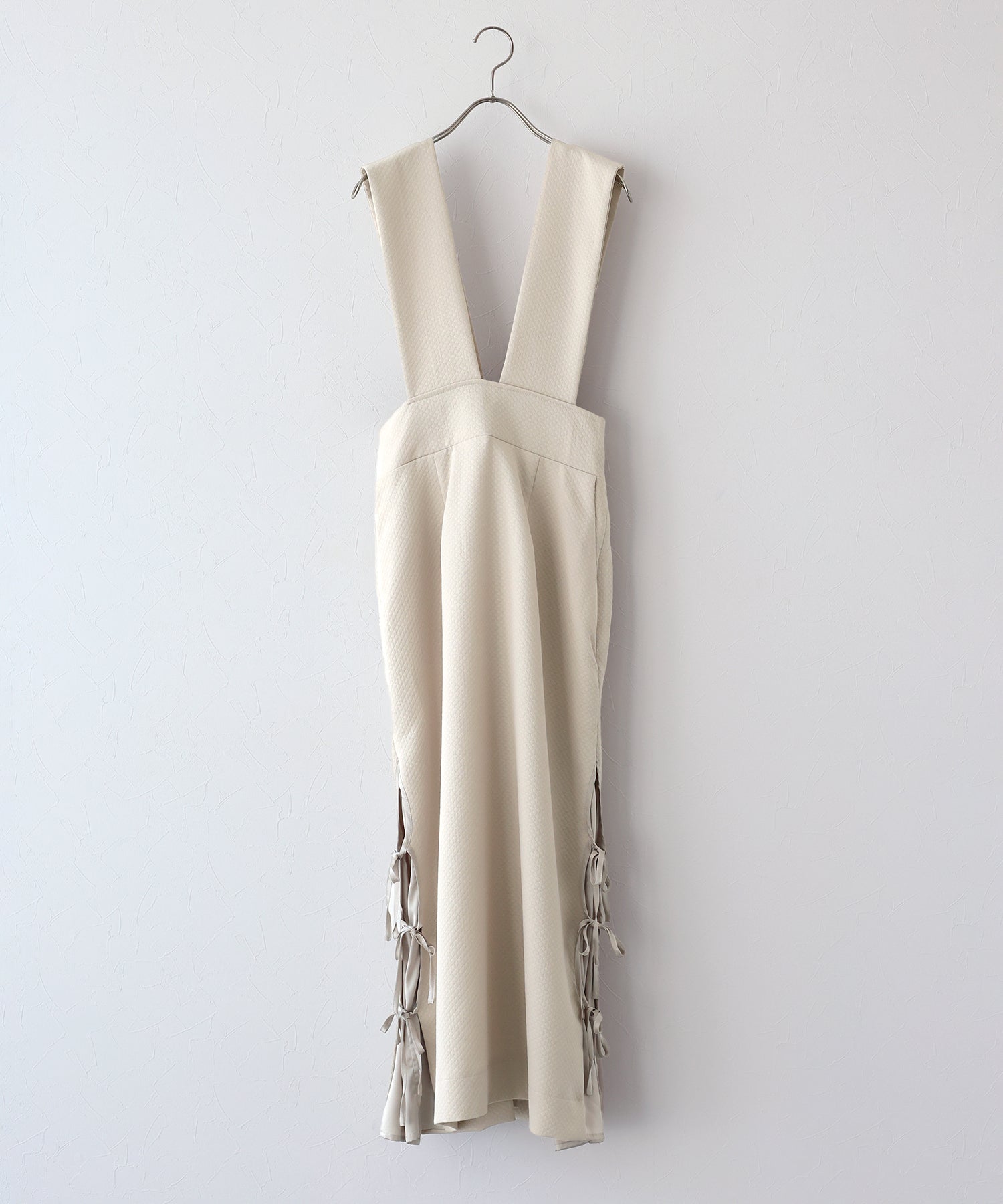 ?DETAIL ポケットあり 裏地あり サイド裾リボン スカート部分ダーツライン入り キルティングデザイン バックスリット入り ウエストバックゴム入り サイドファスナー付き