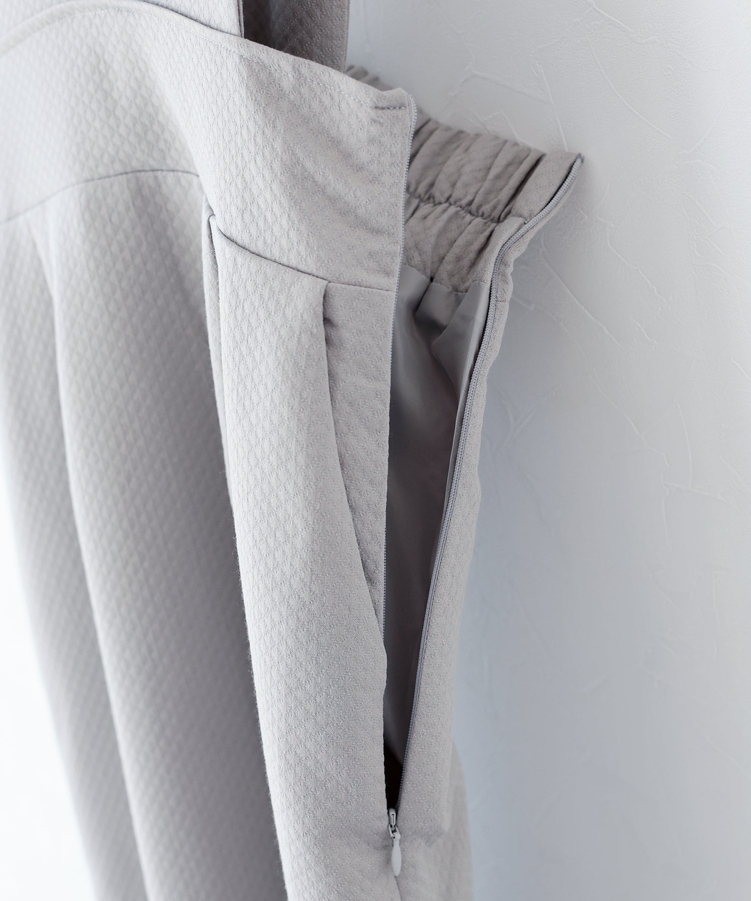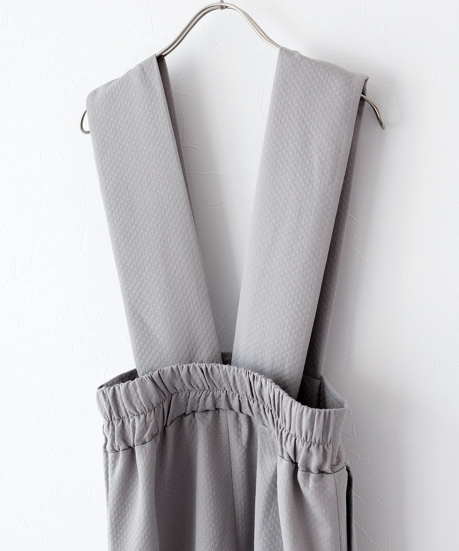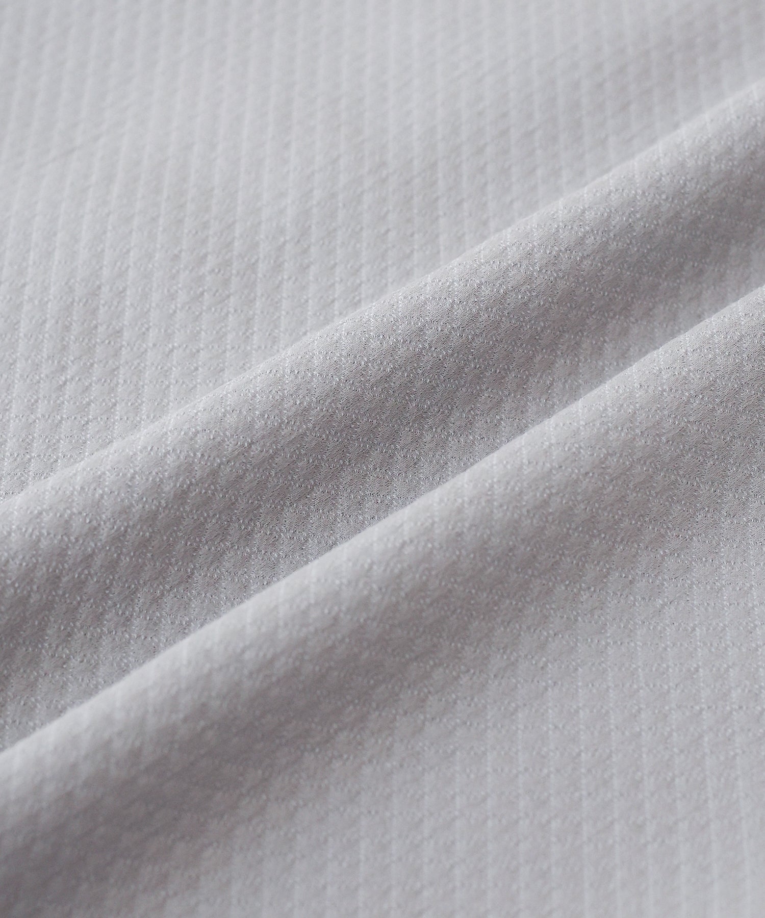 | 生地 | 石川県で生産されたキルティング風ジャガード素材。 実際のキルティングでは表現できない、シンプルながらも繊細な凹凸表現が特徴。 緯糸にレーヨンを使用することでしっとりとした質感を出しています。 |