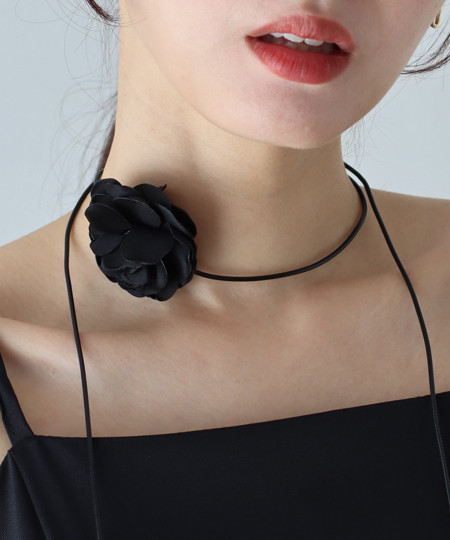 立体感のあるフラワーモチーフチョーカー ?POINT つけるだけで旬なスタイルが完成するコードネックレス。 華奢な紐に添えられた立体的なお花モチーフが目を惹き、 カジュアルスタイルからエレガントなドレススタイルまでおしゃれ度が一気にアップするトレンドアイテム! くるっと首に巻き付けて紐を垂らしたり、リボン結びをお花の近くに持ってきてガーリーに…と、 長めの紐なのでいろいろな結び方ができ、コーデによって雰囲気を変えることができます◎