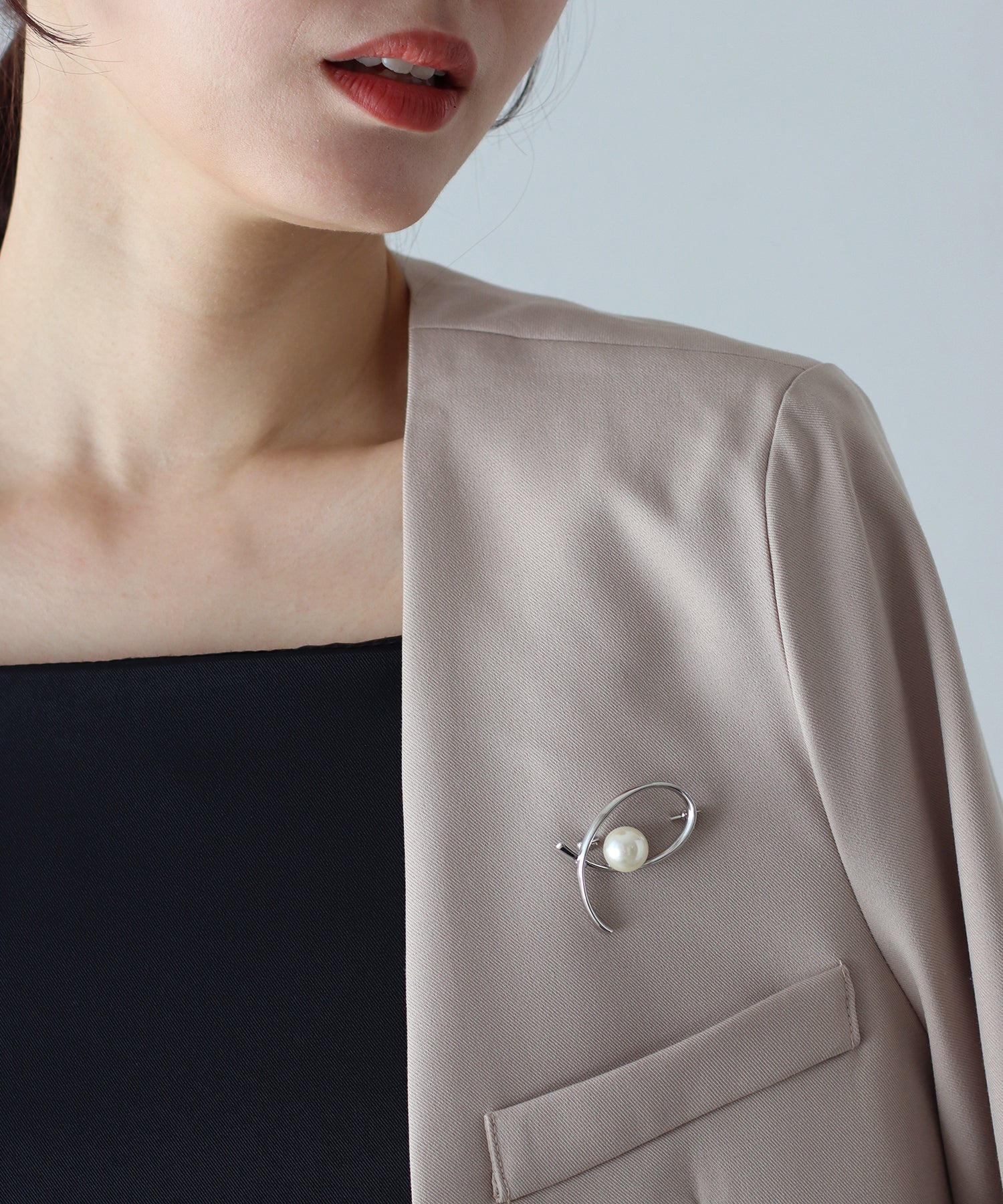 オケージョンからデイリーまで幅広く活躍するパール付きブローチ ?POINT 付けるだけでこなれ感をプラス。柔らかな曲線を描くメタルに上品なパールを組み合わせた華やかなコサージュ。 パールを一粒添えたデザインは小ぶりながらも存在感があり、 デイリーにはもちろんセレモニースタイルにも華やかさを添えてくれます。 シンプルなコーデで物足りない時に品良くスタイリングを仕上げてくれるプラスワンアイテムです。