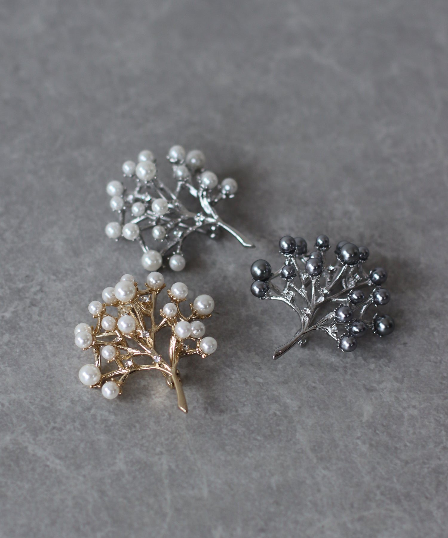 オケージョンからデイリーまで幅広く活躍するブーケパールブローチ ?POINT 繊細なリーフデザインにパールとビジューを散りばめた華やかなコサージュ。 花束のような形で存在感があり、セレモニースタイルに華やかさを添えてくれます。 大きいお花のコサージュが苦手な方にもさりげなく取り入れやすいデザイン。 目立ちすぎない落ち着いたカラー展開で、品良くスタイリングを仕上げてくれるアイテムです。