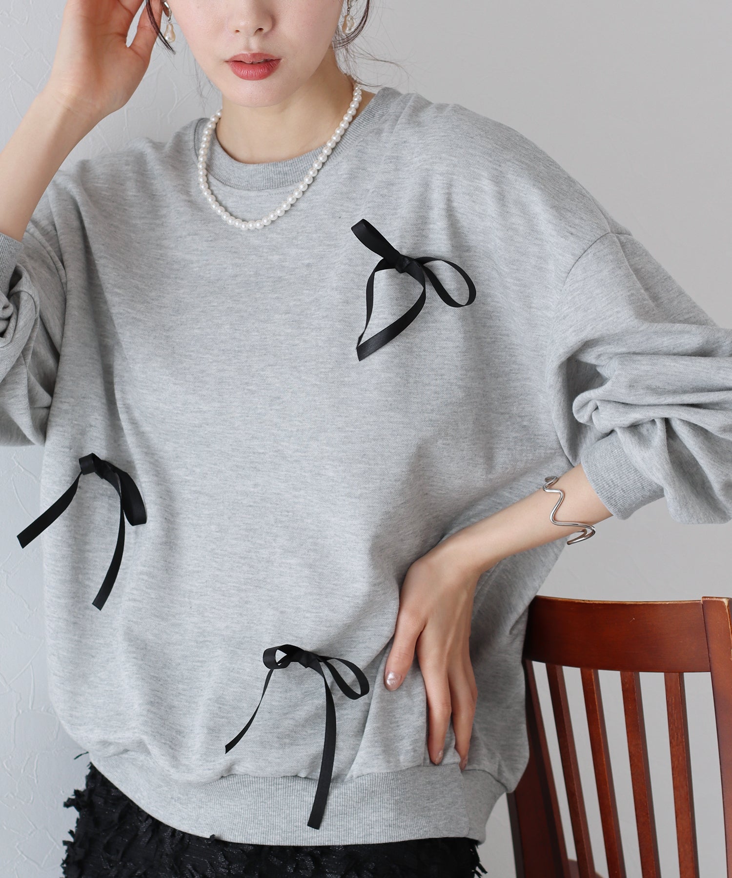 - 【SALE】リボン付きオーバーサイズスウェット