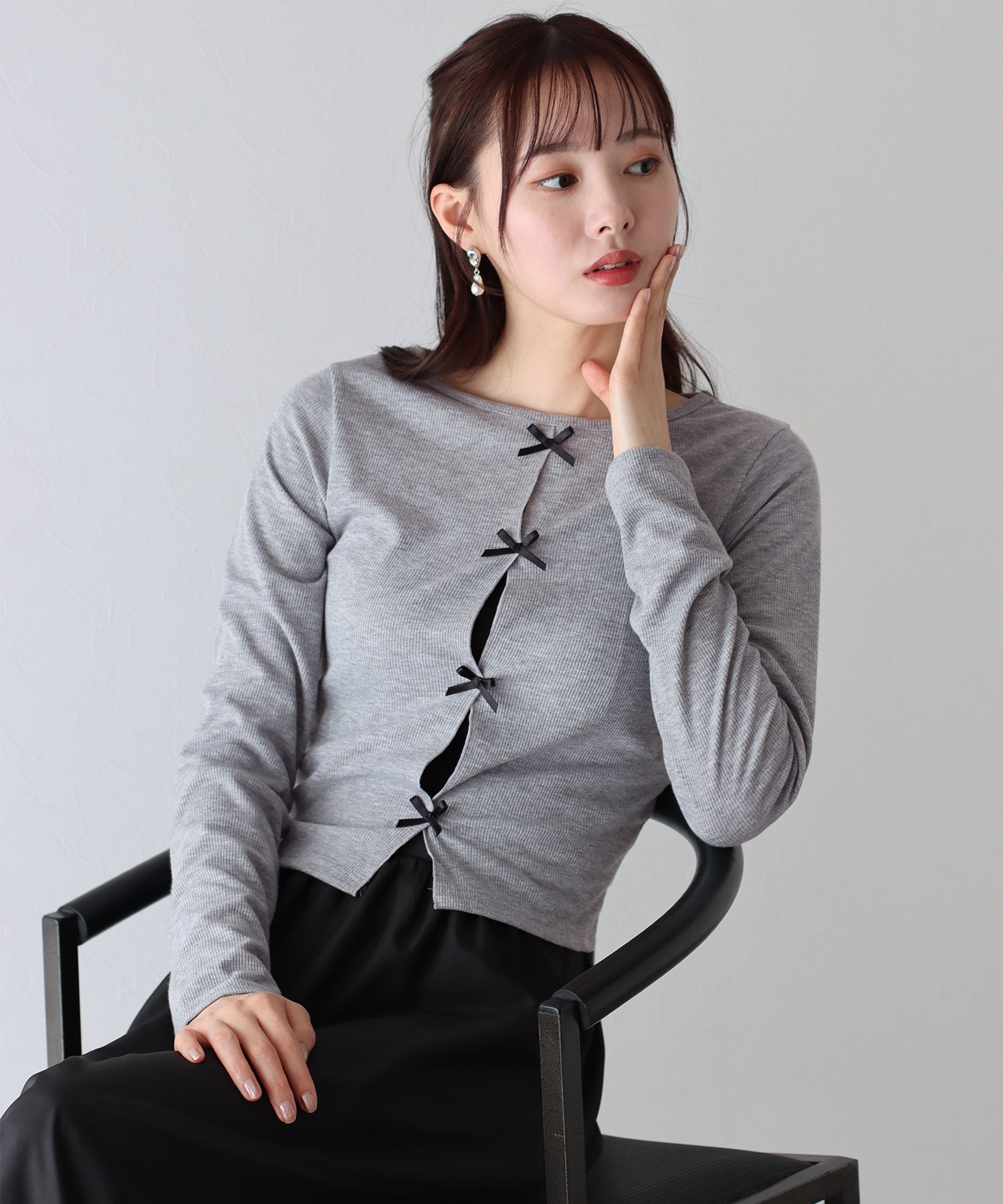 - 【SALE】ミニリボン付きホールデザインカットソー【ネコポス】