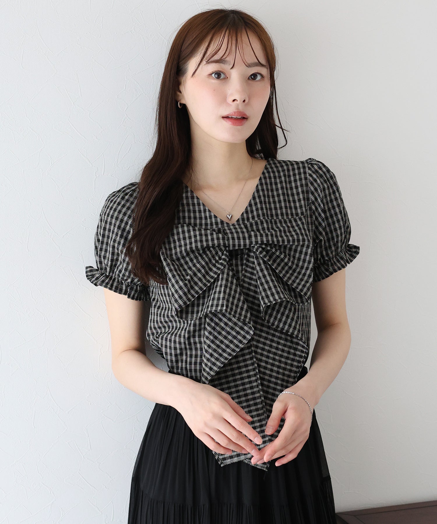 クラシカルなチェック×ビッグリボンが華やかな主役級ブラウス