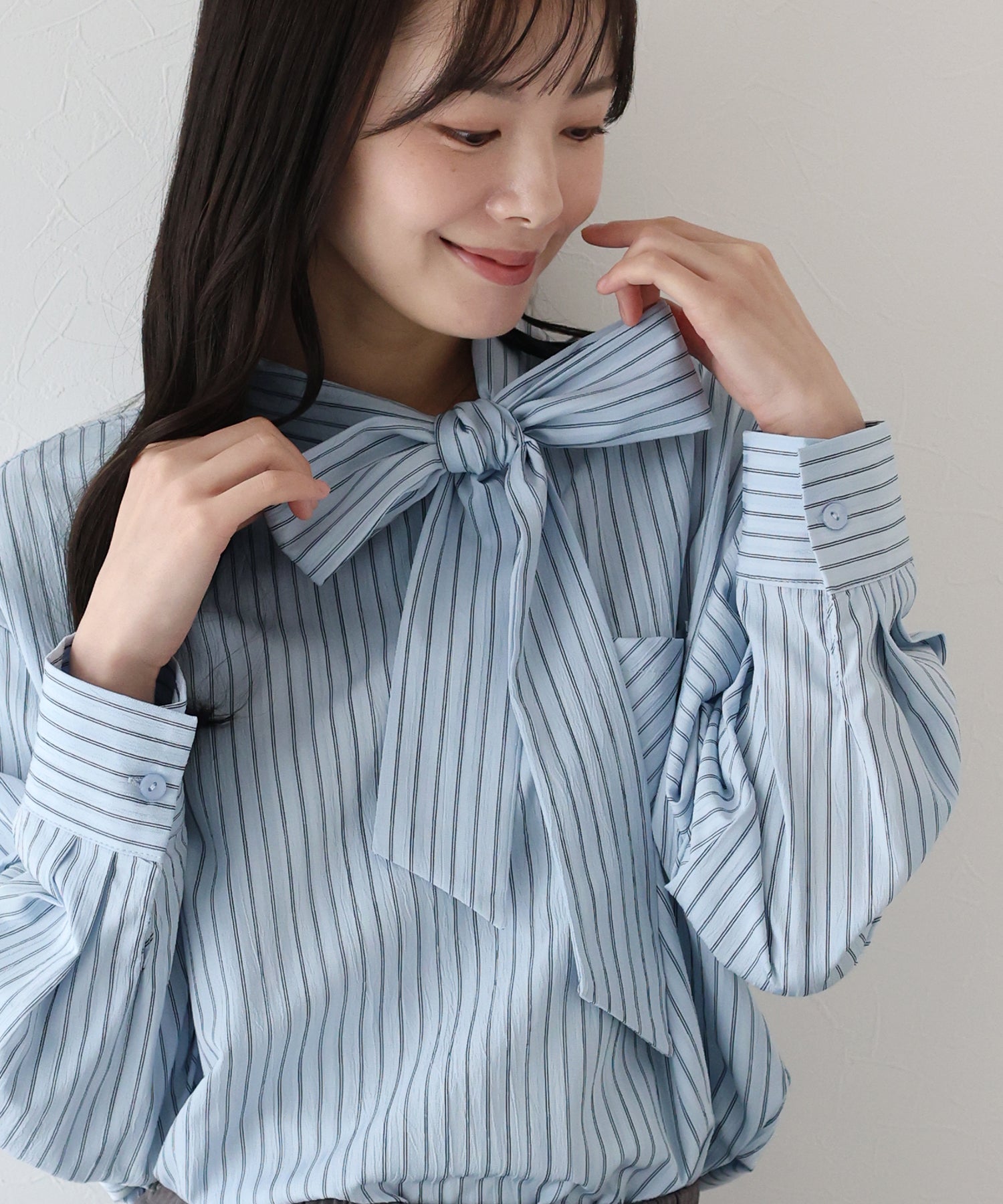 - ストライプ柄ボウタイシャツ【ネコポス】