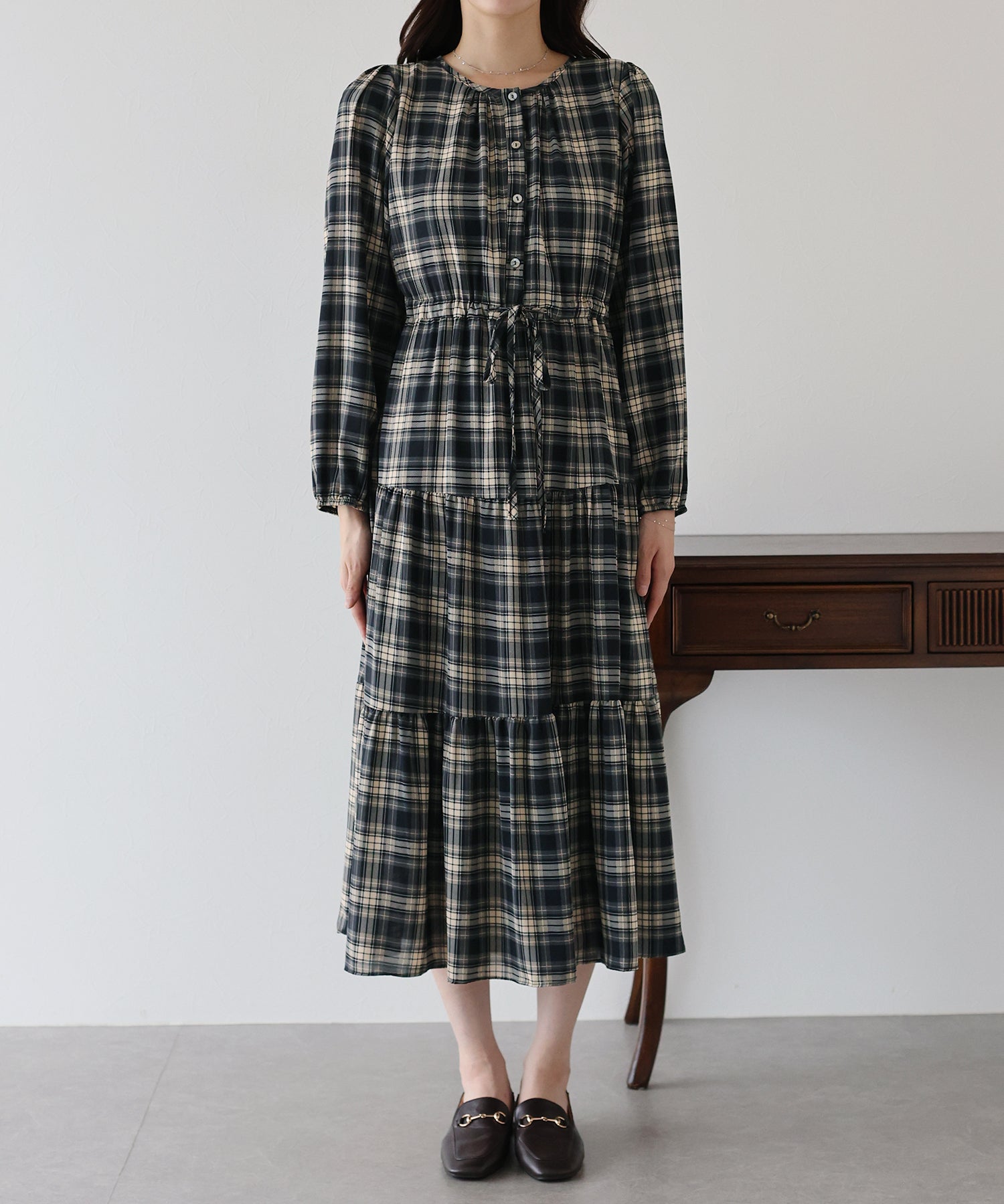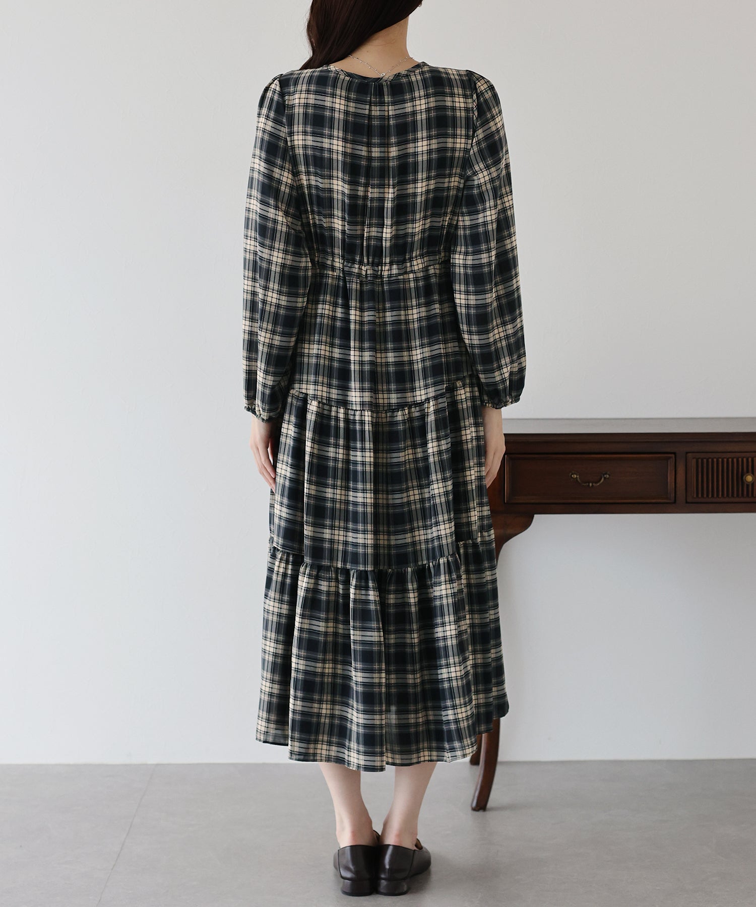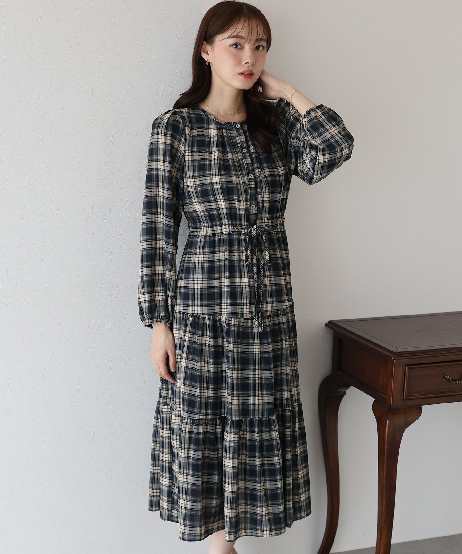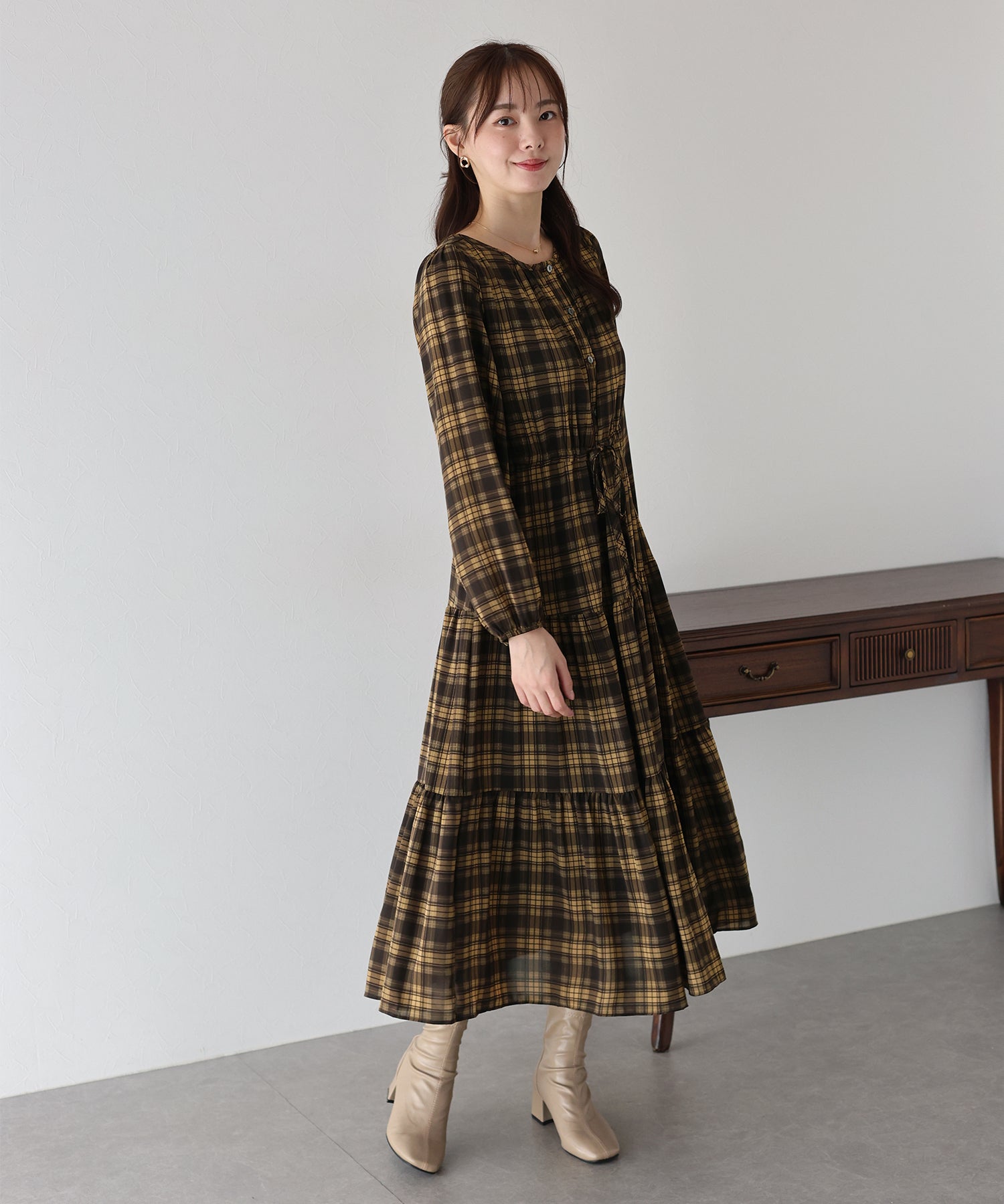 落ち着いた色使いのチェック柄が秋冬らしく大人かわいいワンピース。