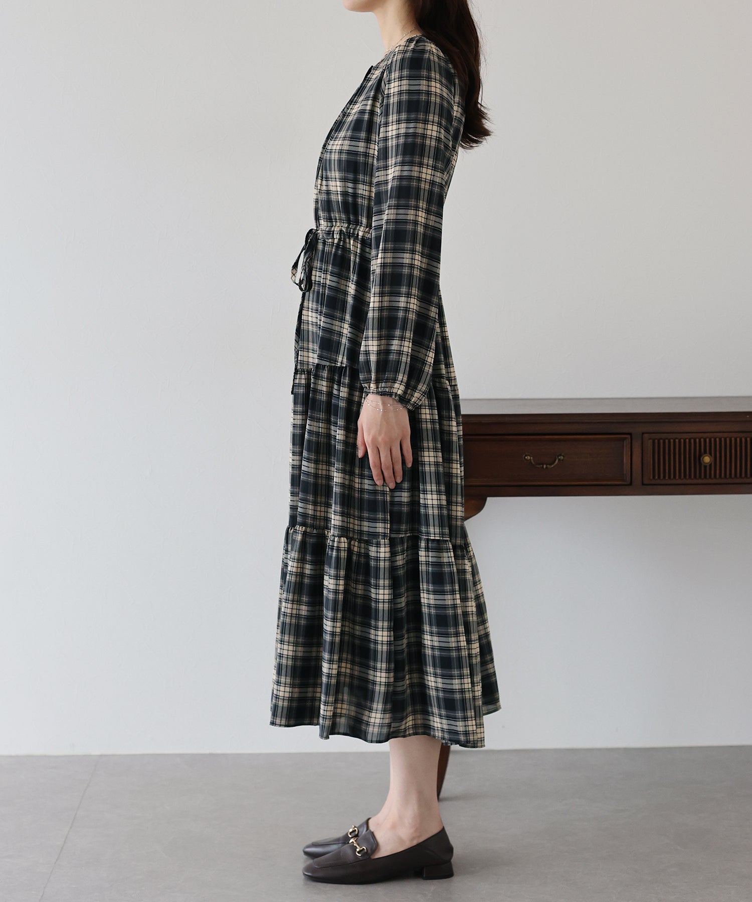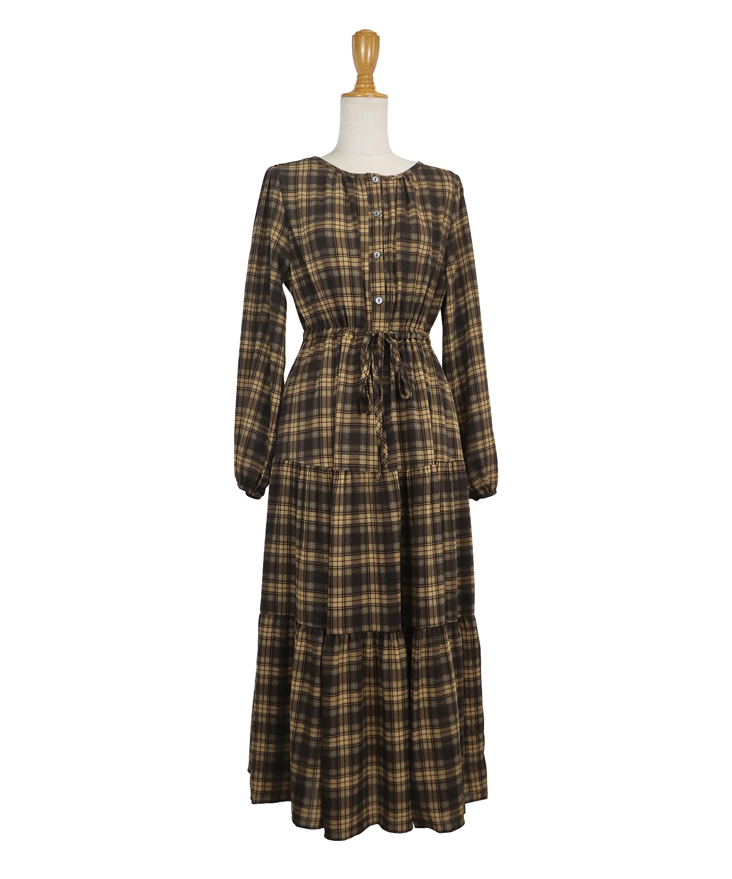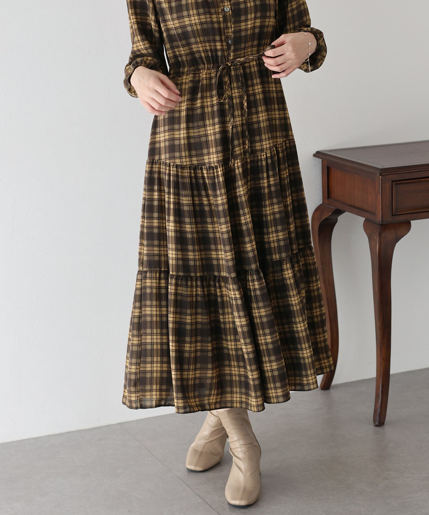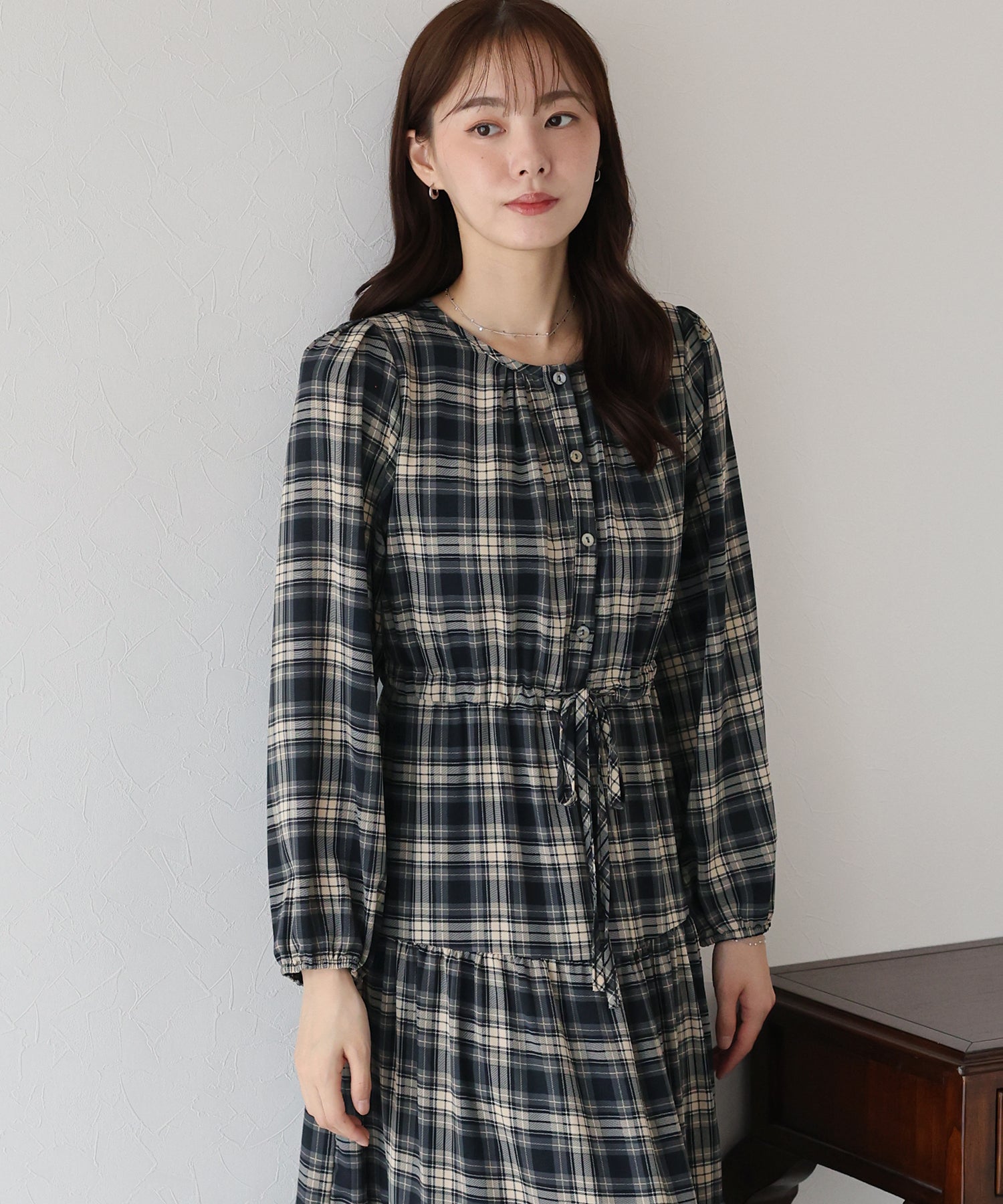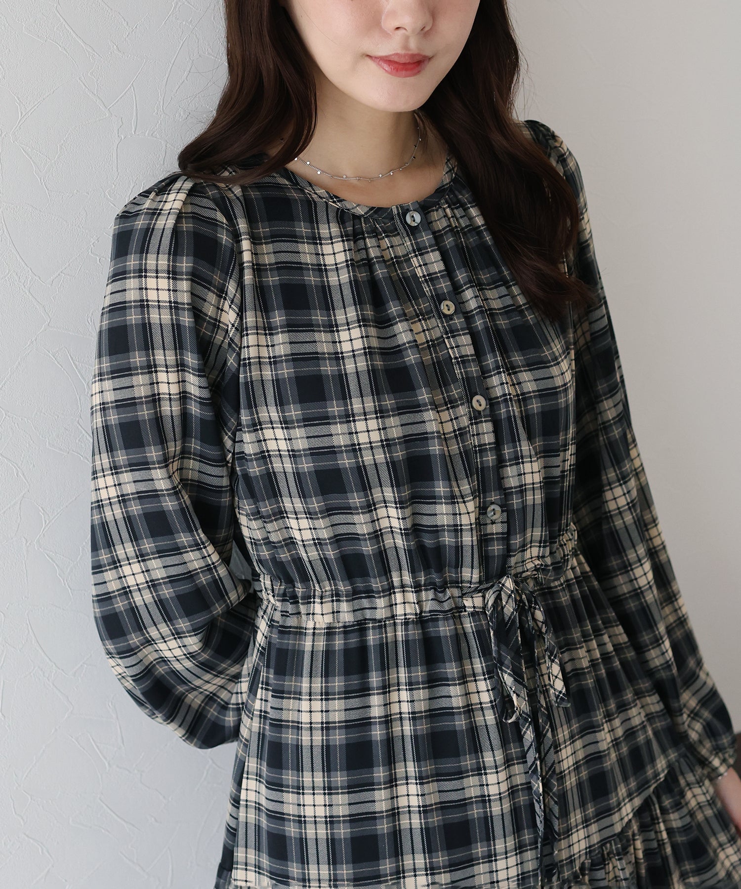 落ち着いた色使いのチェック柄が秋冬らしく大人かわいいワンピース。