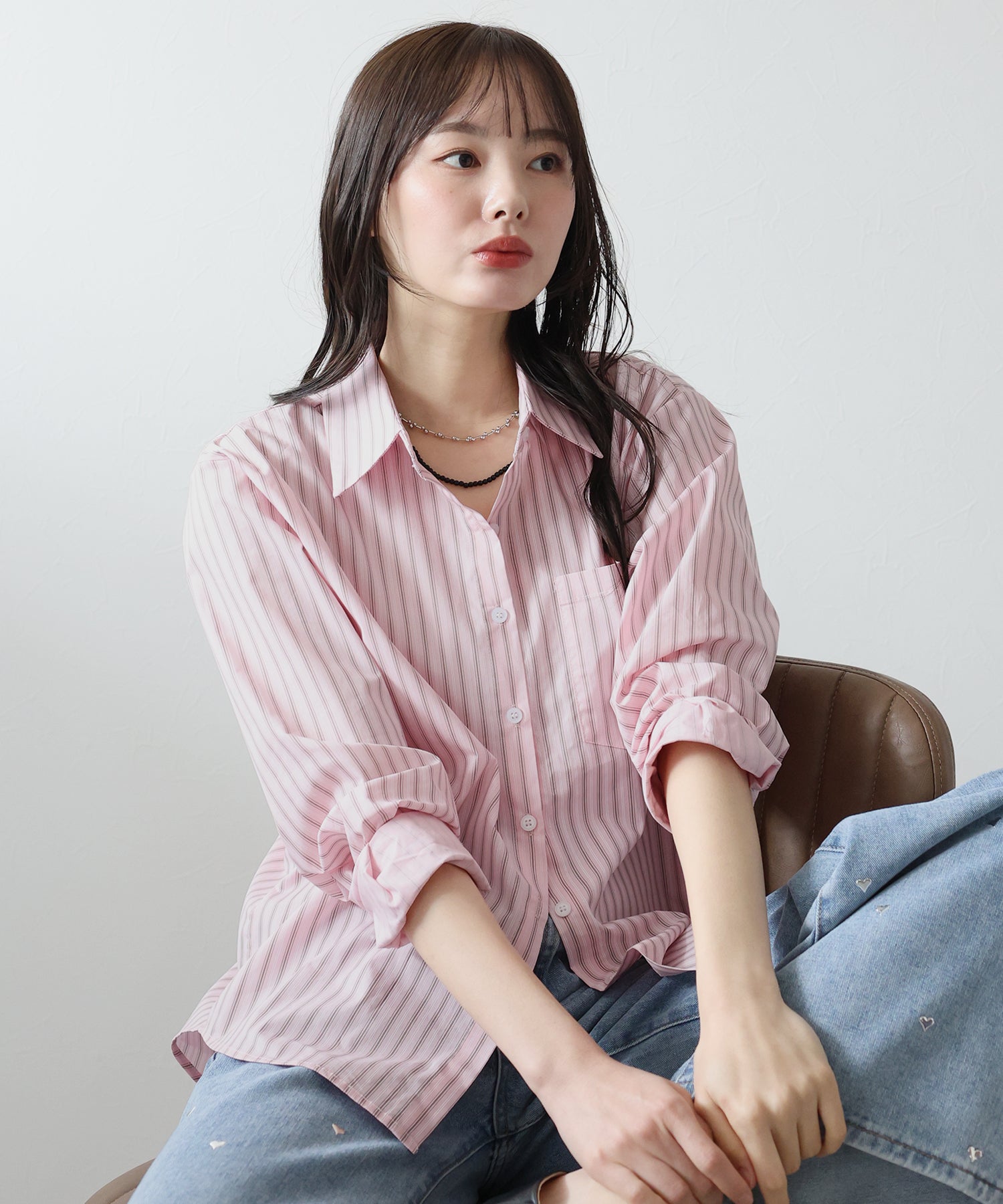 ?POINT 一枚は持っていたいオールシーズン使えるストライプシャツ。 シャツ襟できちんと感を出しながらも、身幅と丈にゆとりを持たせたデザインで、ほどよい抜け感を演出。 縦ラインを強調したストライプデザインで着やせ効果が期待いただけます。 春らしいカラー展開のストライプ柄はポイントになること間違いなし。 一枚でさらりと着るのはもちろん、羽織としても活躍する万能アイテムです。