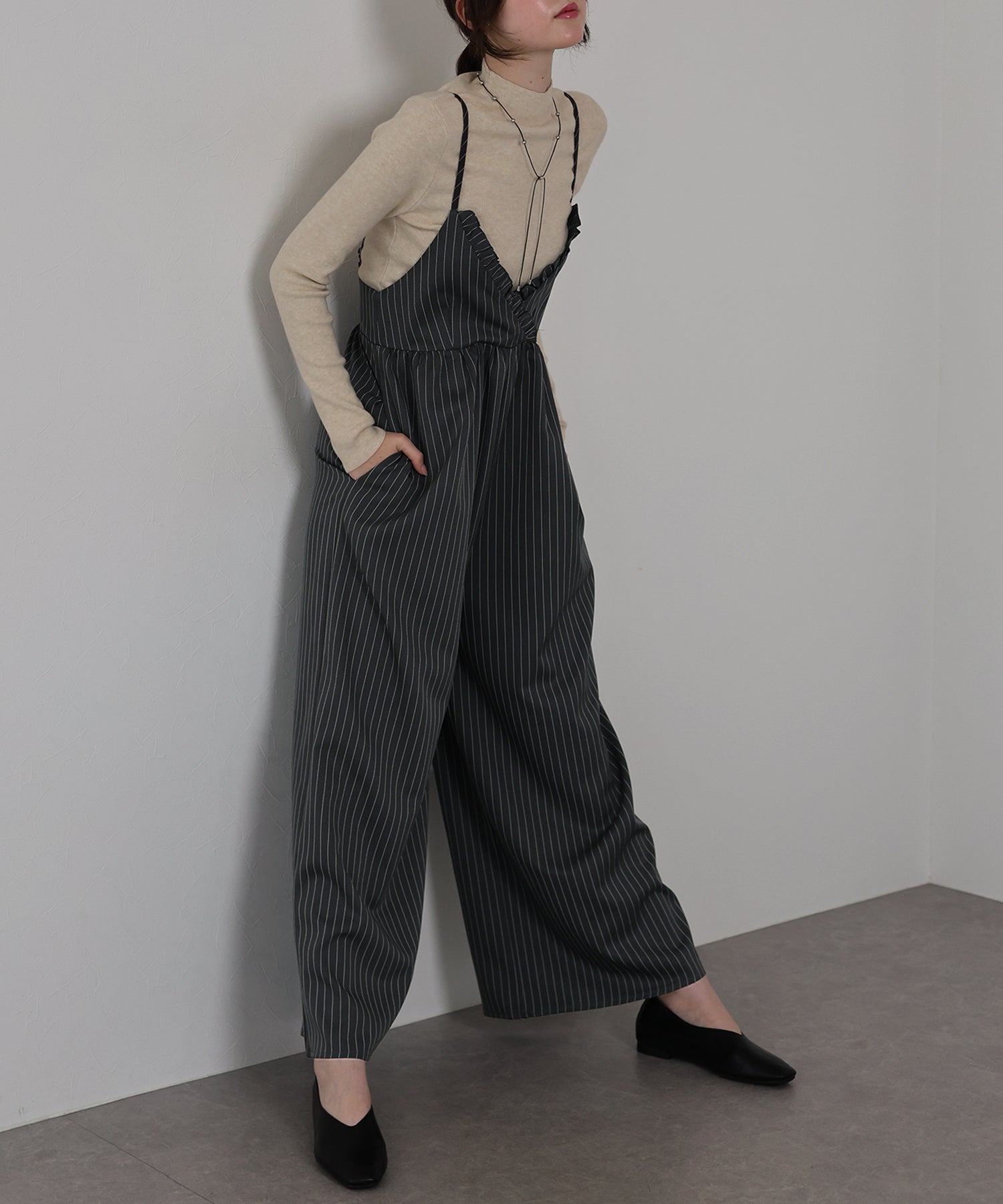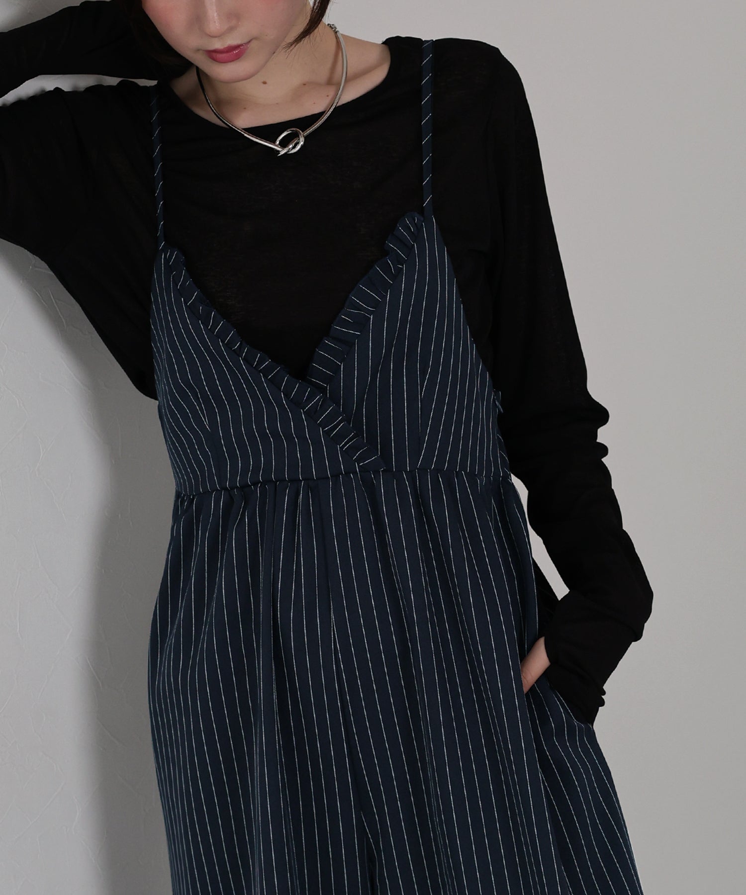 - 【TIME SALE】[ J by blue ]ピンストライプフリルサロペット