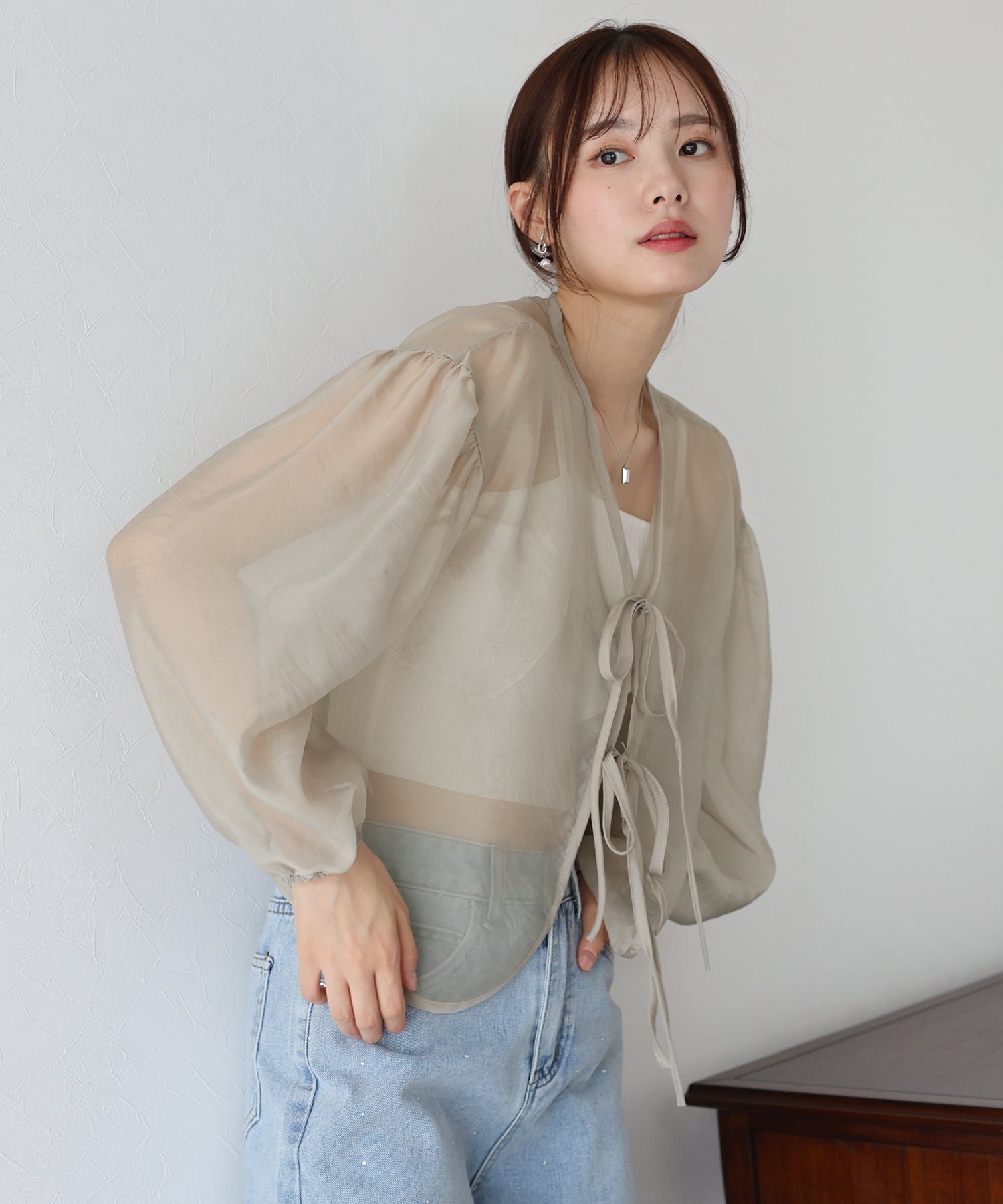 - 【SALE】袖リボンシアーシャツ【ネコポス】