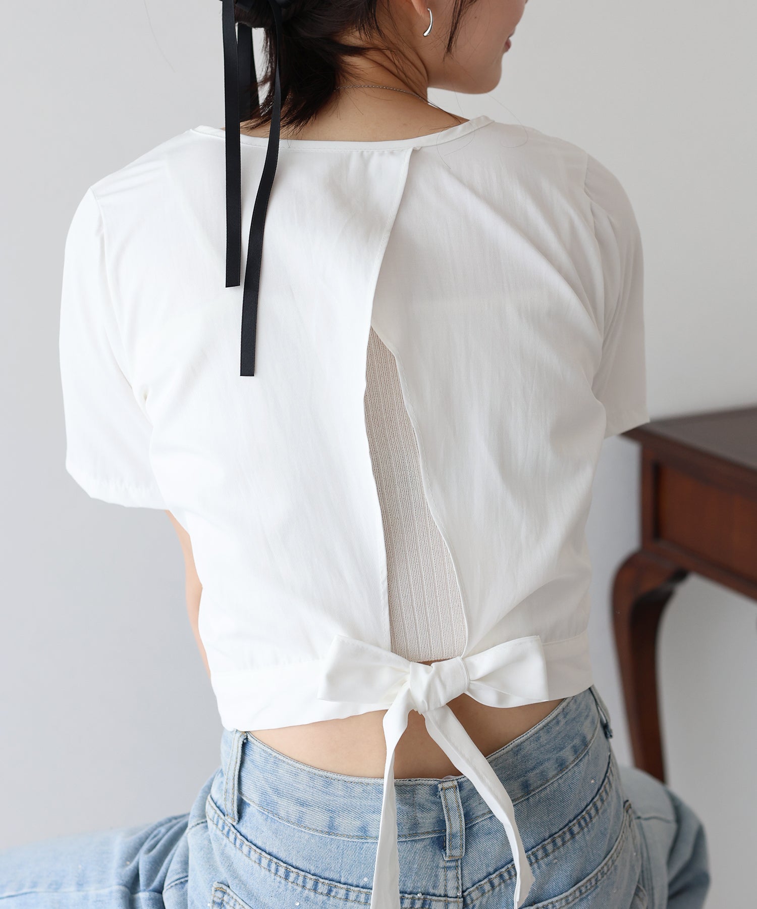 大人可愛いバックリボンブラウス