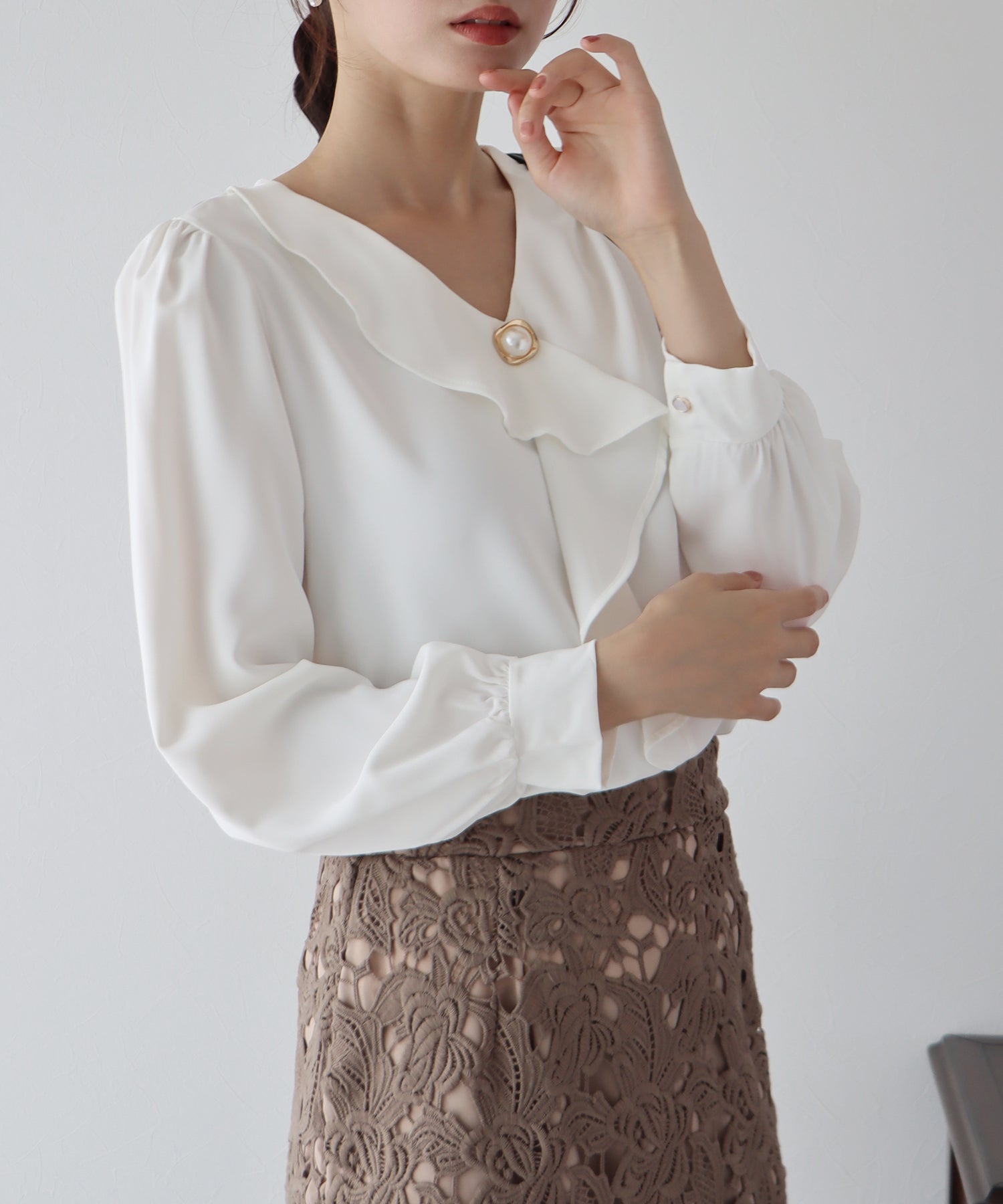 甘すぎないアシメデザインフリルがポイントのブラウス