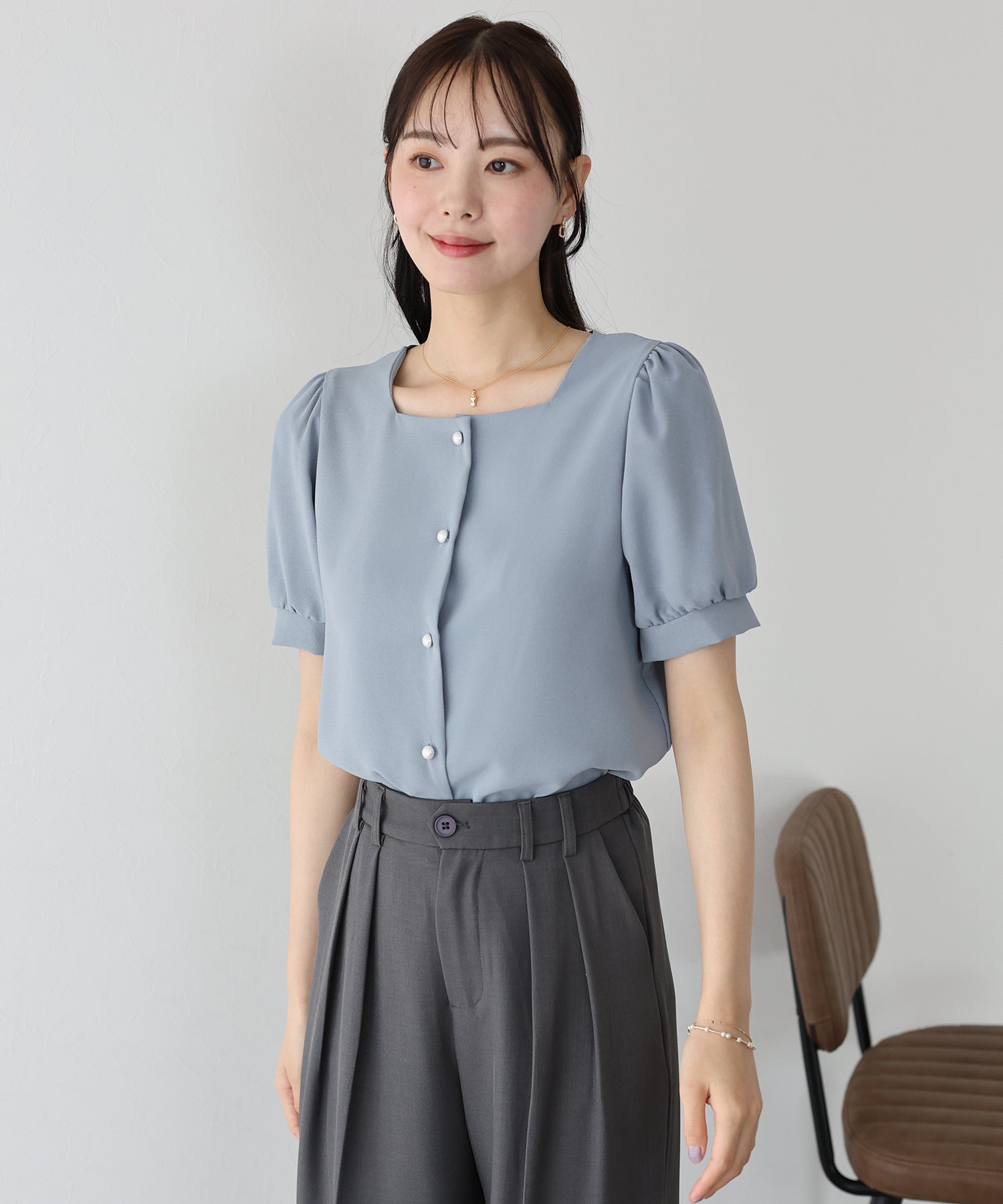 - 【TIME SALE】パールボタンブラウス【ネコポス】
