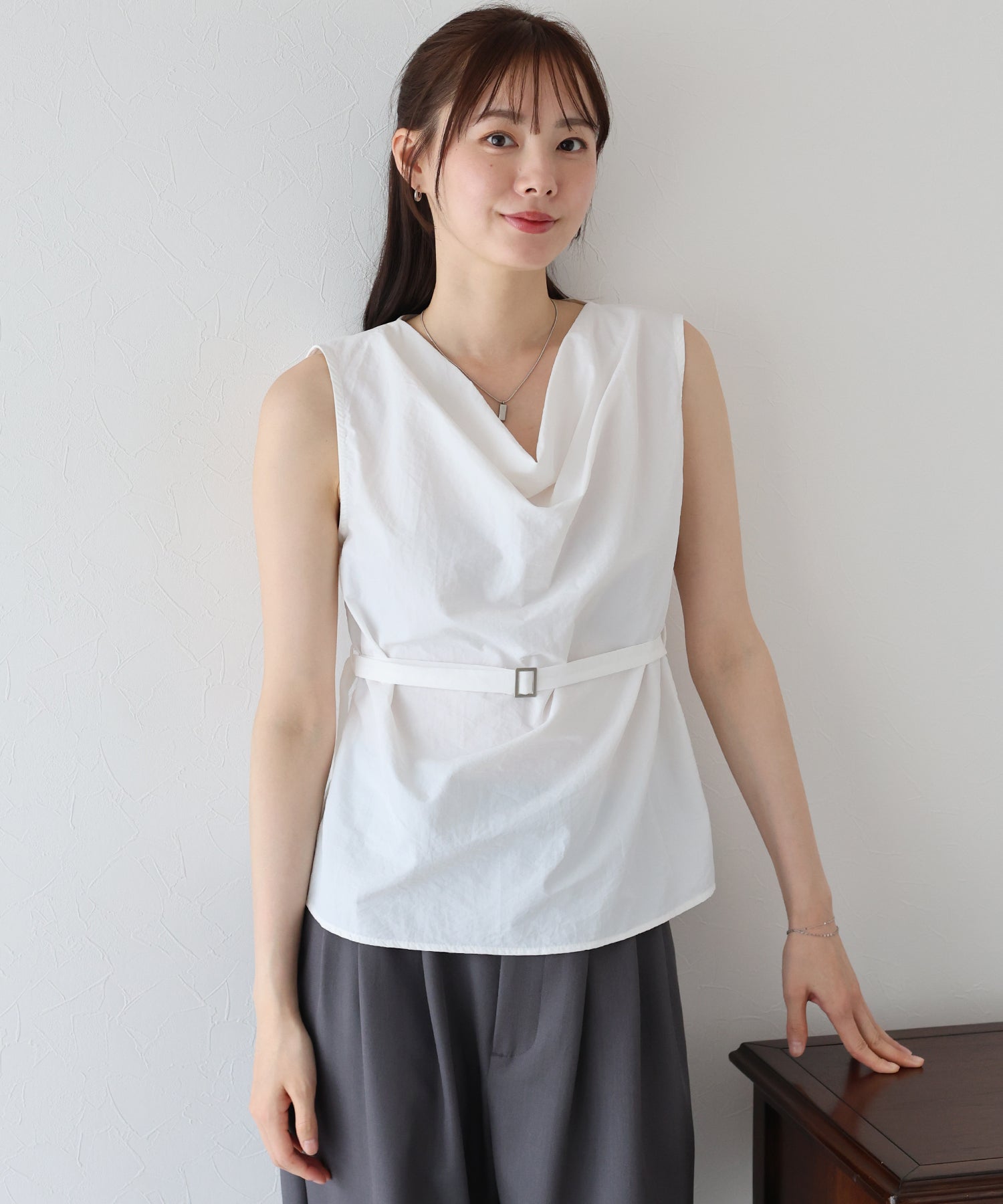 ?DETAIL ドレープデザイン ノースリーブ ベルト付き ベルトホール付き