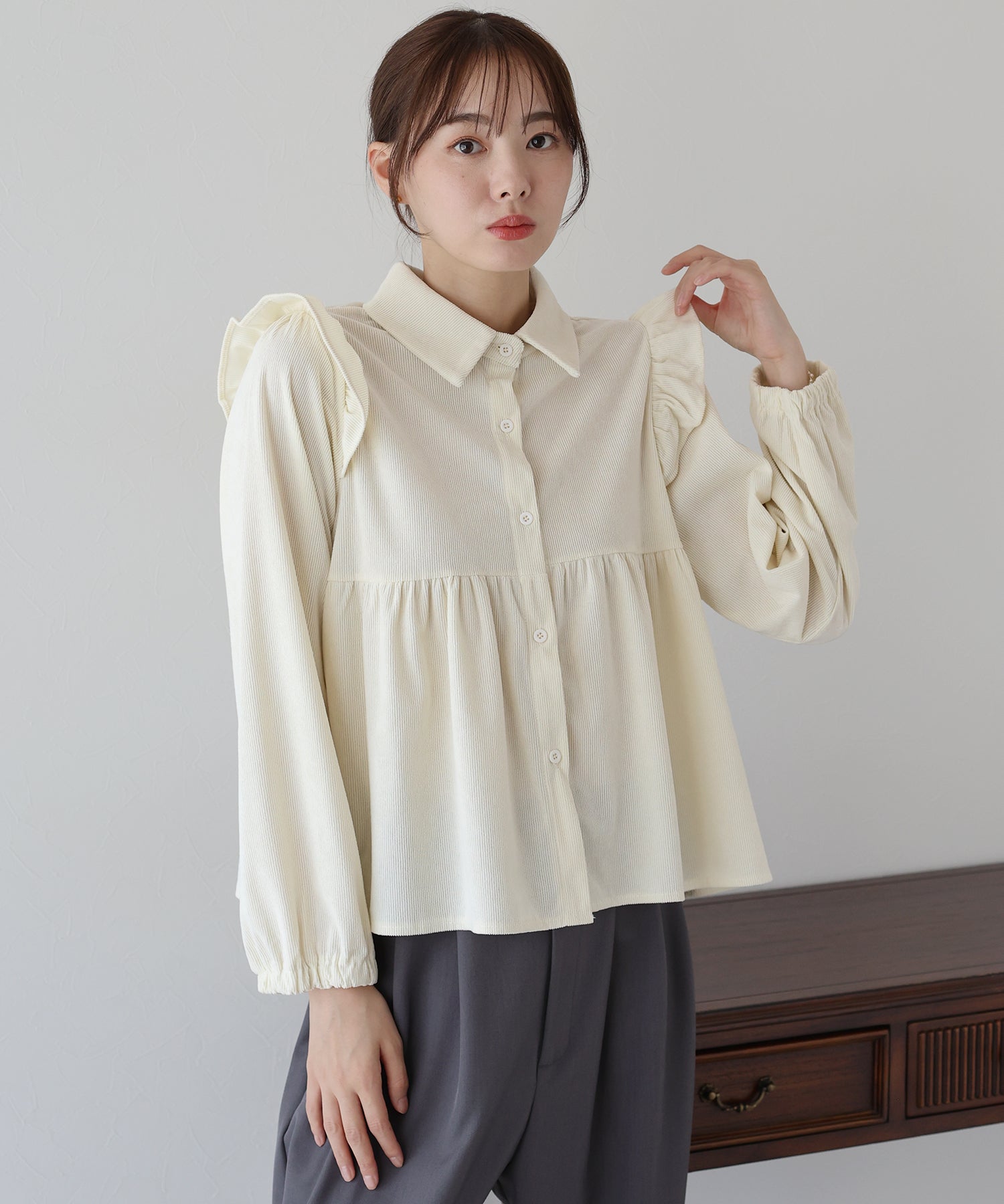 - 【TIME SALE】コーデュロイペプラムブラウス