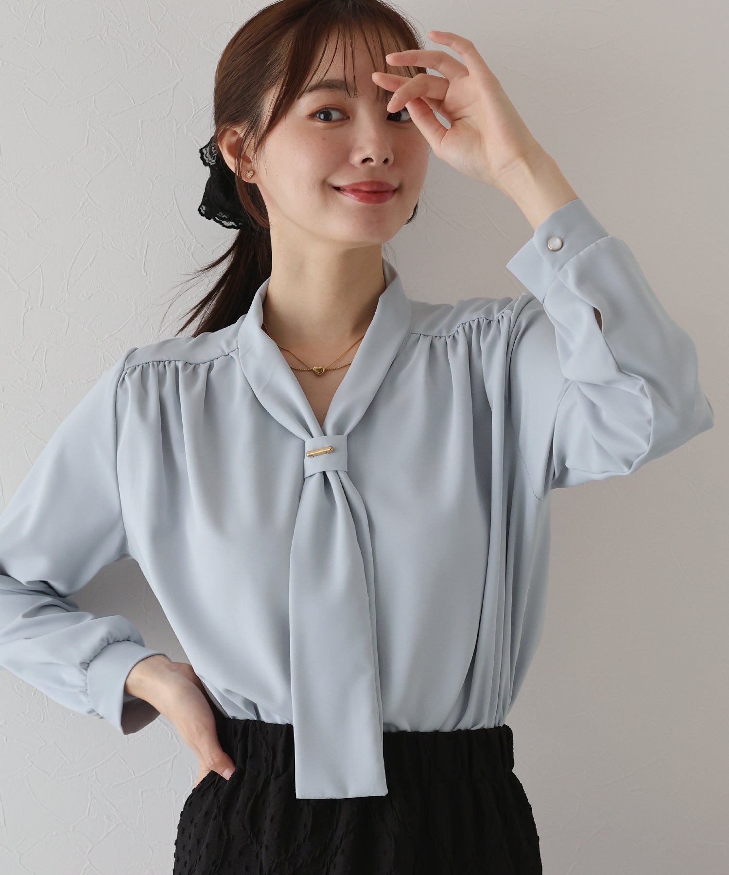 一枚でも、オフィスカジュアルにぴったりのジャケットインでも決まるキレイめブラウス。