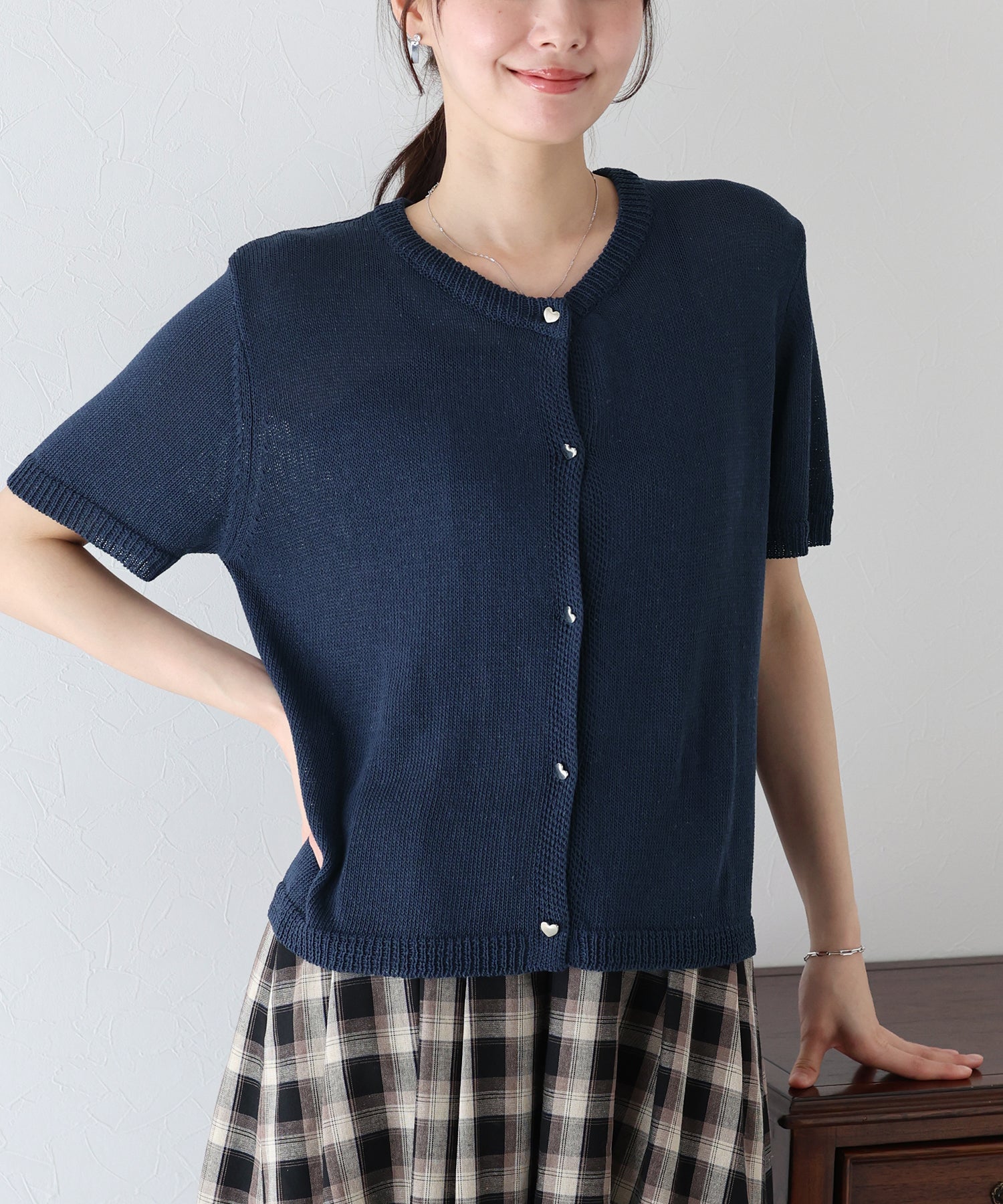 ハートボタン半袖カーディガン