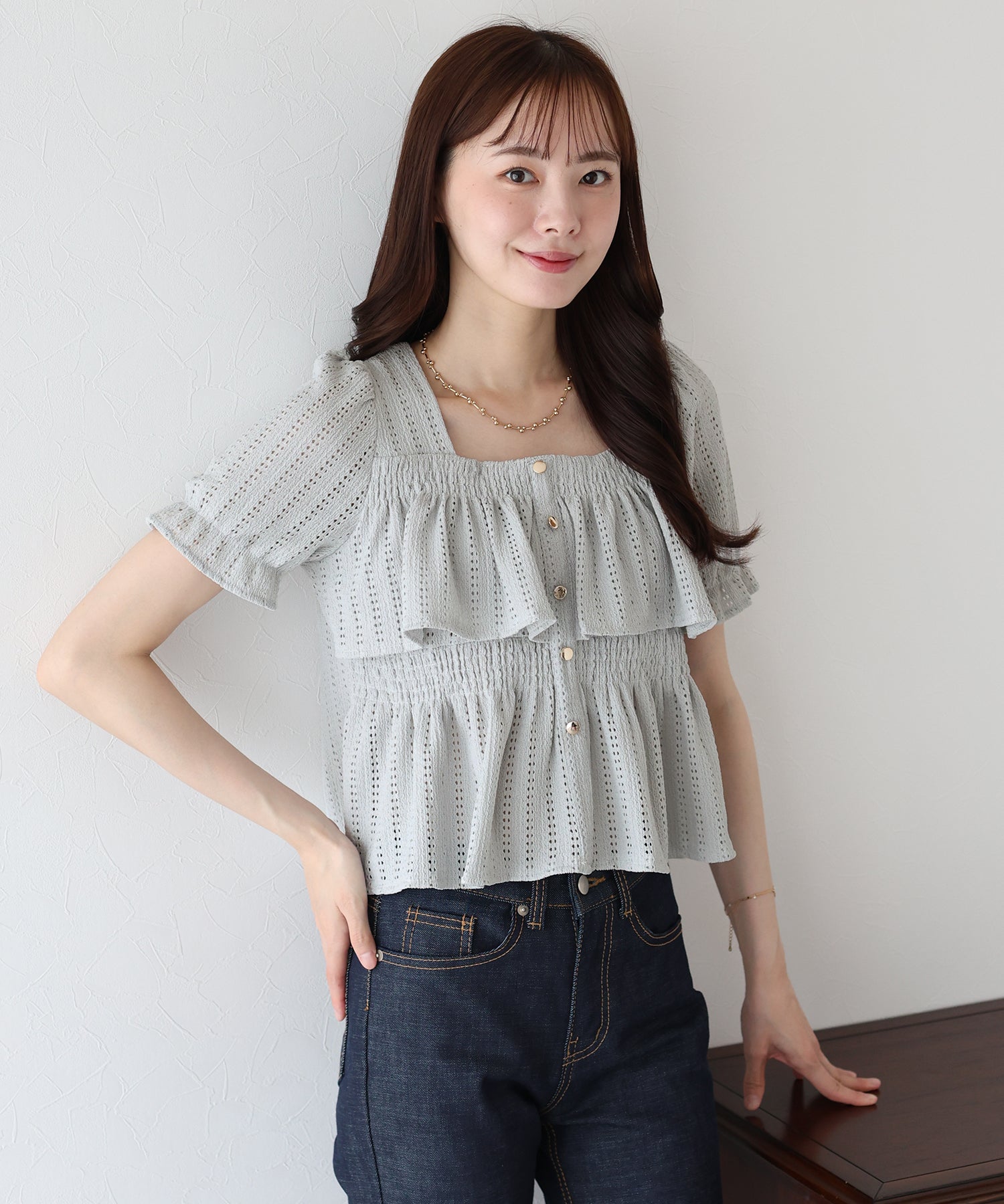 【TIME SALE】スクエアティアードフリルブラウス【ネコポス】