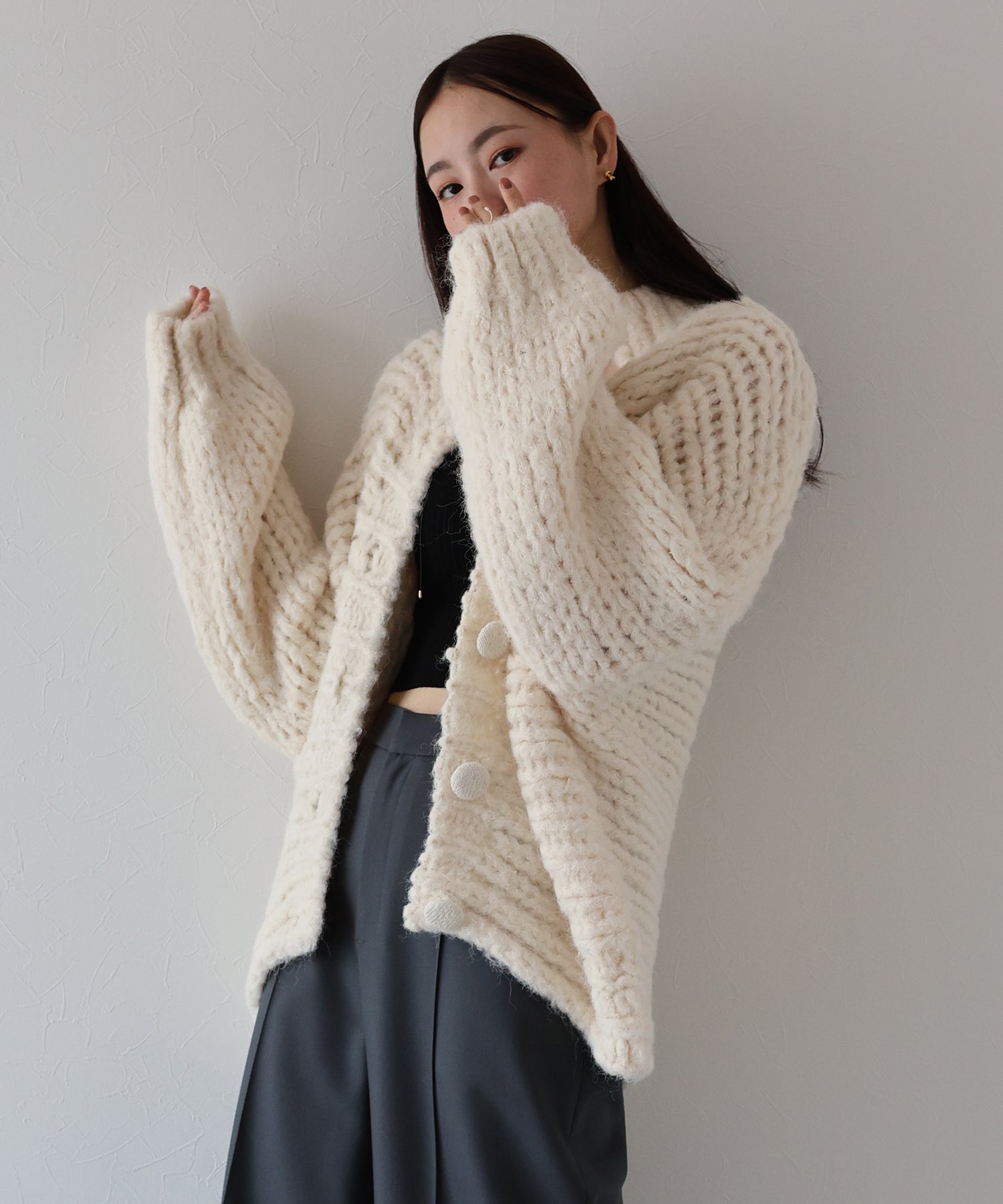 | 生地 | 立体感&厚みのある手編み風ニット素材 あたたかいウール混 |
