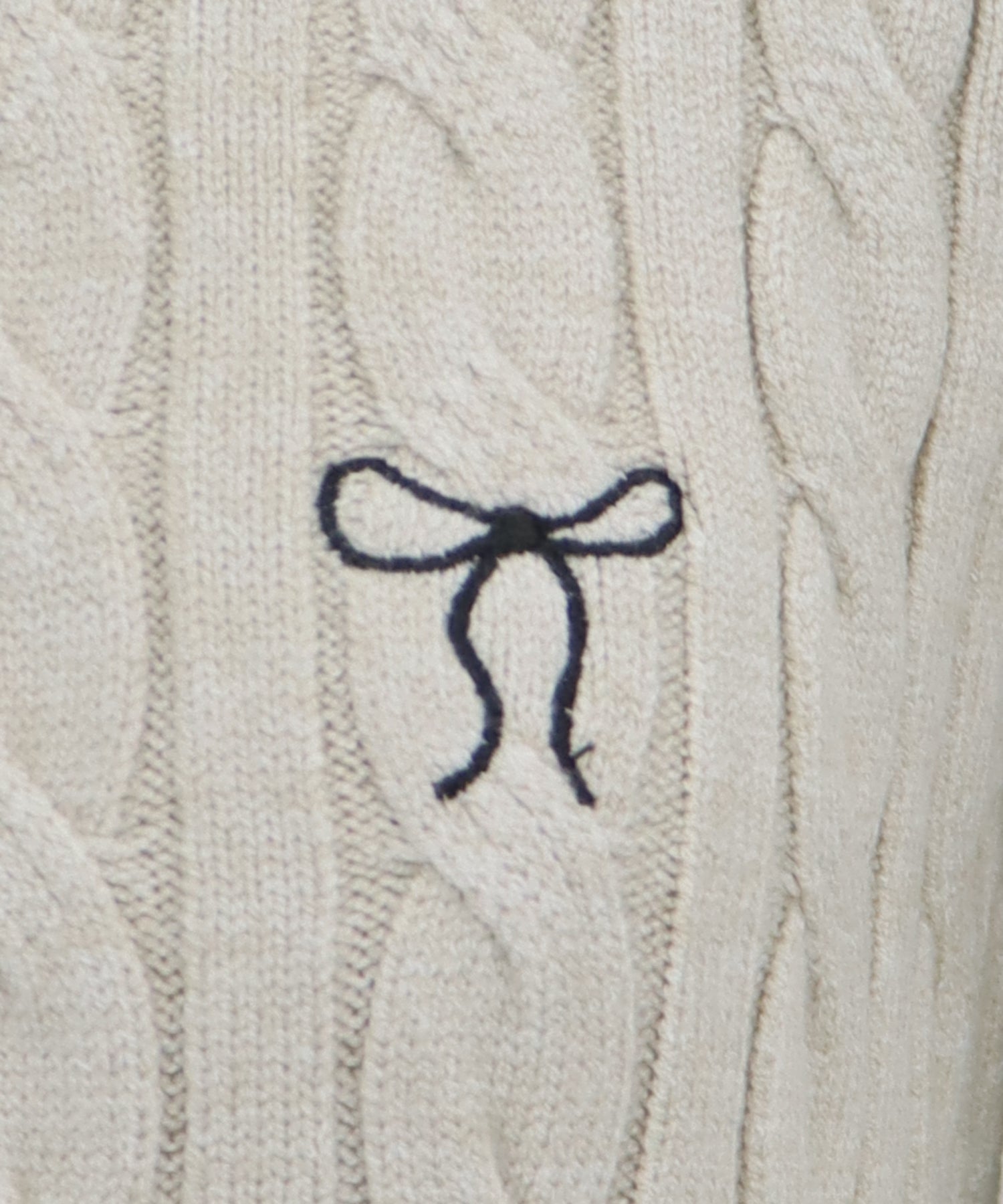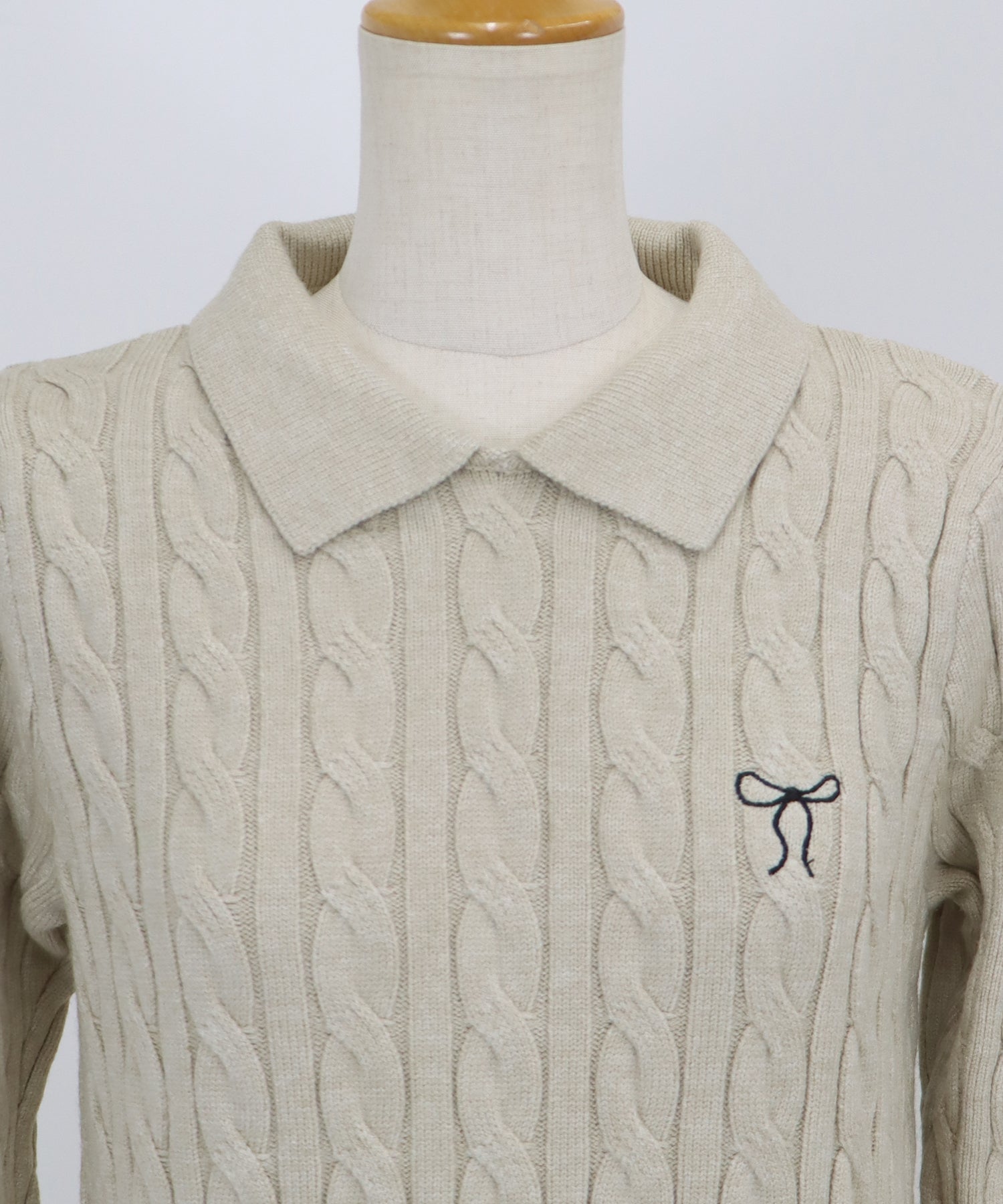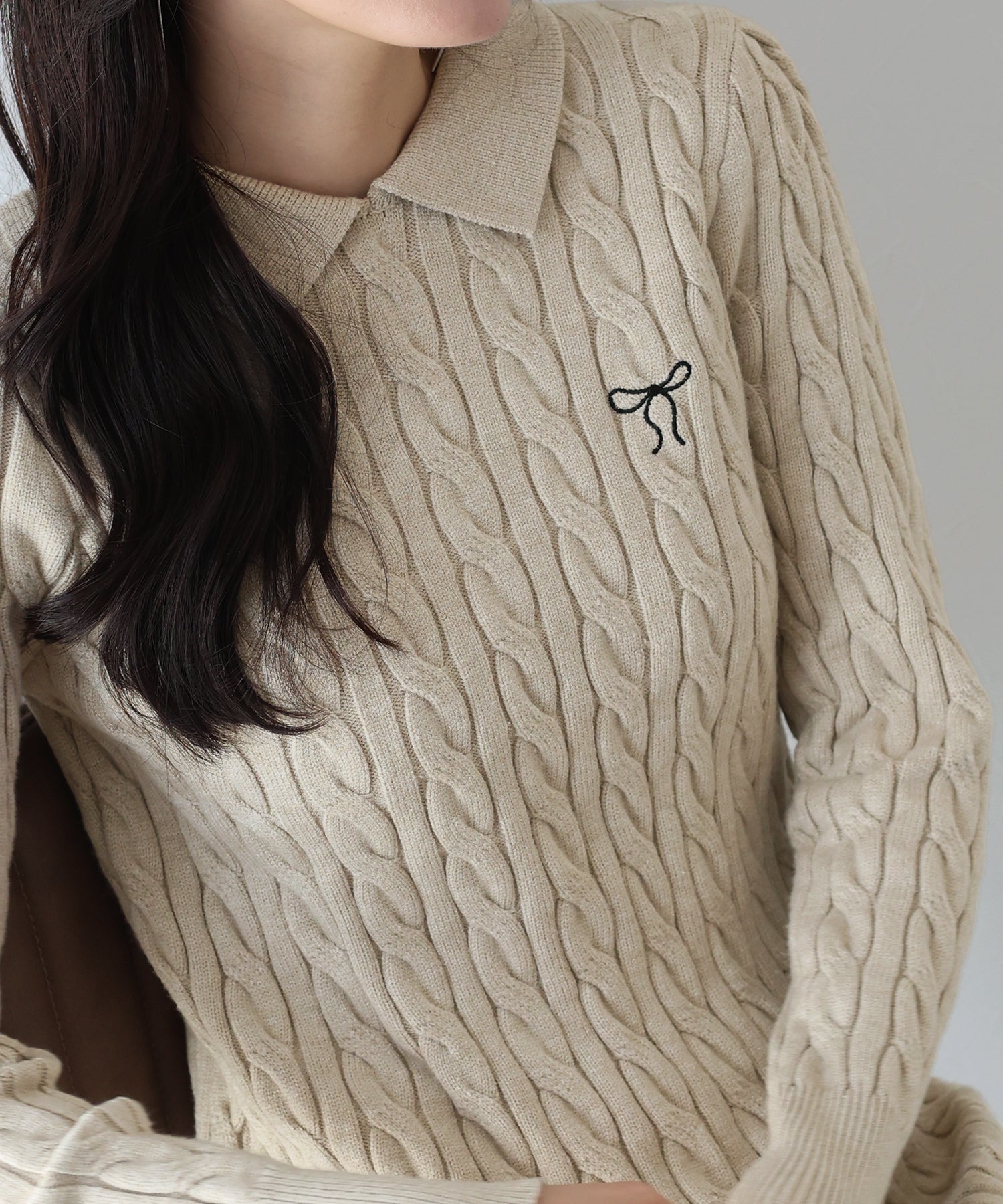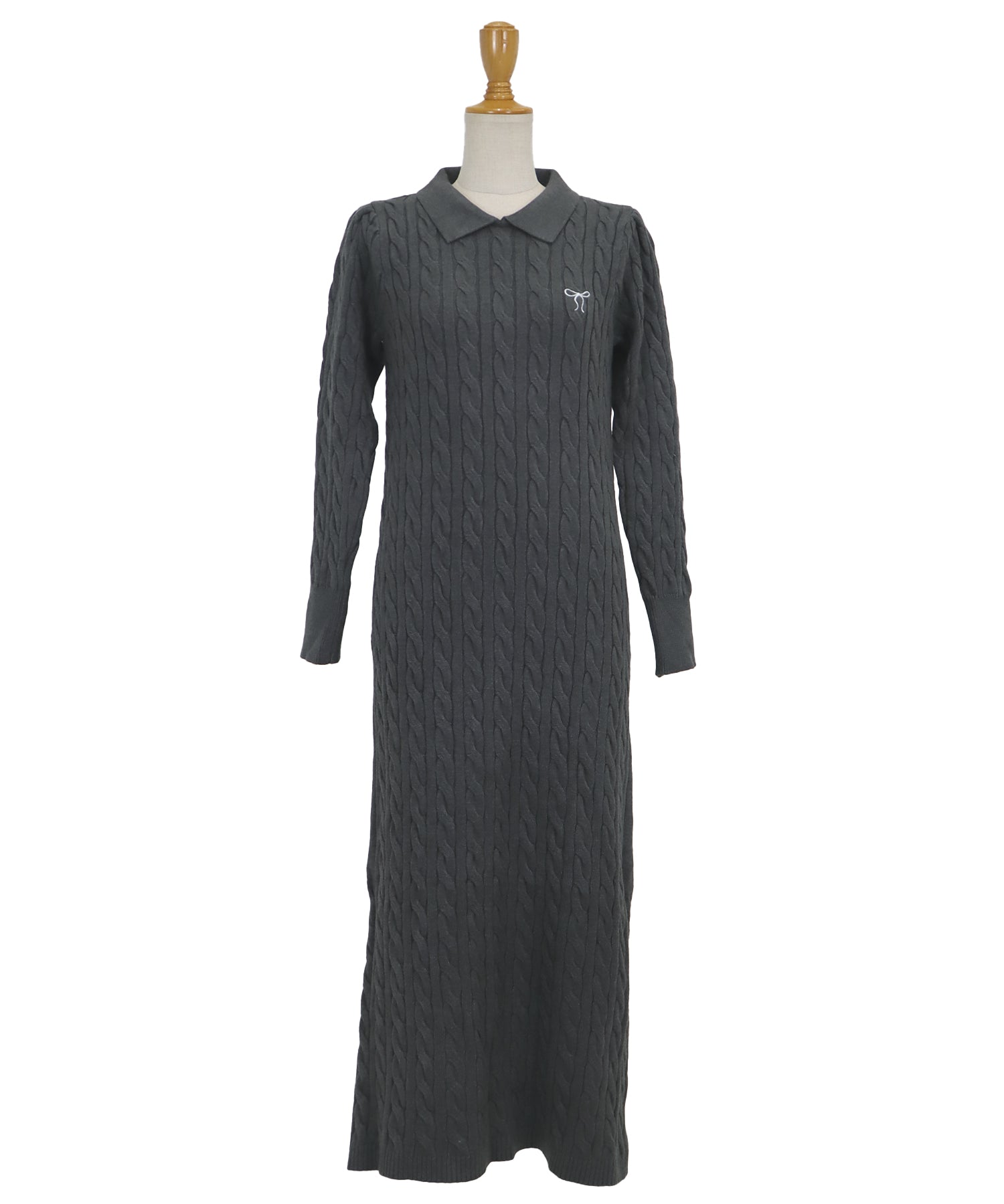 着るだけで簡単に着映えする上品愛されワンピース ?POINT デイリーに着まわしやすいケーブル編みのフェミニンなニットワンピース。 ベーシックなシルエットでありながらも、ケーブル編みとカラーネックデザインできちんと感をプラス。 胸元のリボン刺繍やIラインのシルエットで女性らしさを演出。 長めの着丈なのでキレイめな印象になりすぎず、幅広いシーンで活躍してくれます。