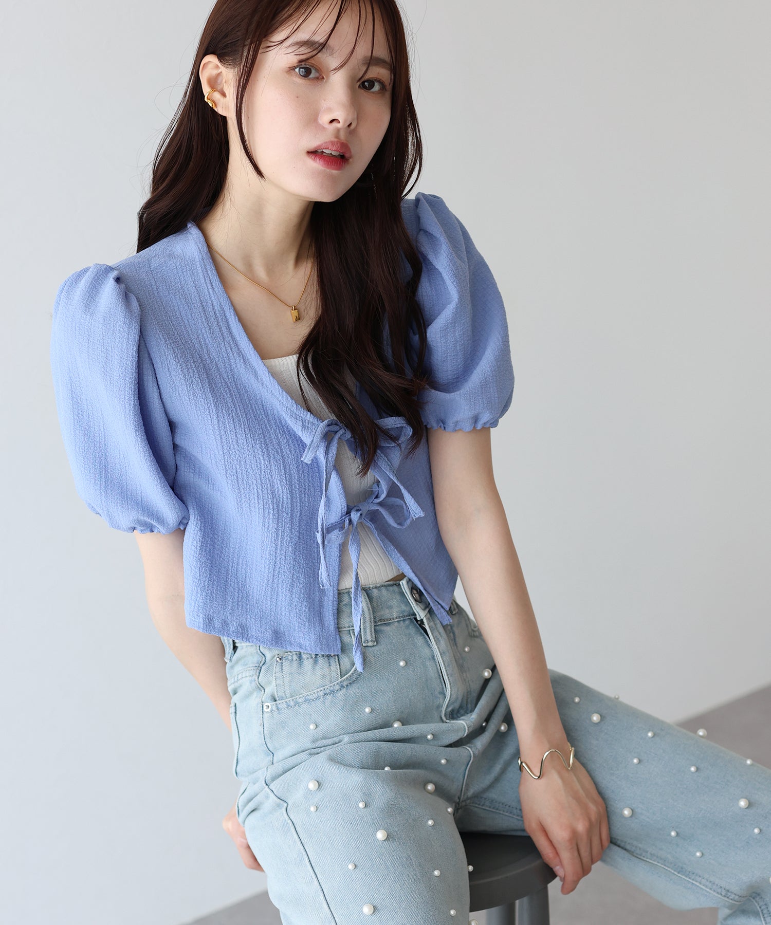 - 【SALE】フロントリボンブラウスカーディガン【ネコポス】