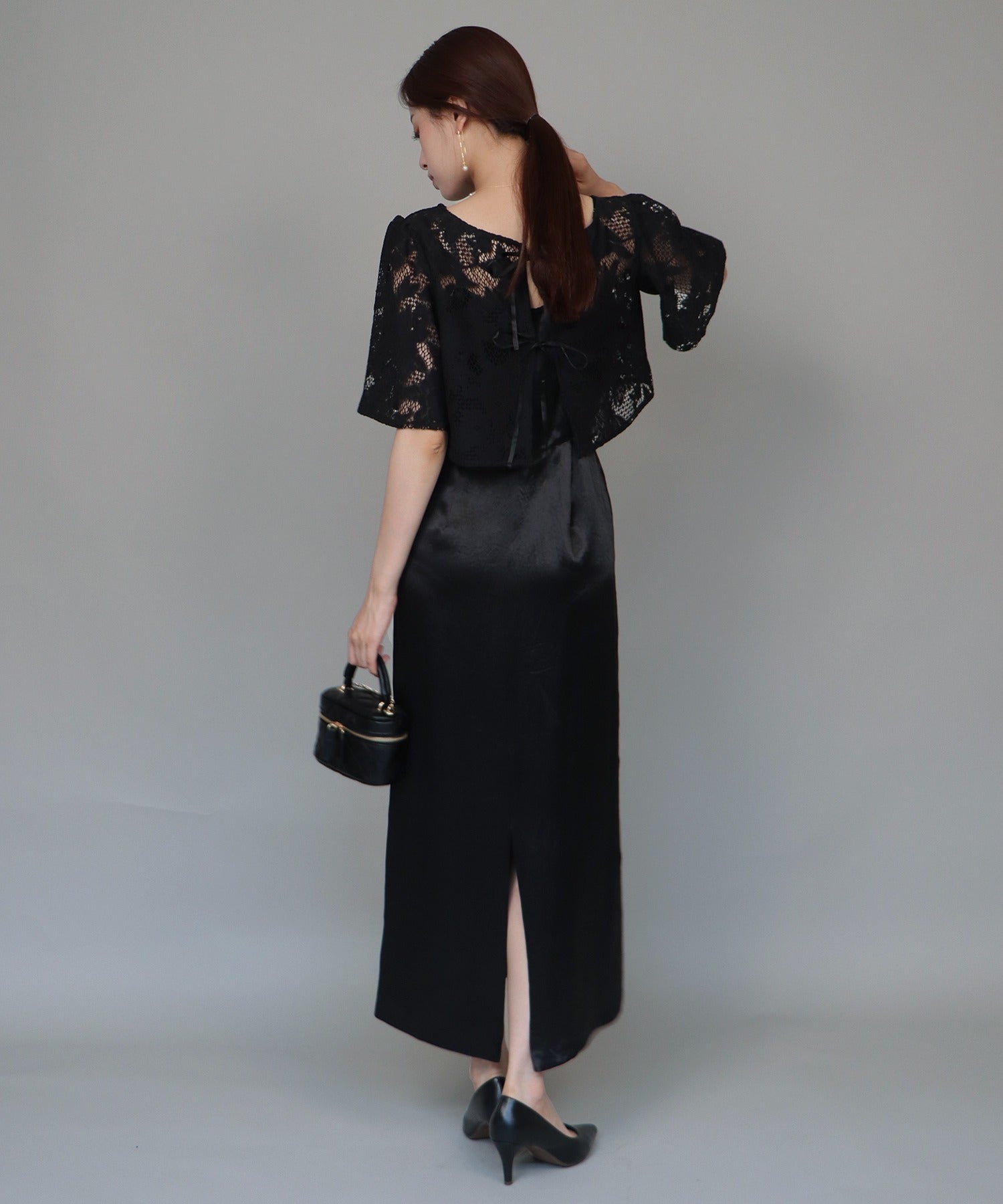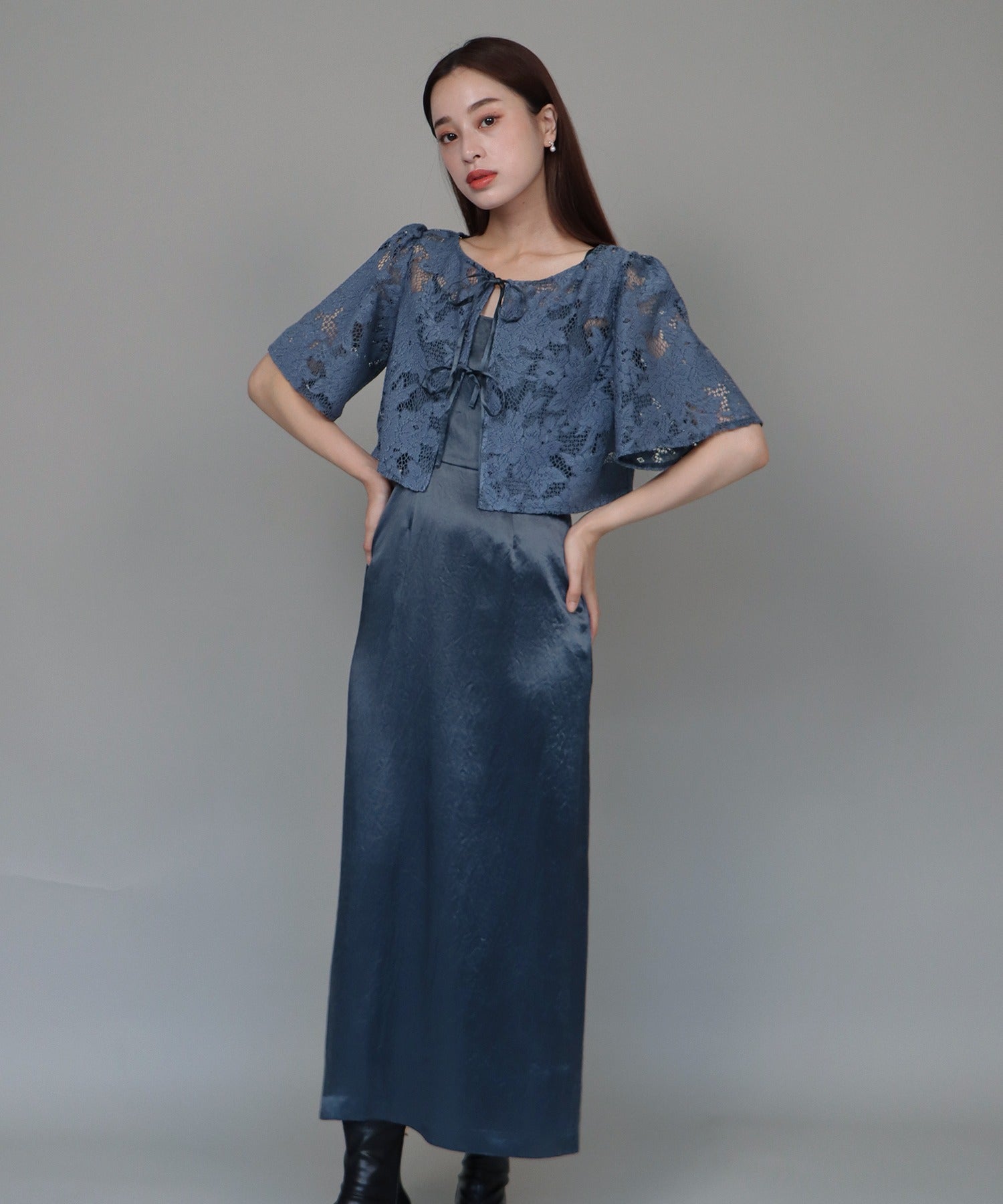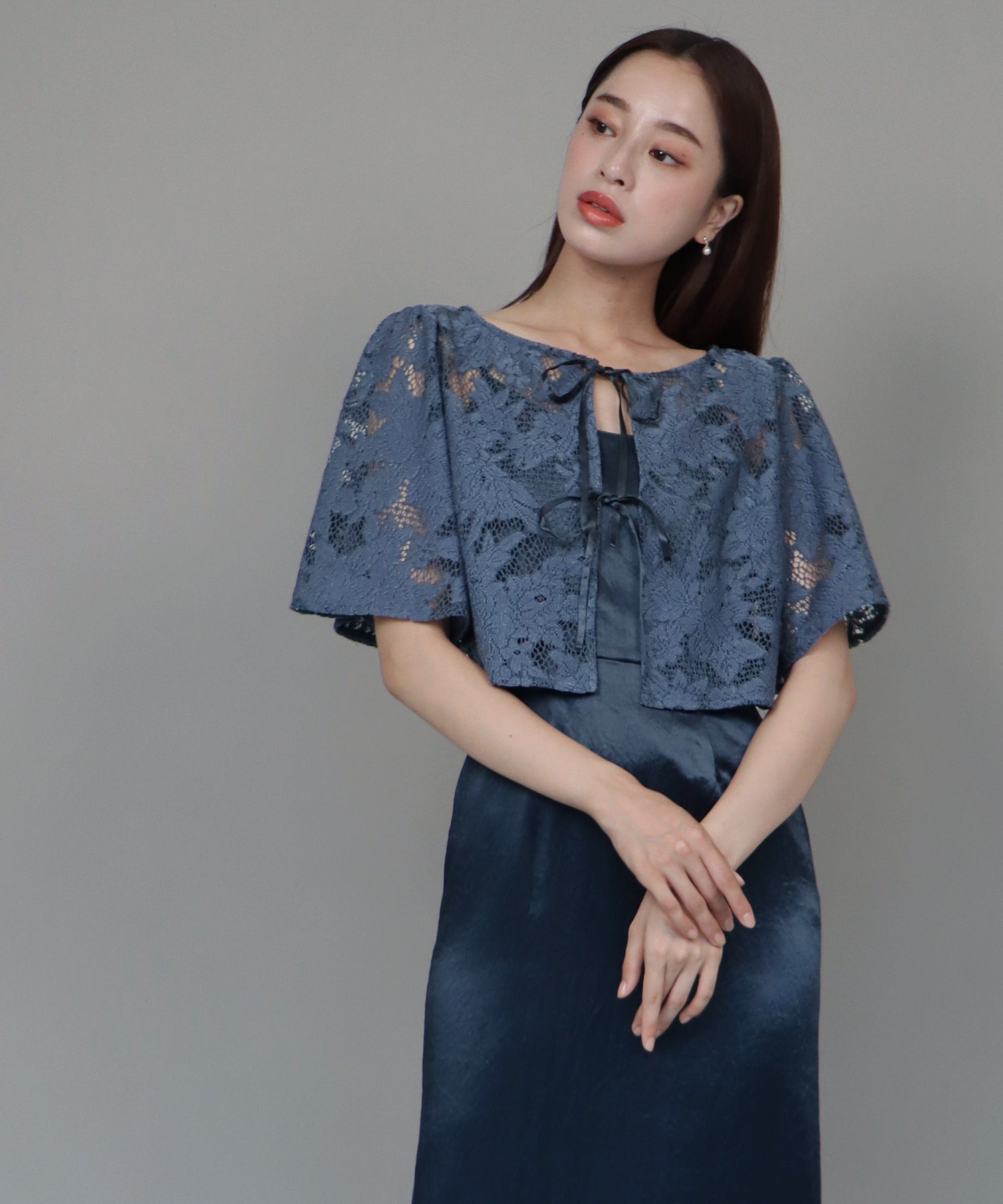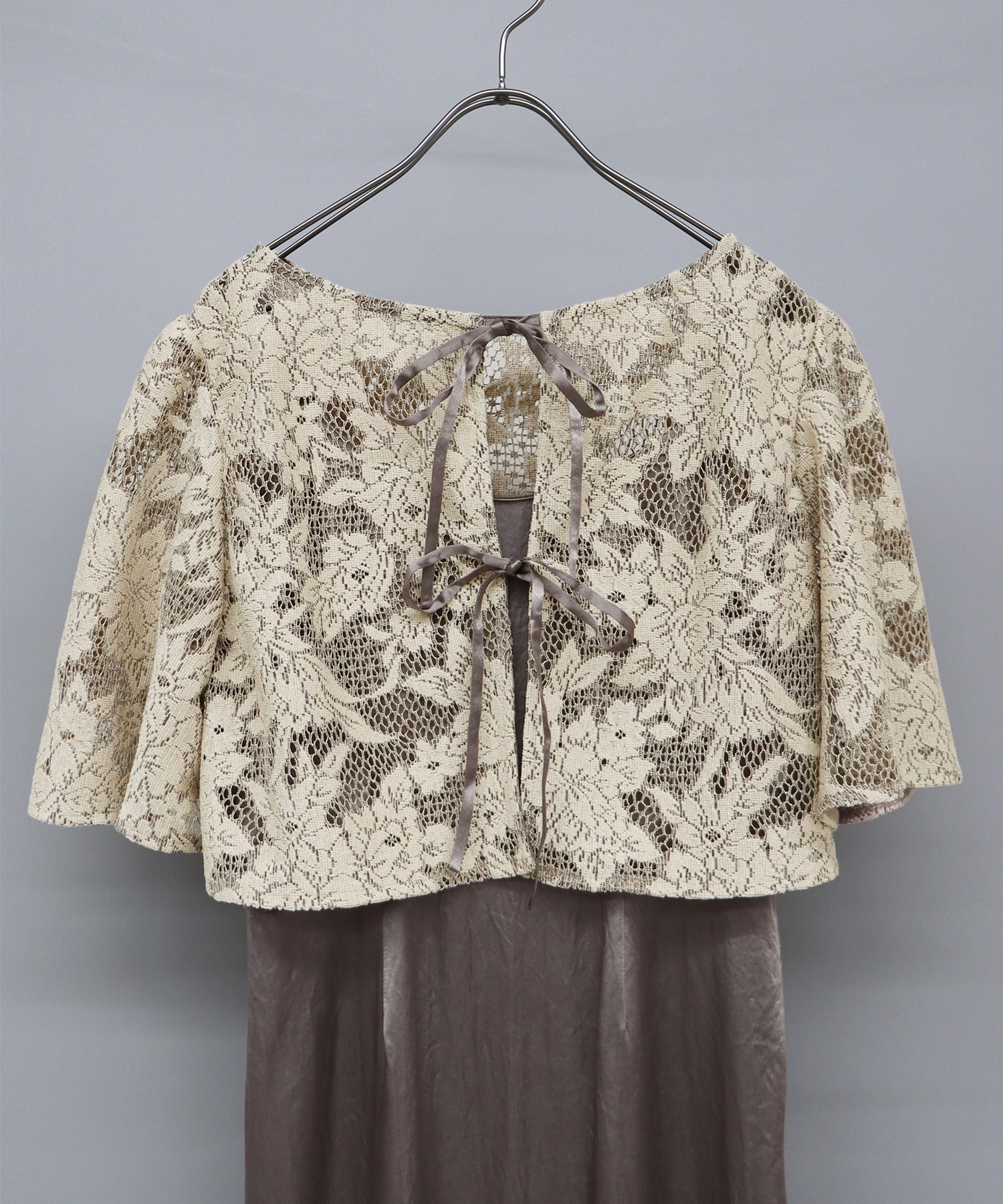 • 【SALE】日本製 レースボレロ+キャミソールワンピースドレス