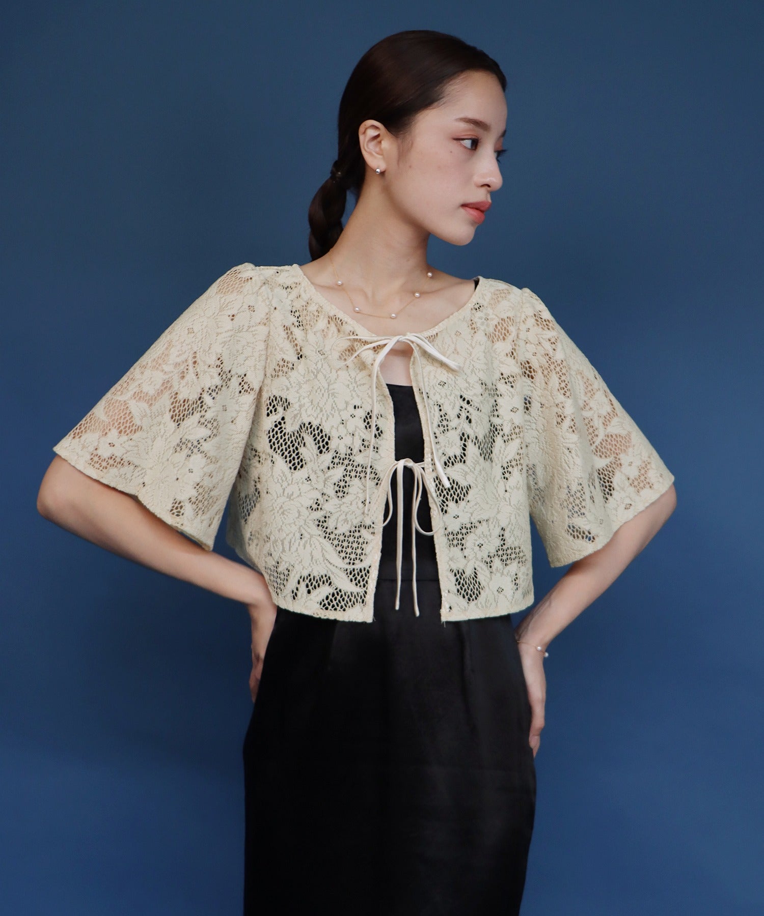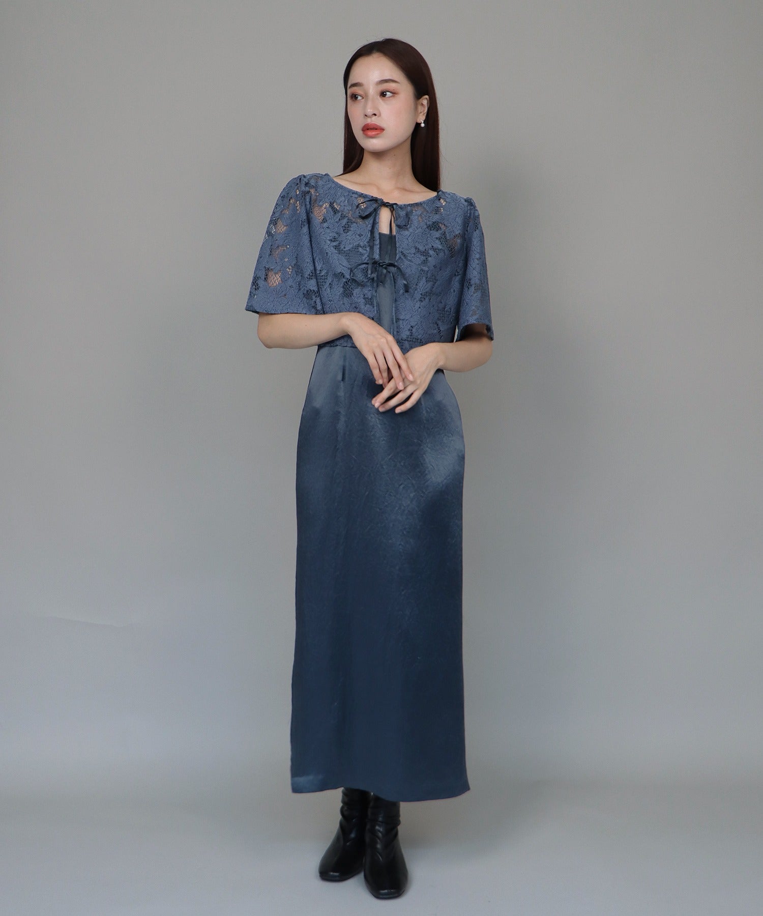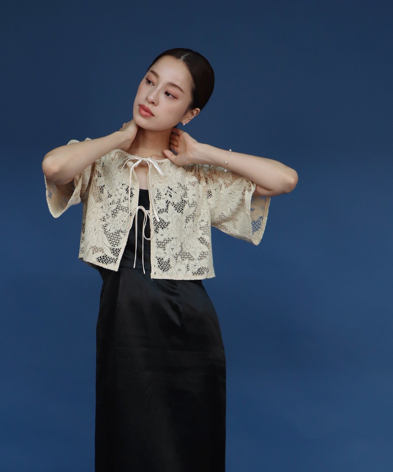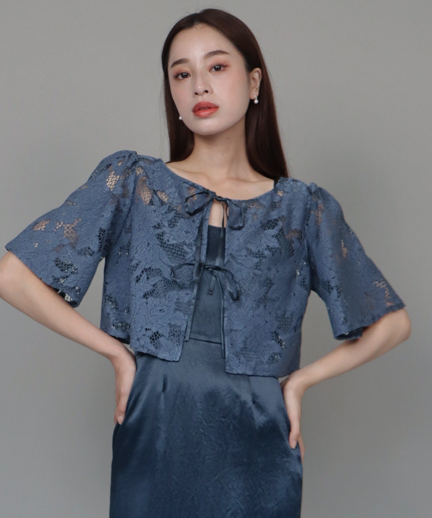 • 【SALE】日本製 レースボレロ+キャミソールワンピースドレス