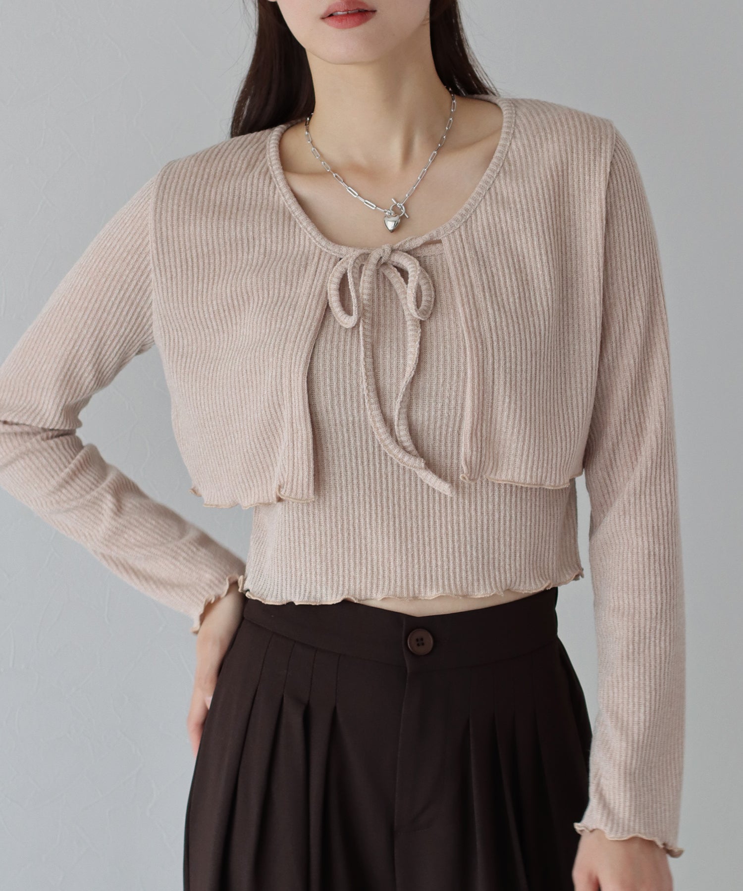 - 【SALE】リボンカーディガン&キャミSET