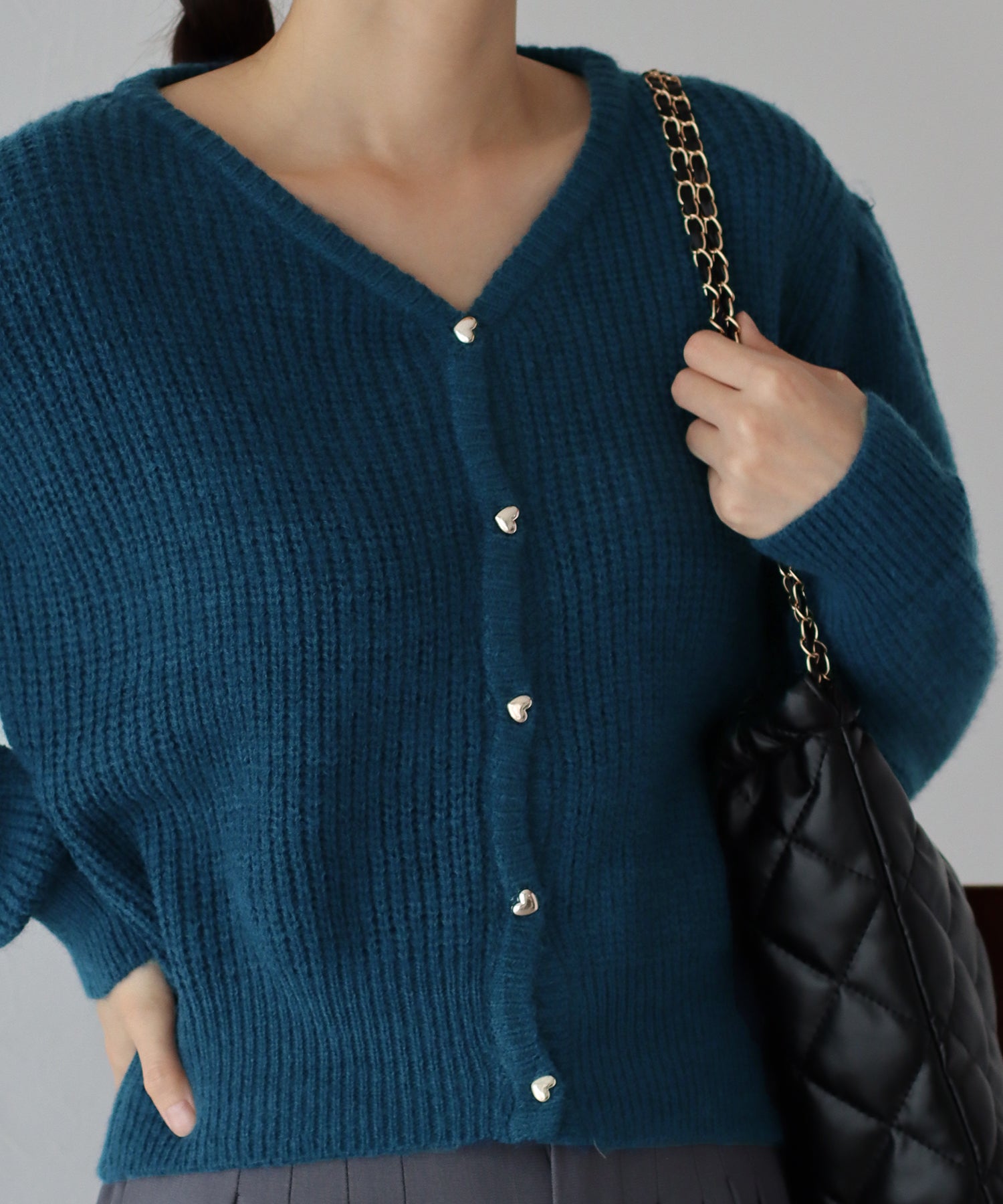- 【SALE】ハートボタンカーディガン