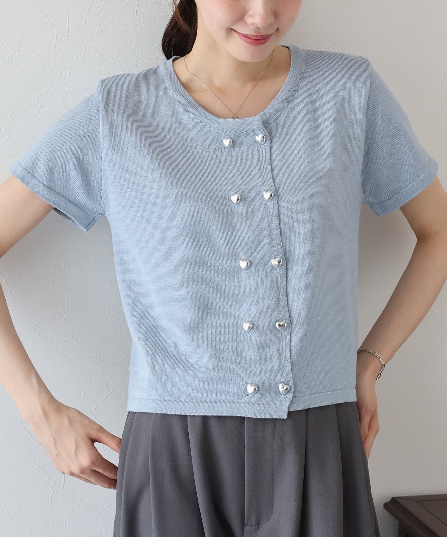 【TIME SALE】ハートボタン半袖カーディガン