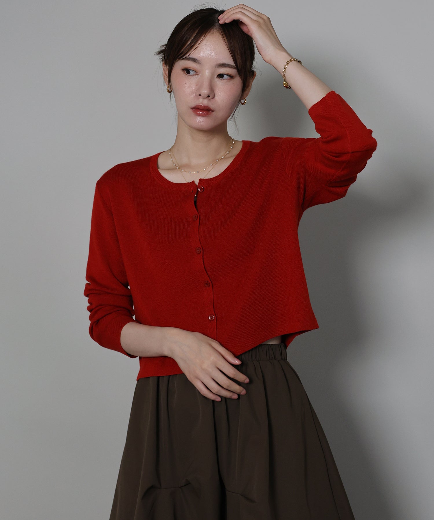 デイリーに活躍するウール混素材のカーディガン ?POINT シンプルながらも、ウール混の柔らかいニット素材で滑らかさと暖かさを兼ね揃えた一枚。 ベーシックなシルエットでどんなスタイルにも合わせやすく、1枚持っていると大活躍するアイテムです◎ 同色ボタンがさりげないアクセントとなり、開けても閉めても魅力的な仕上がりに。 どんな着こなしでもバランスよく決まり、幅広いスタイリングが楽しめます。
