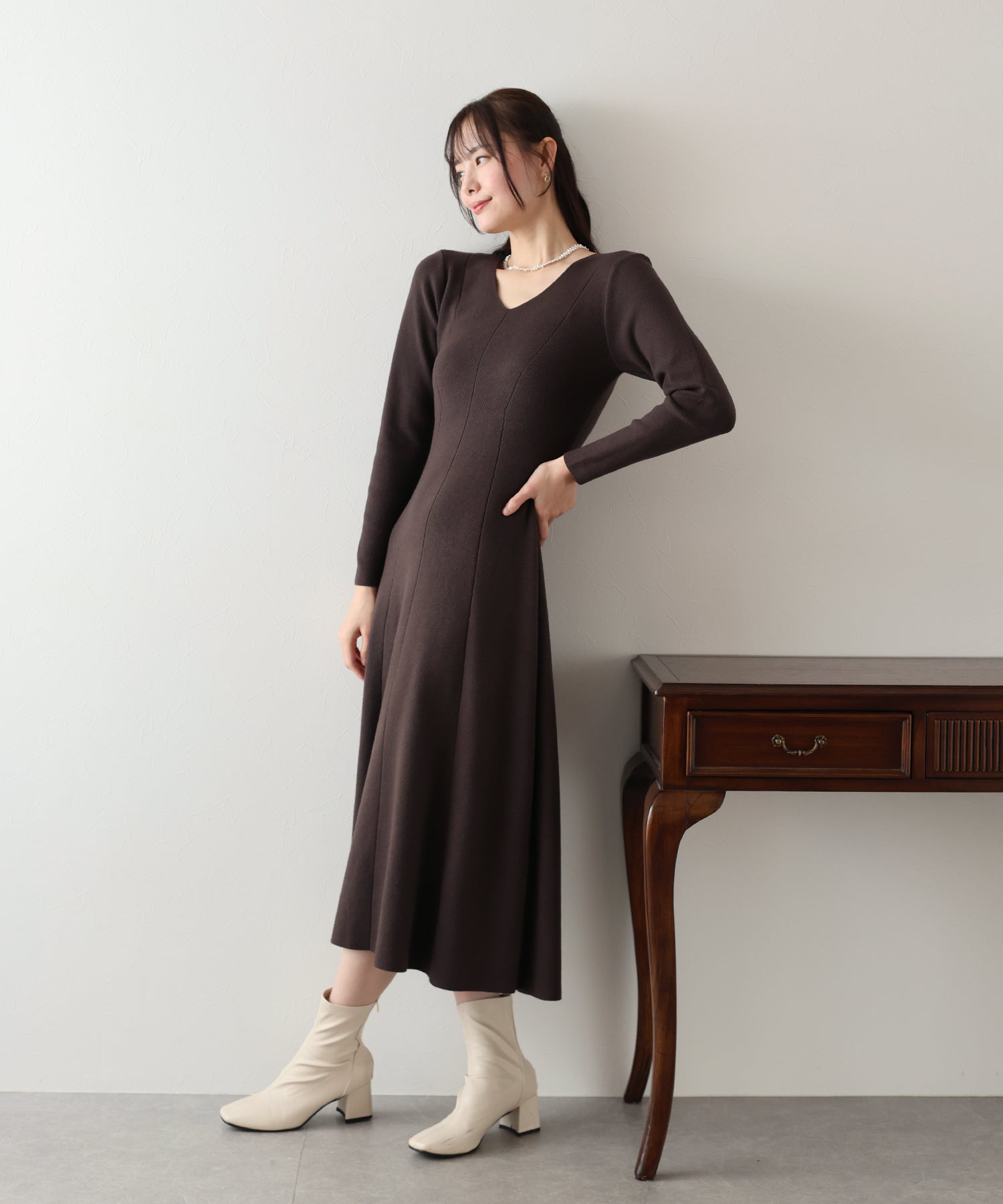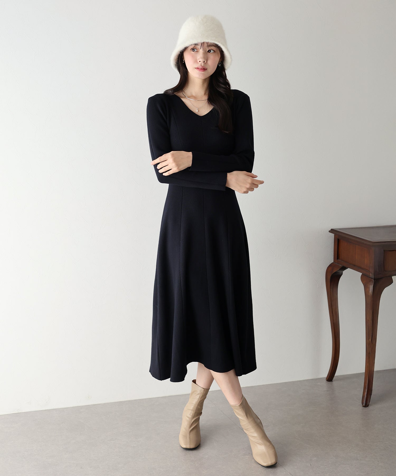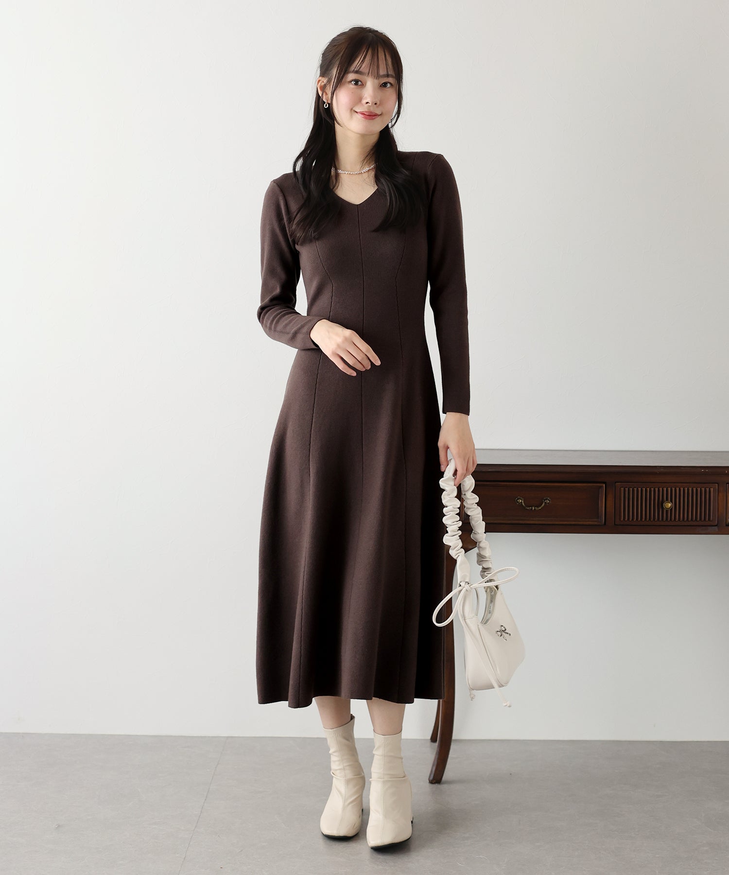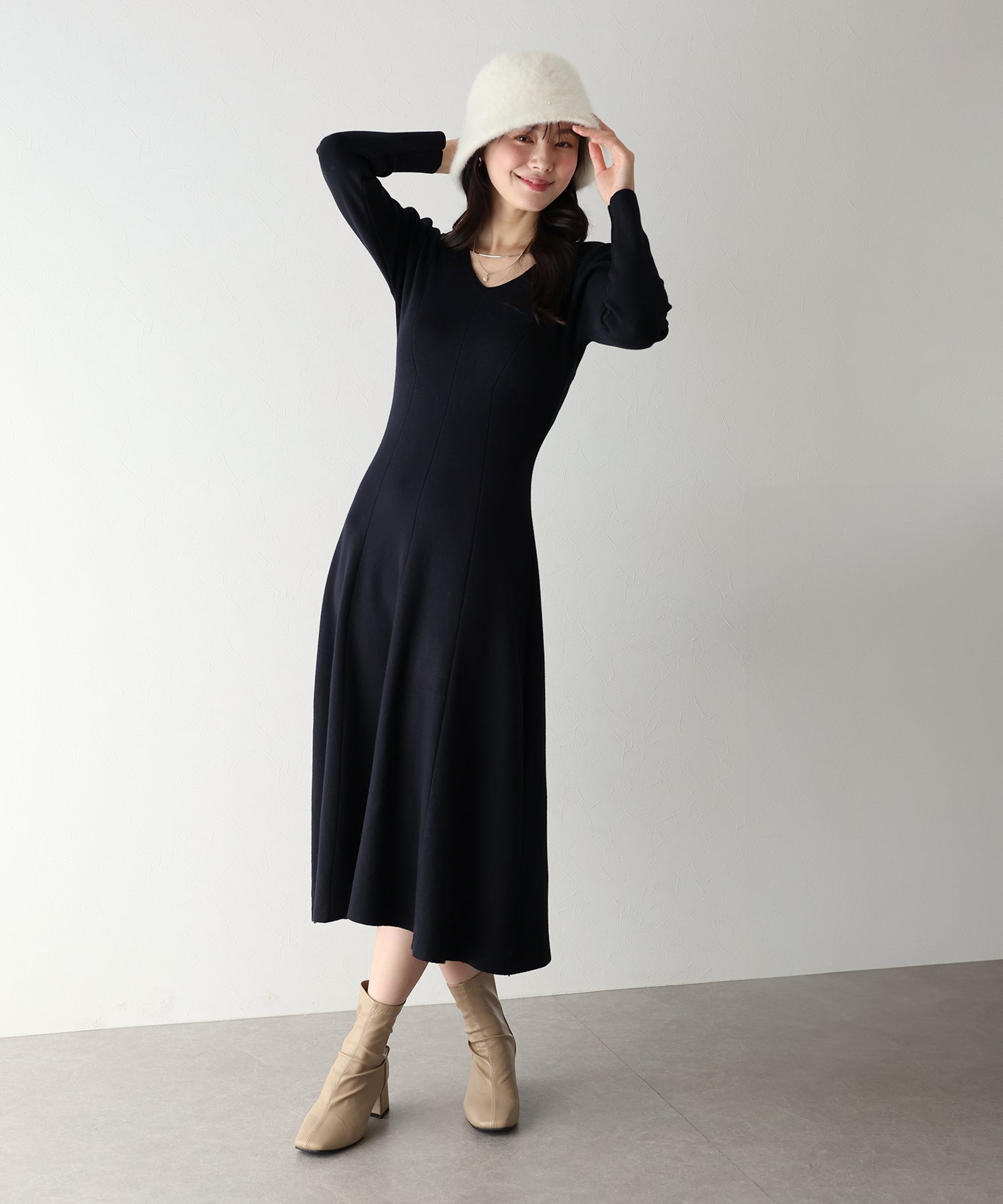 - 【TIME SALE】Vネックシェイプニットワンピース