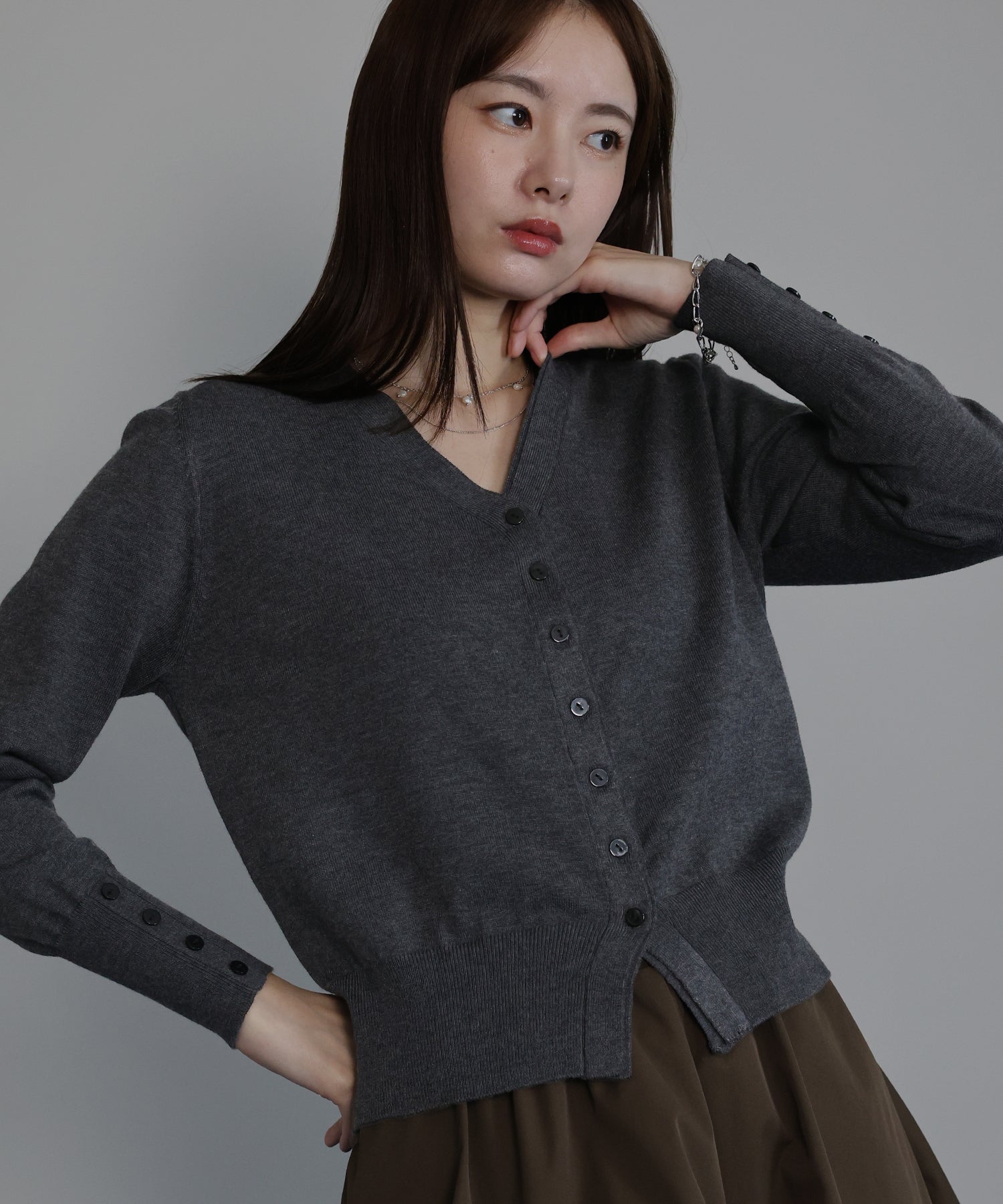 ?DETAIL フェイクレイヤードデザイン フロントボタン開閉可能 Vネック