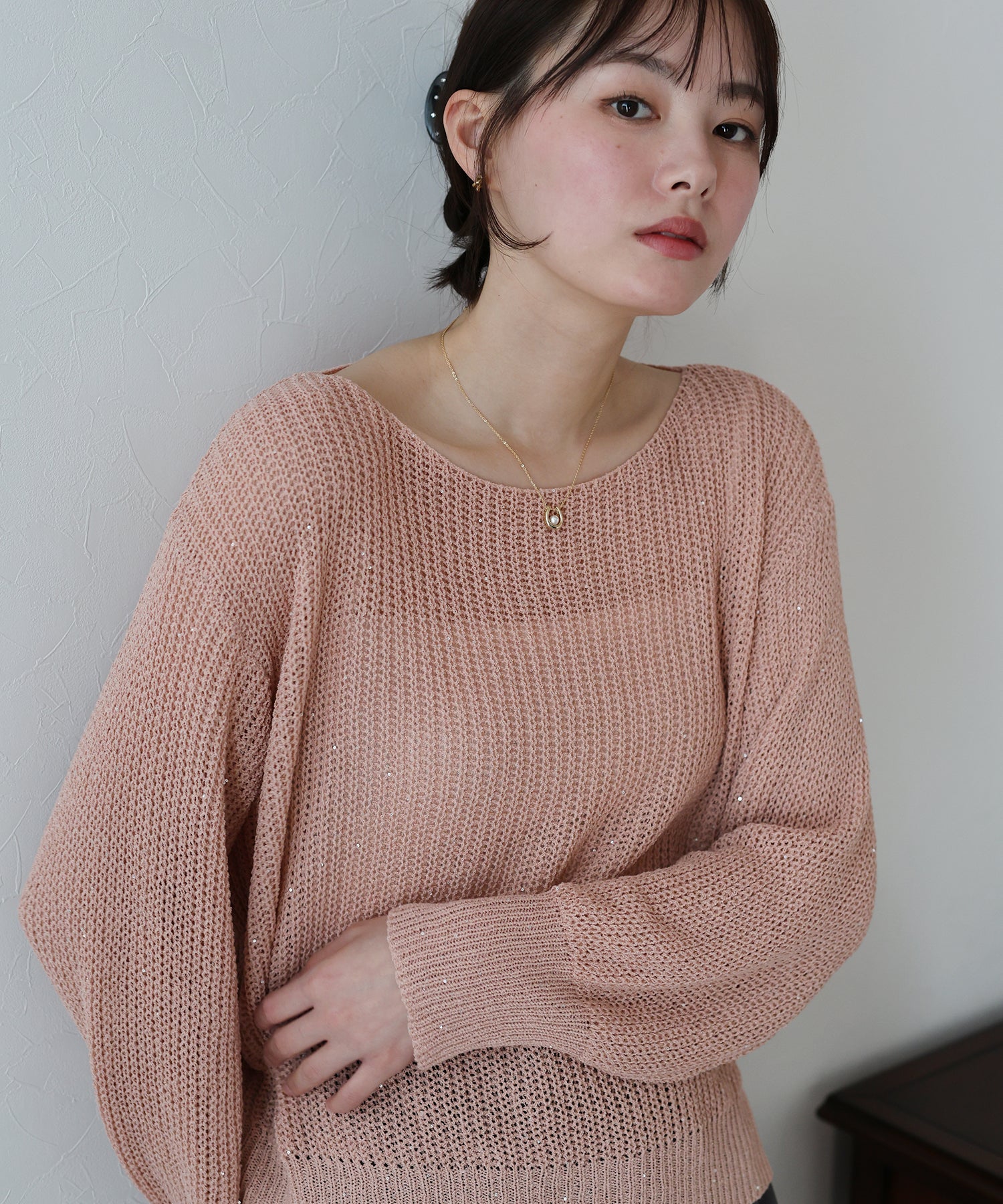 - 【TIME SALE】エンブロイダリーレース半袖ペプラムニット