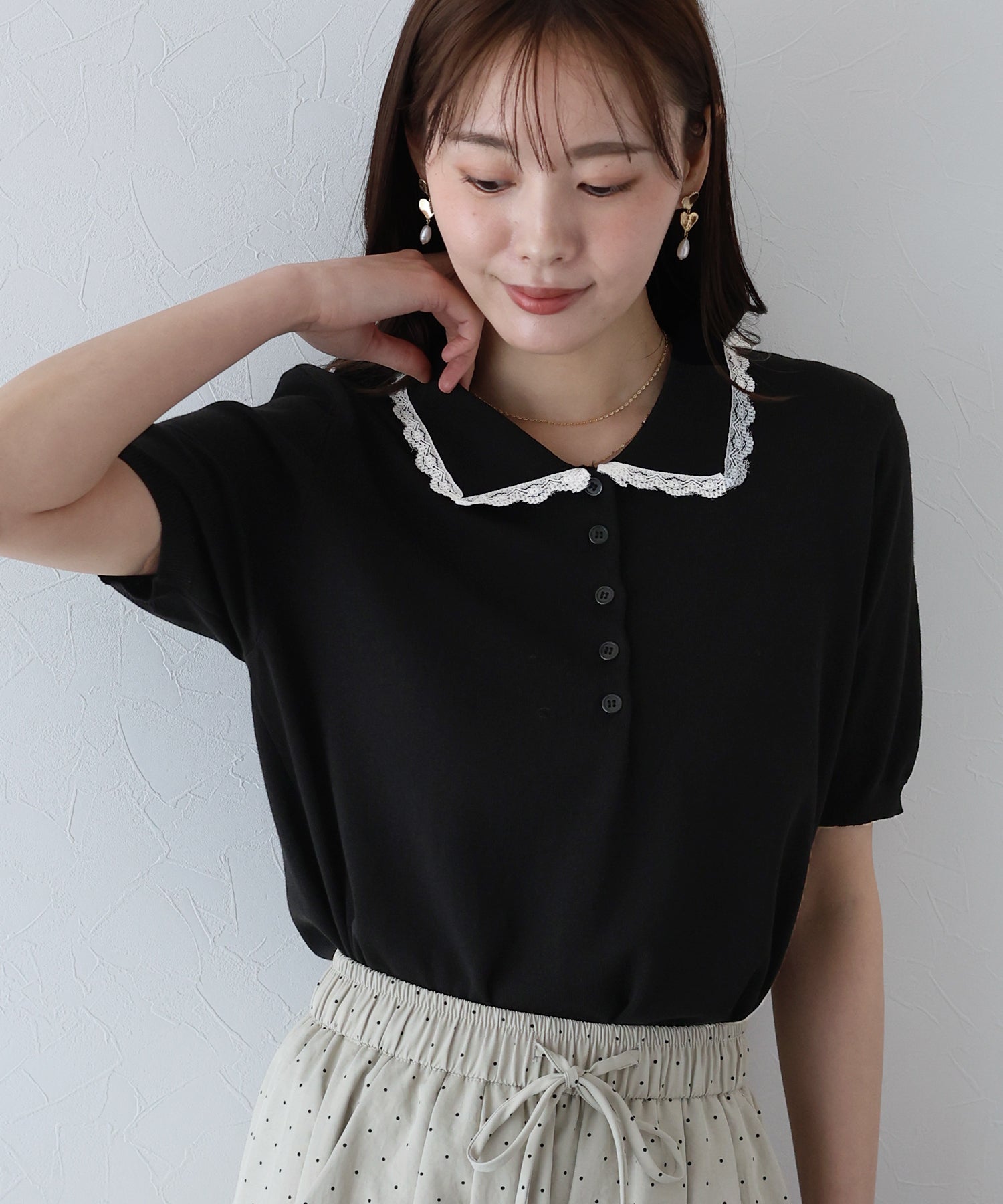 襟にレースをあしらい、女性らしいポイントをプラス。