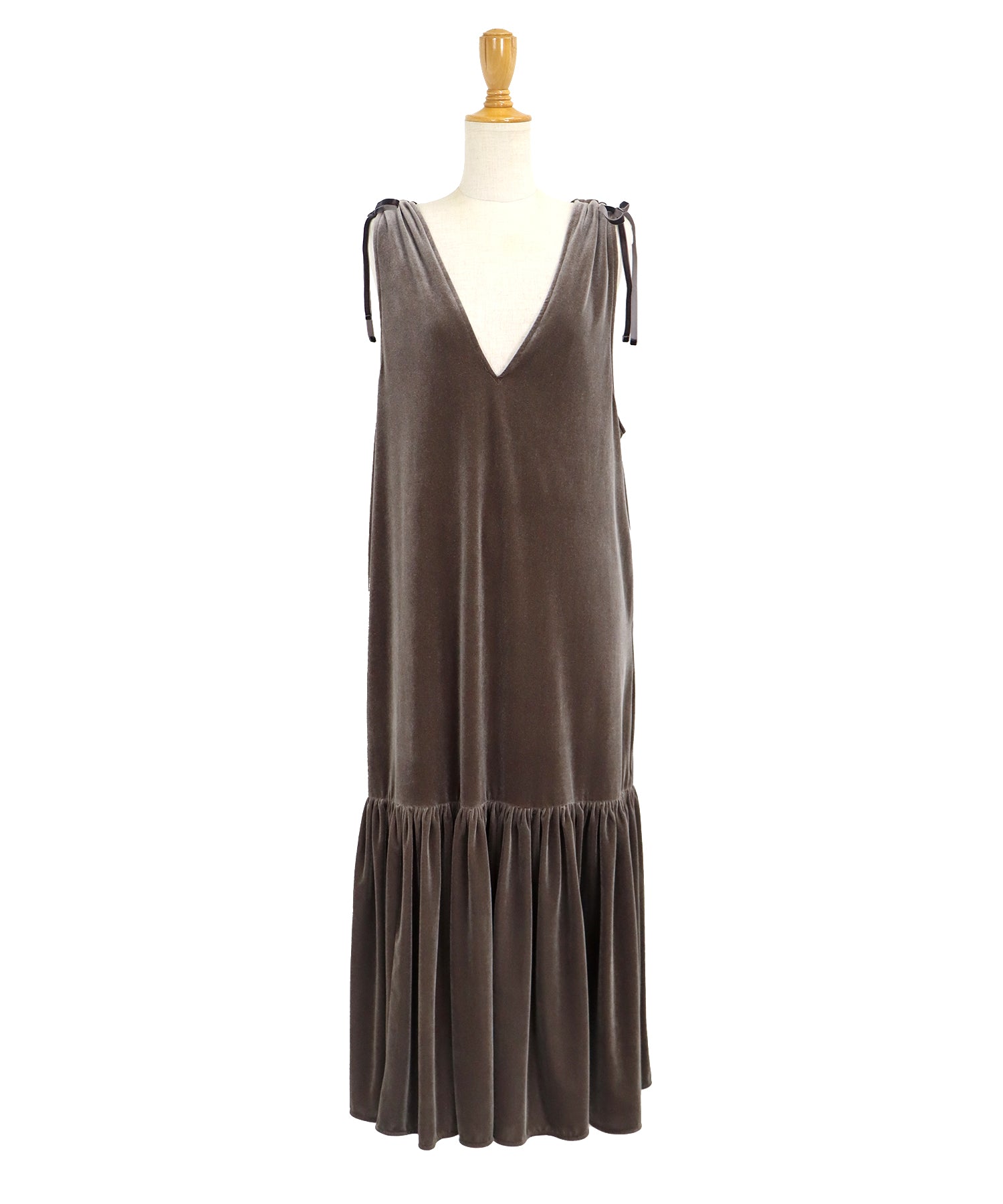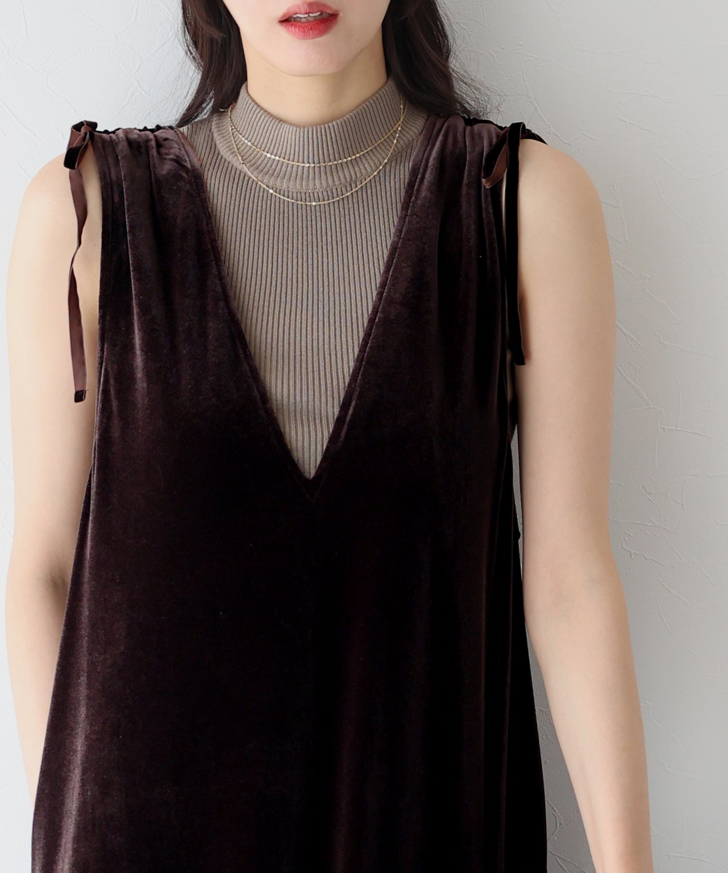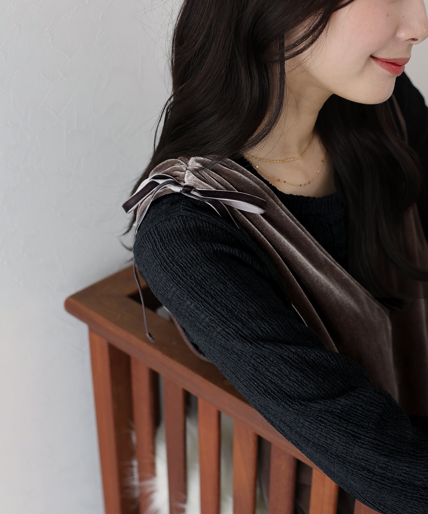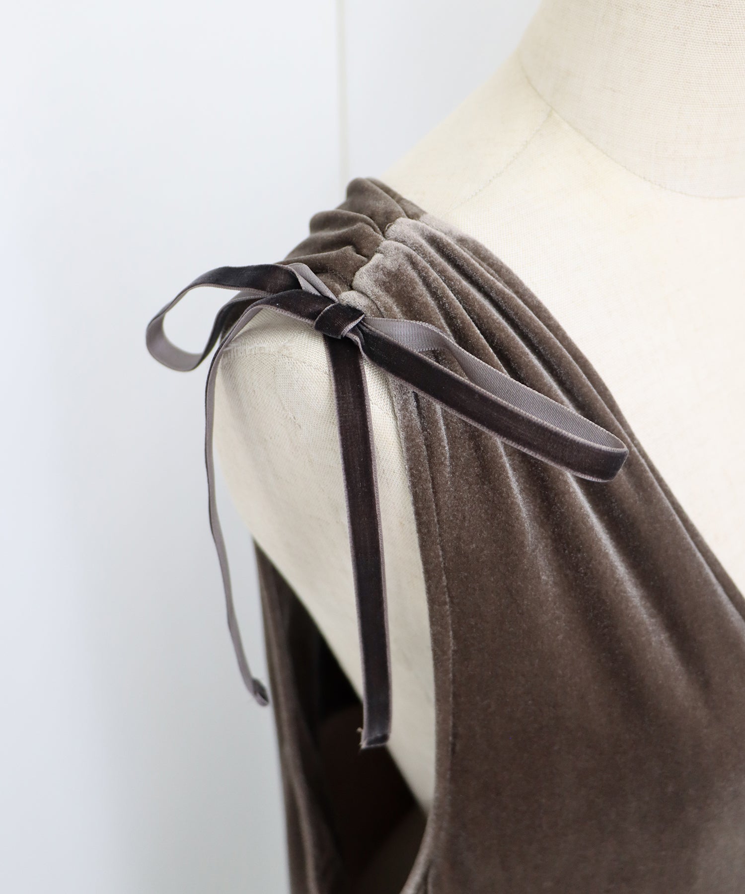 肩のリボンがポイントの上品&フェミニンなベロアワンピース
