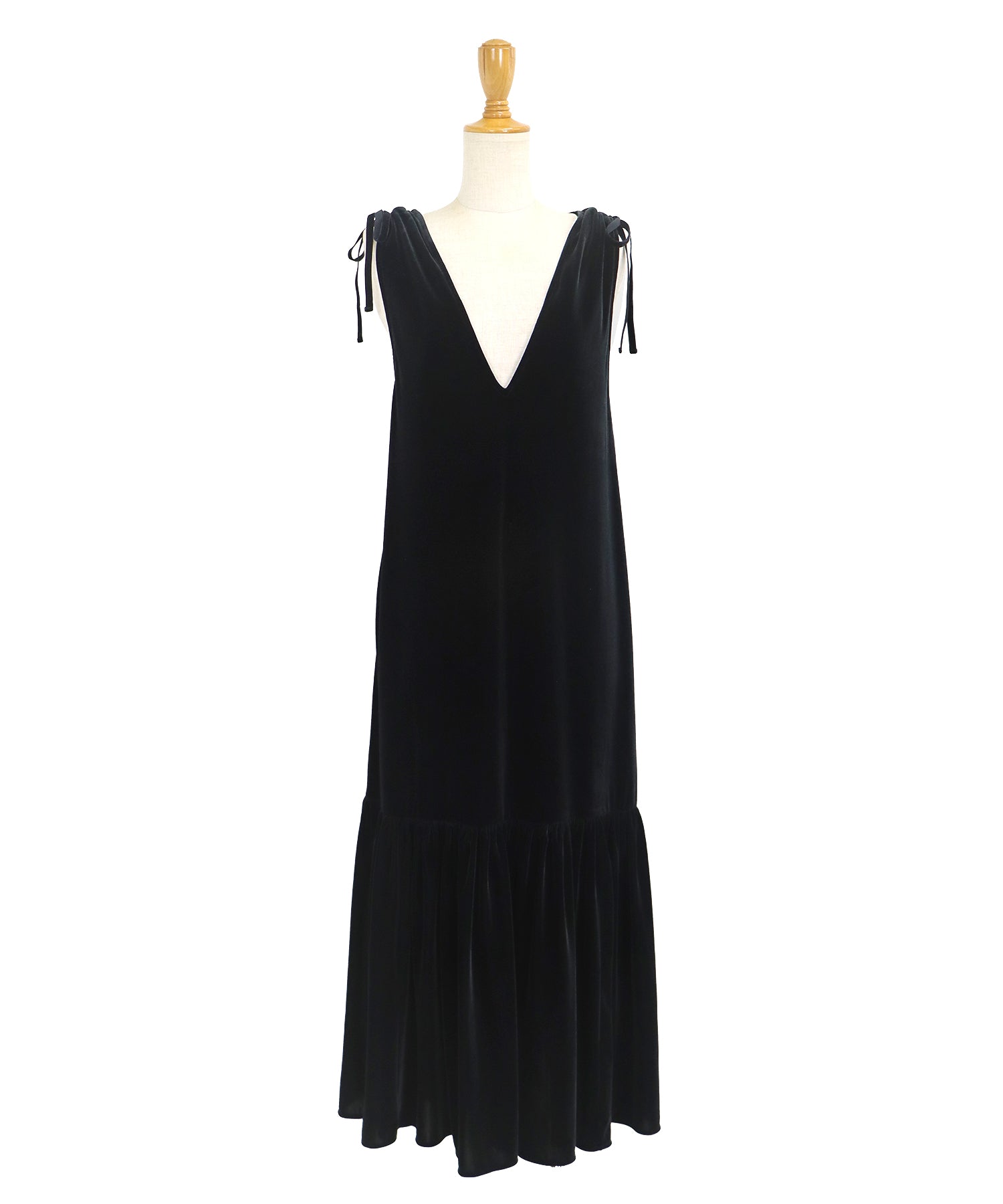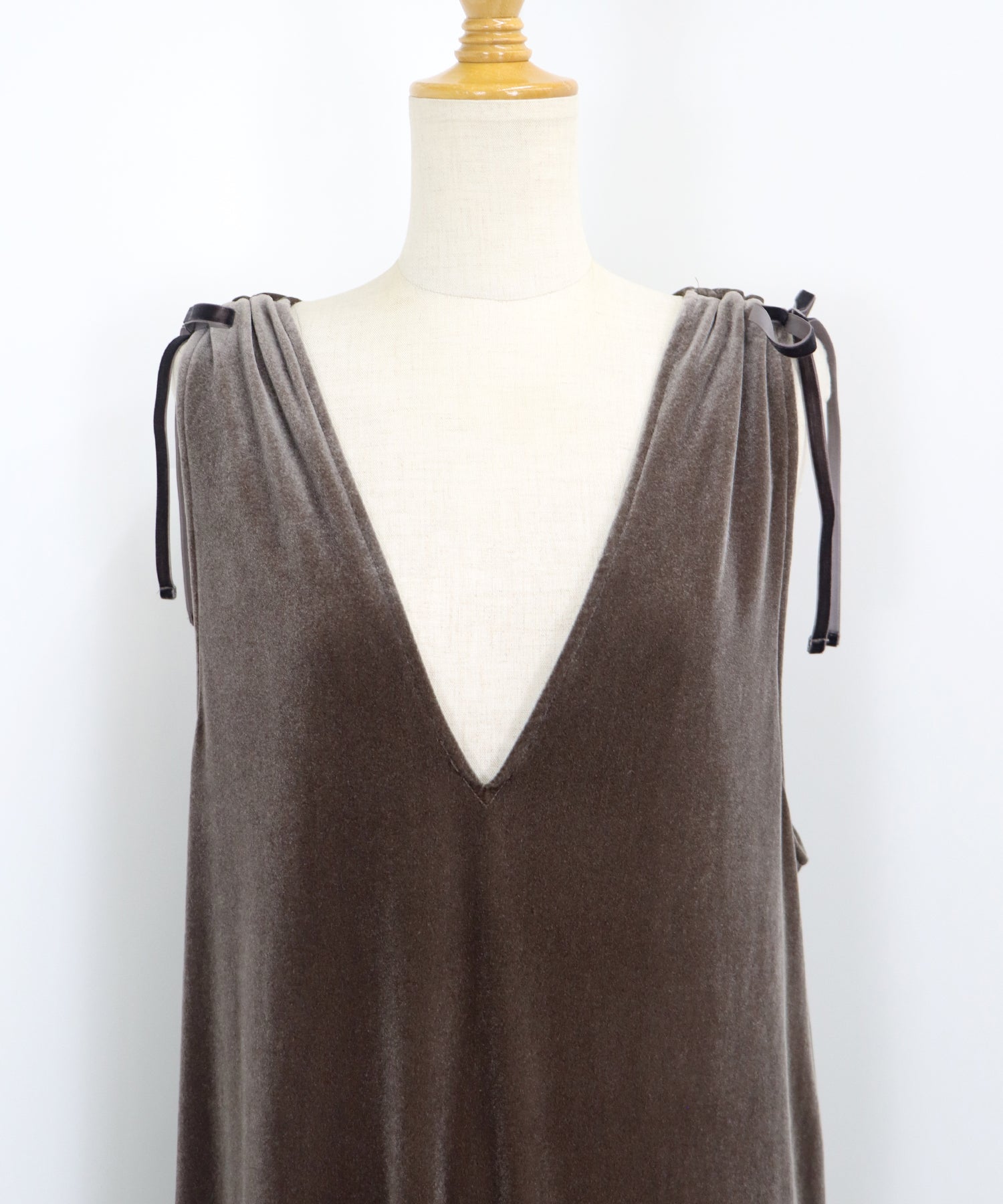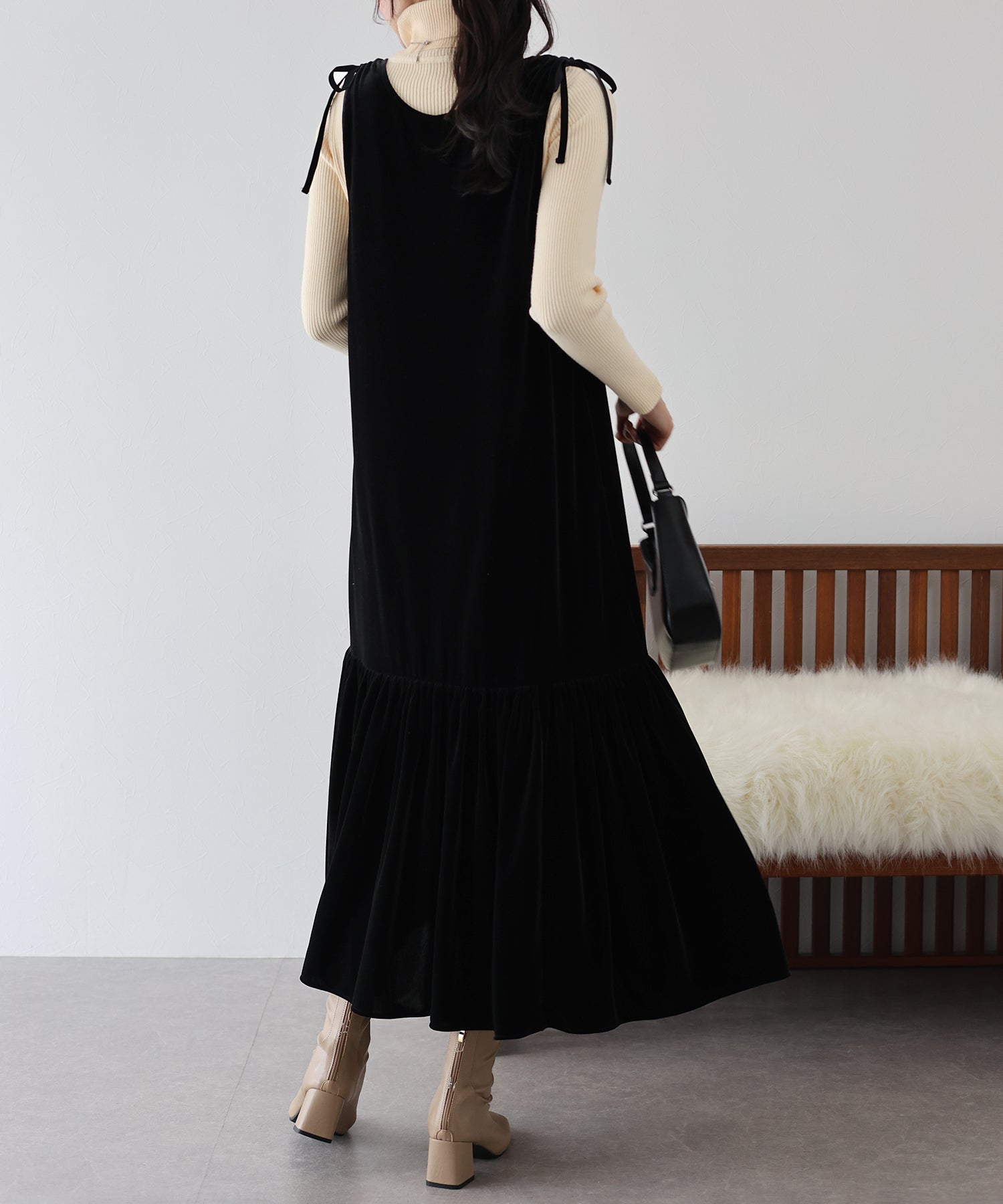 肩のリボンがポイントの上品&フェミニンなベロアワンピース
