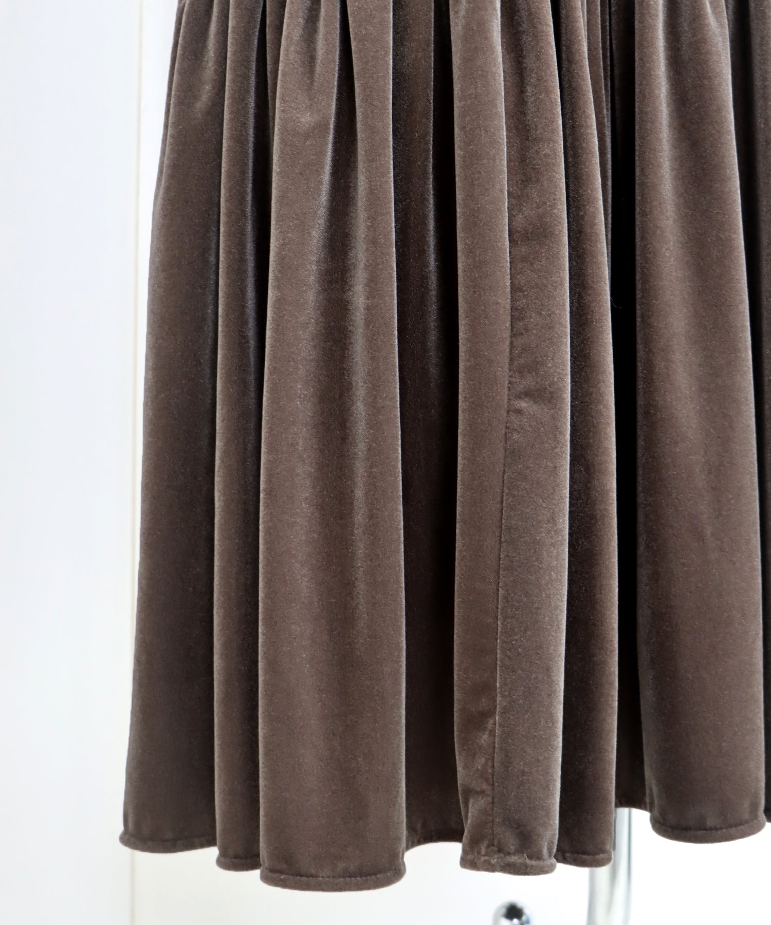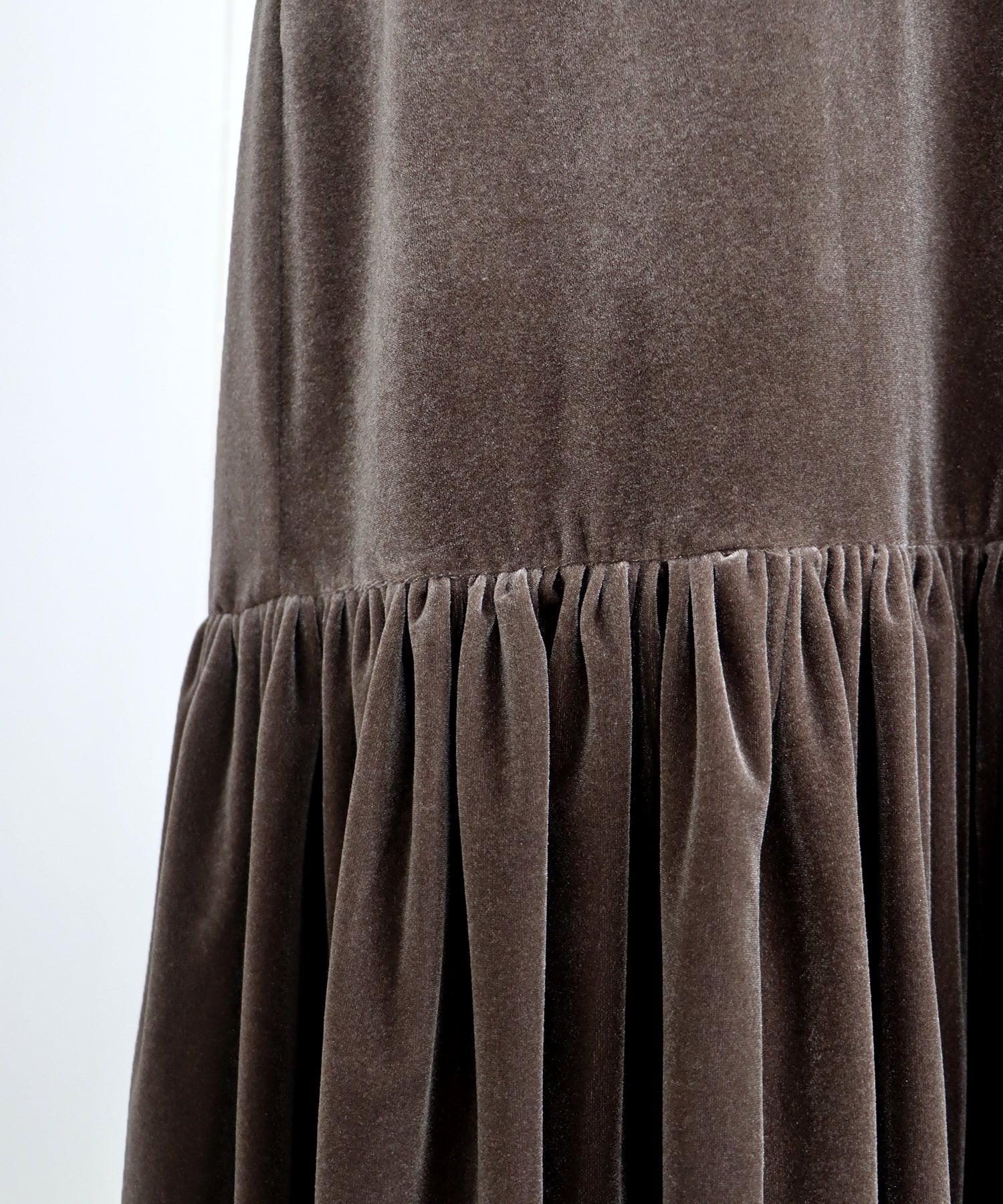 ?POINT クラシカルで着まわしやすい2WAYベロアジャンスカ。 両肩のシャーリングリボンと裾のフレアに広がるティアードラインでフェミニンなポイントをプラス。 Vネックとすとんとしたラインで上半身はスッキリとしながらも、 裾はギャザーを寄せたメリハリのあるマーメイドシルエットに仕上げ、どんなトップスとも相性良く可愛く着こなせます。 程よくゆったりとしたシルエットで体型カバー効果があり、 サイドにはあると便利なポケット付きです。