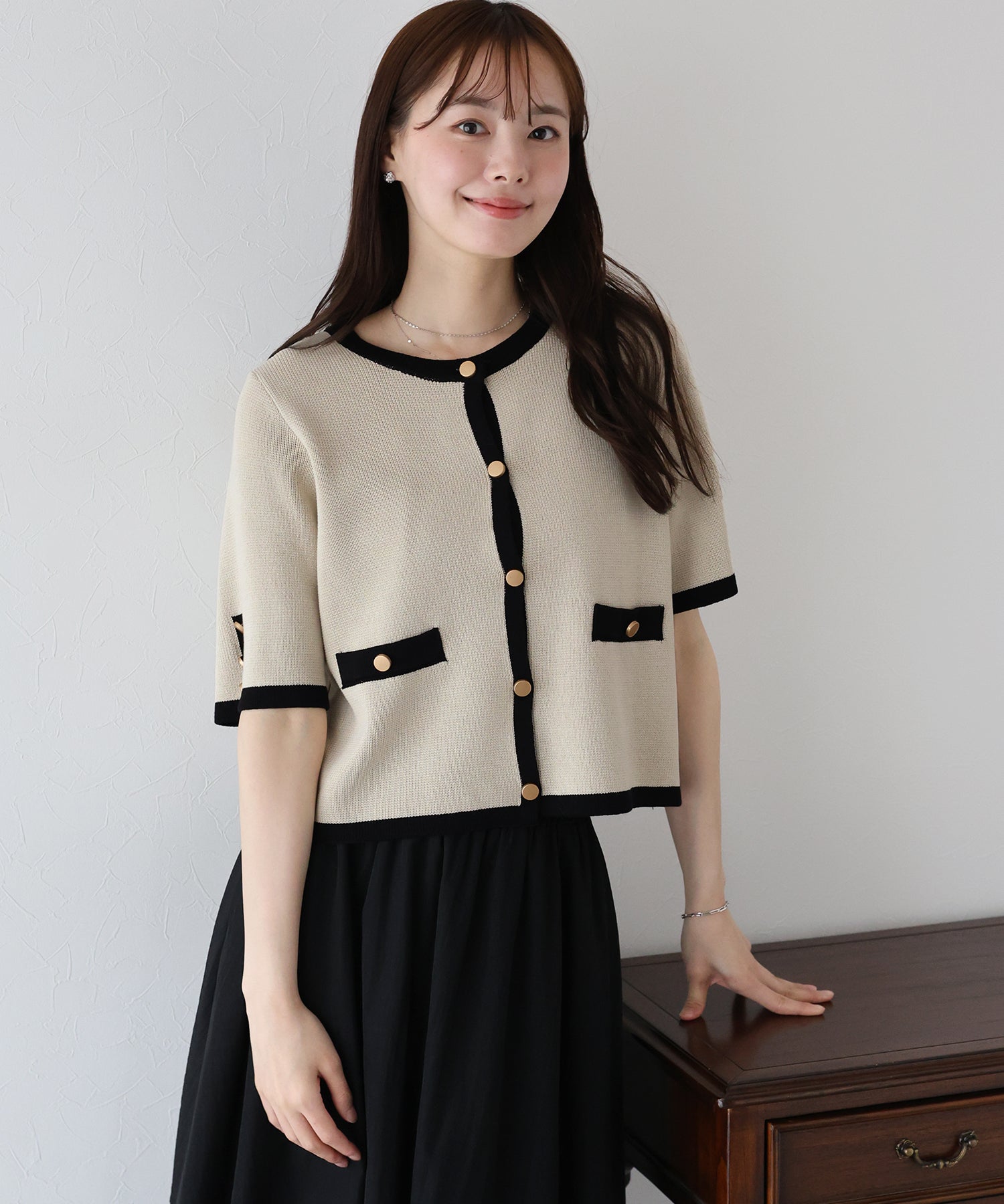 【TIME SALE】金ボタン半袖ニットジャケット