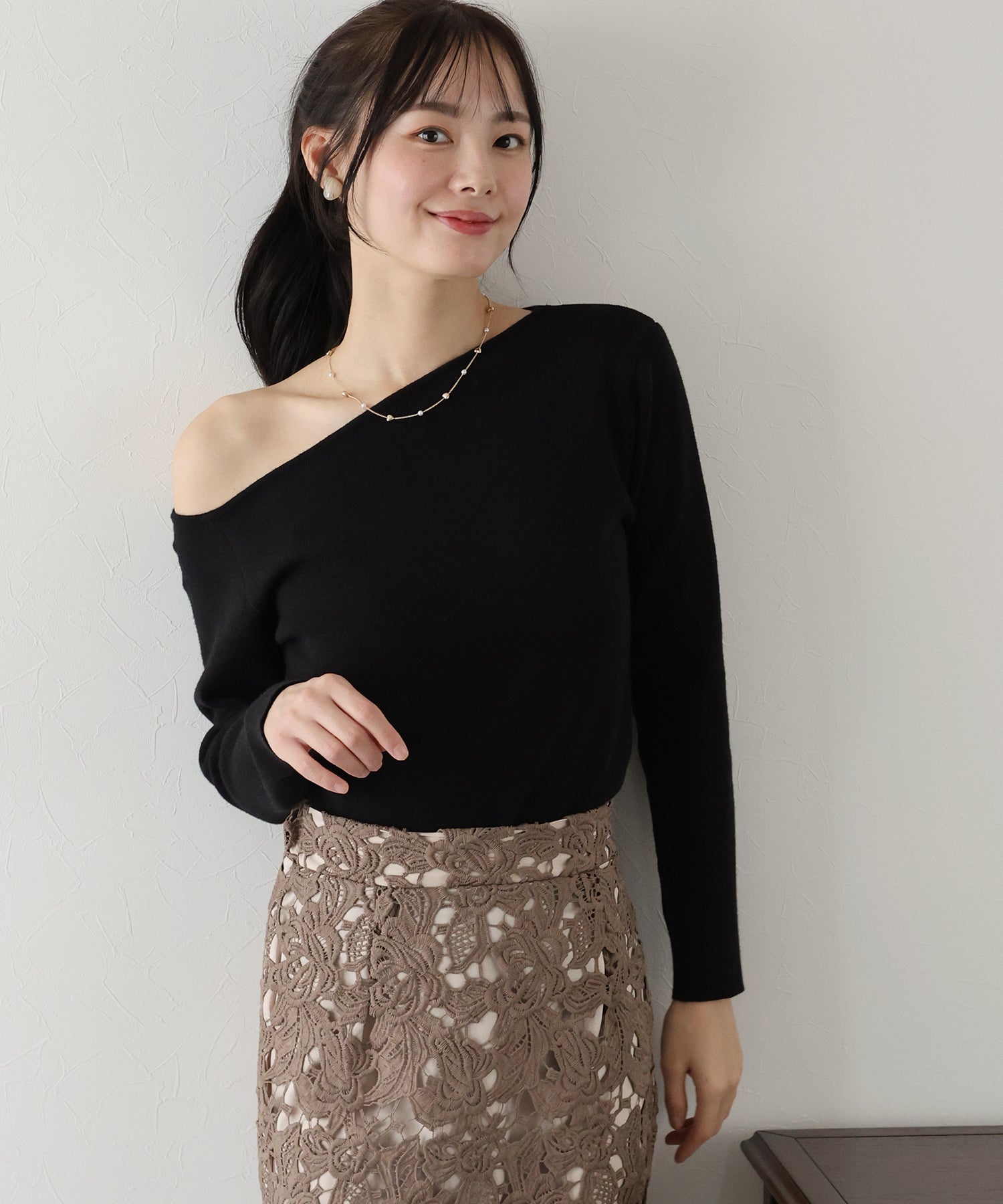 - アシメネックニット