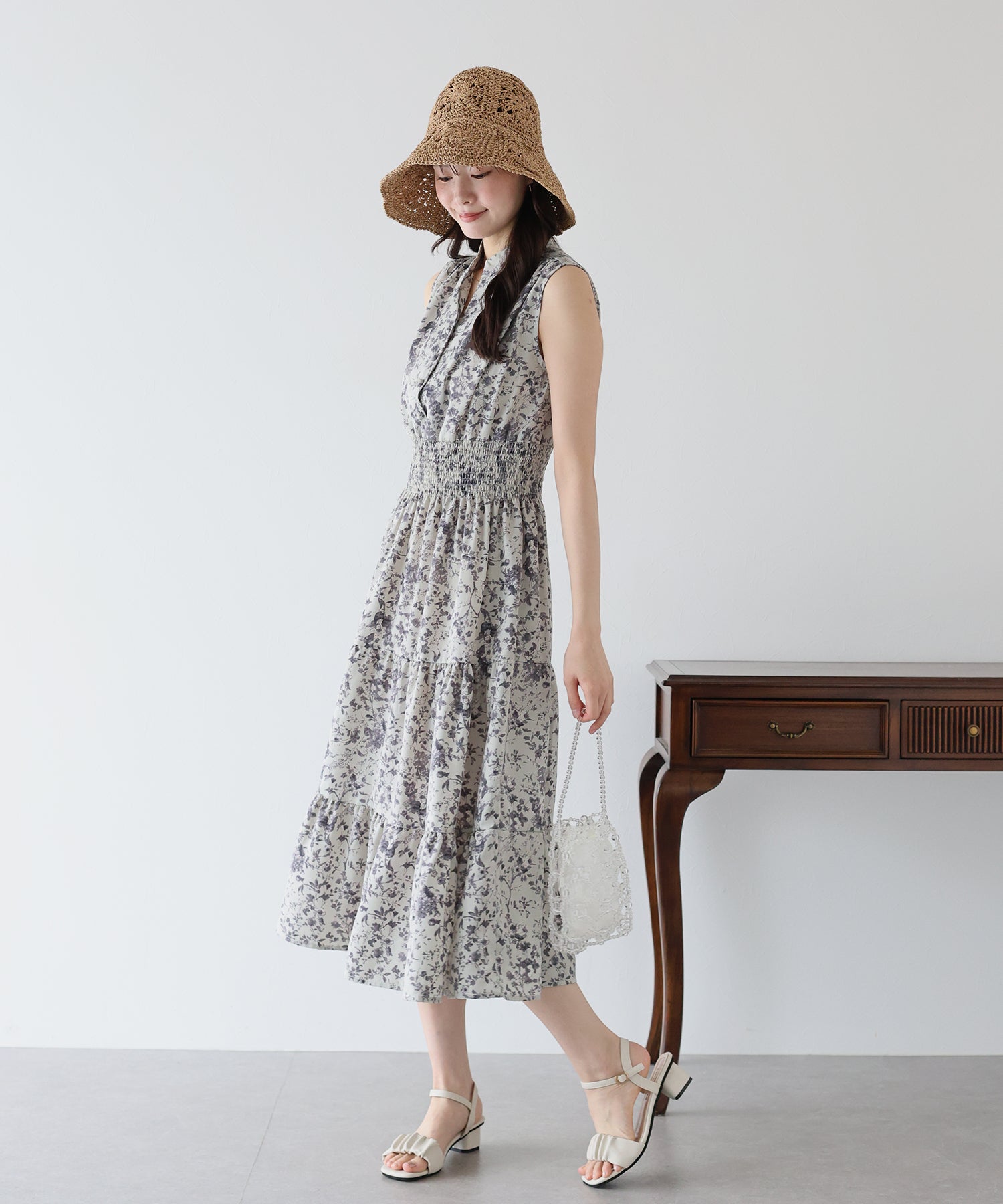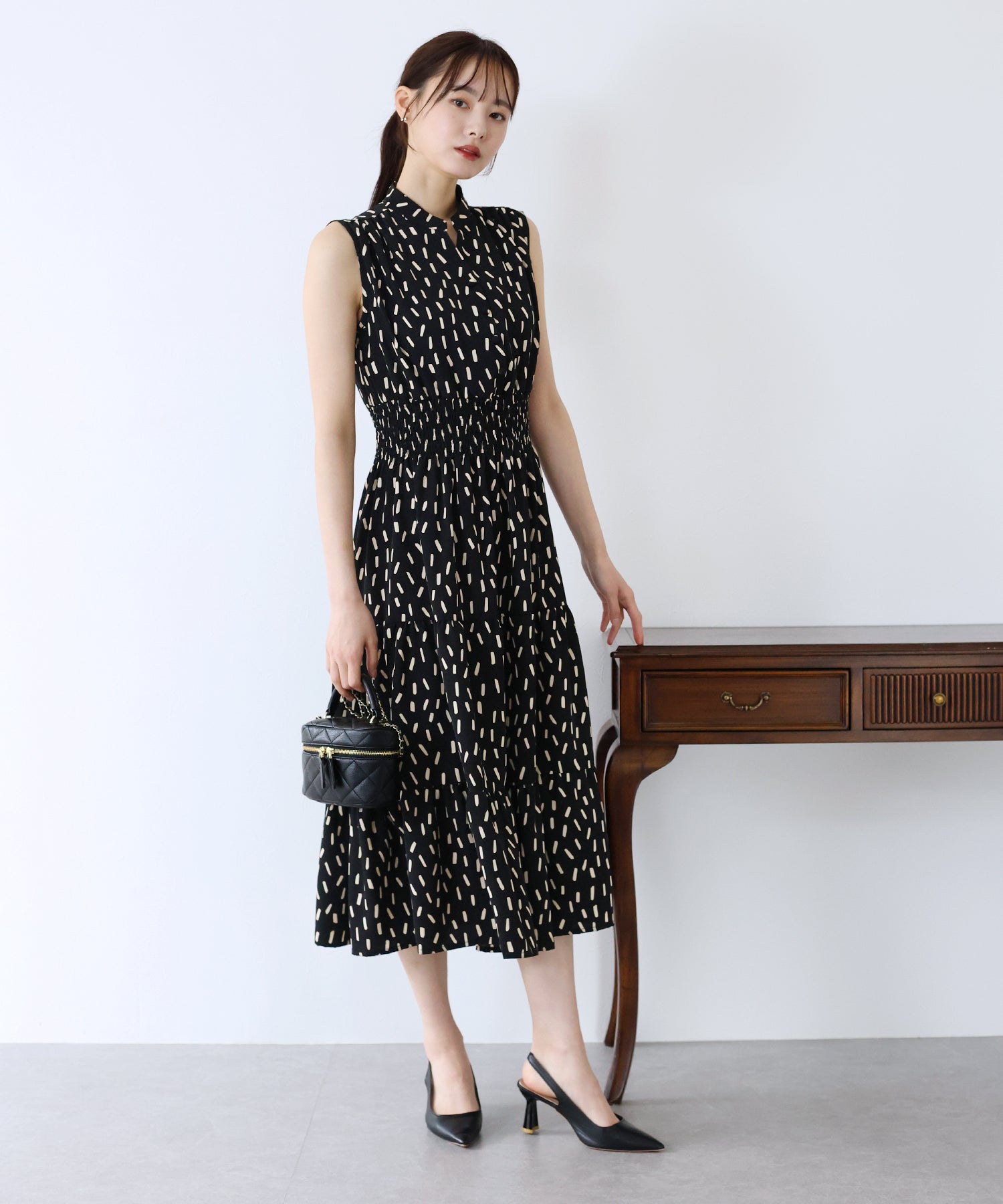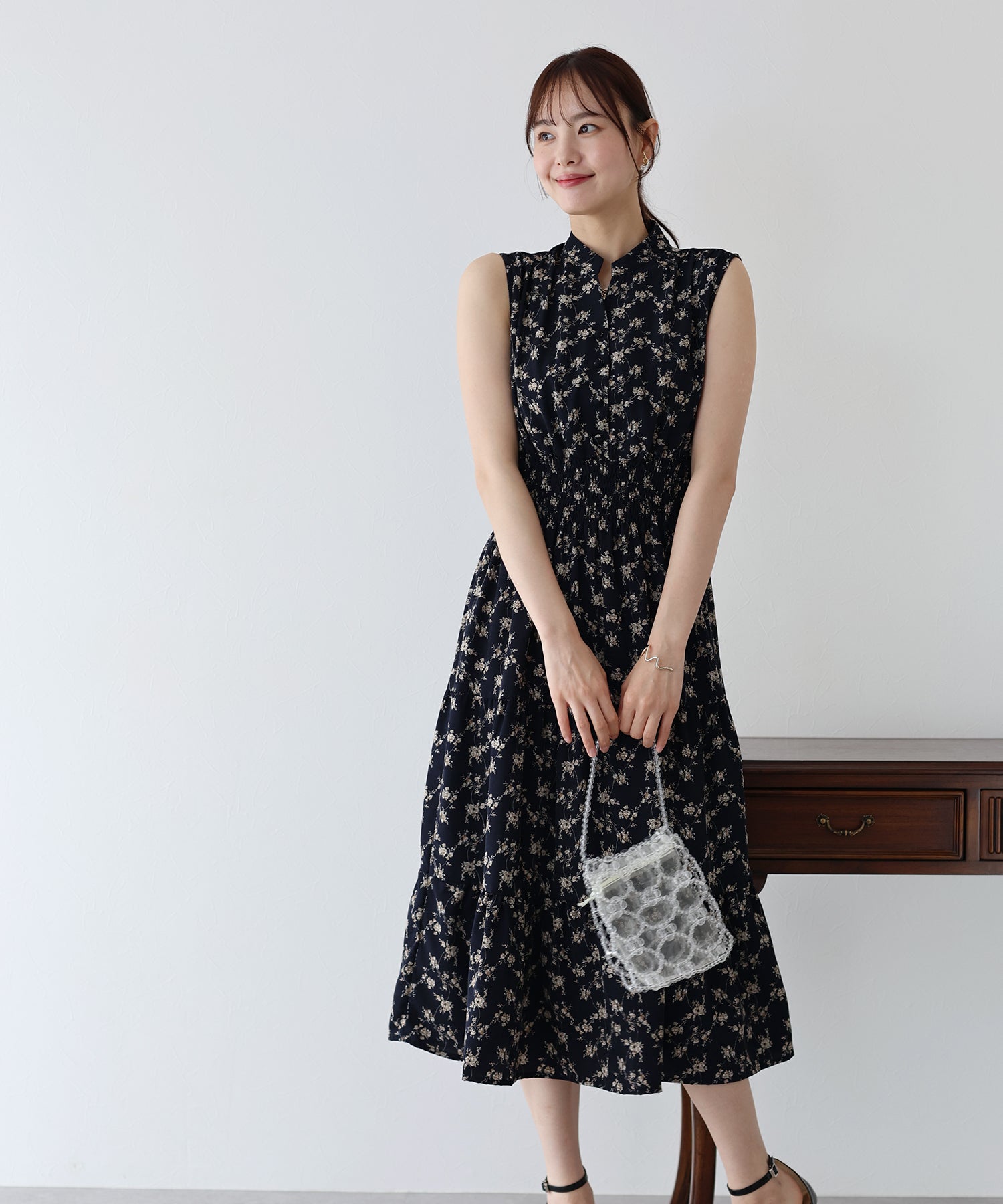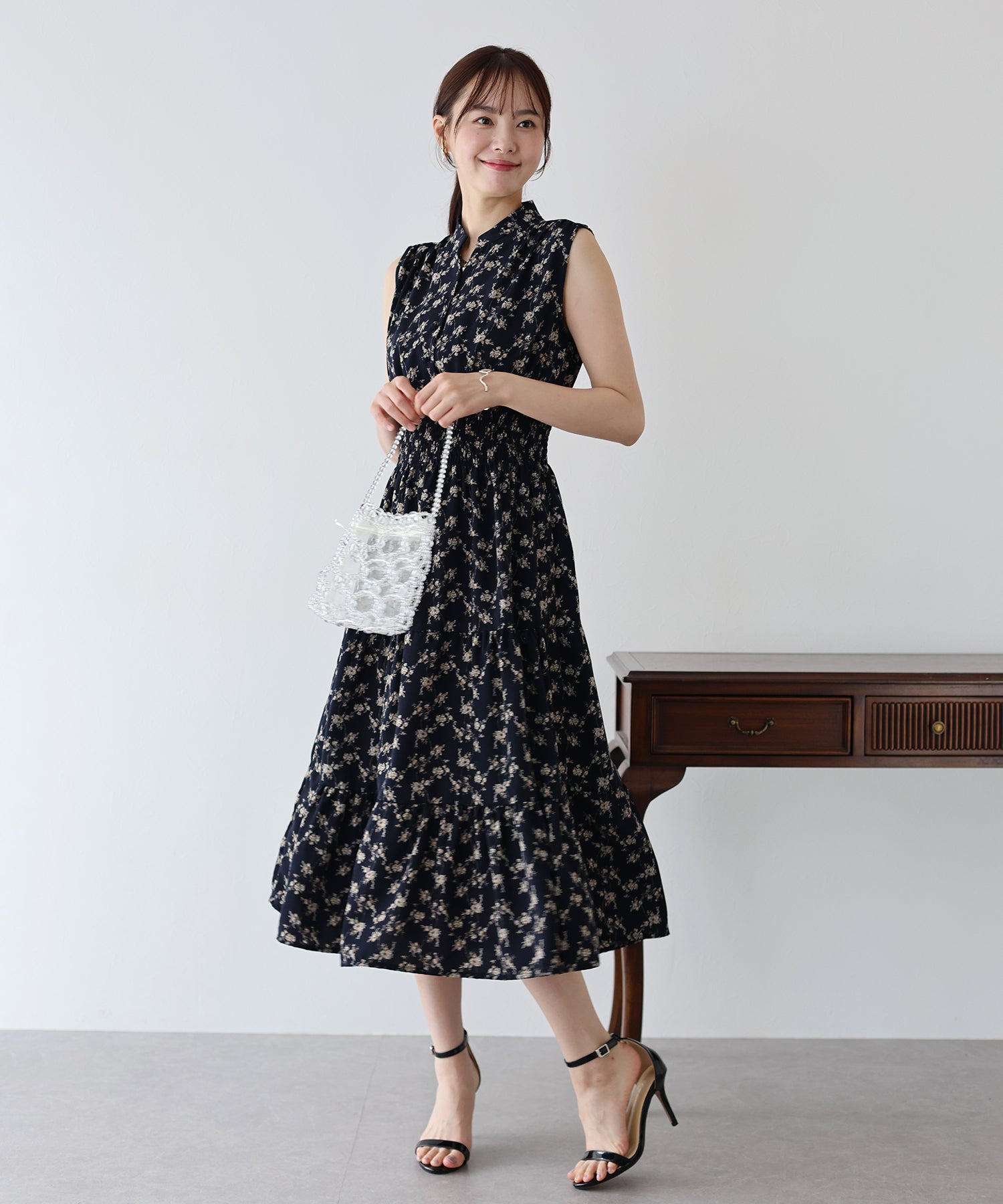 ?STYLING 1枚で着映えするワンピースは足元や小物で印象を変えて楽しめます。 ヒールを合わせてフェミニンに、 クリアサンダルやかごバッグなどの季節感のあるアイテムを合わせて夏らしいコーディネートが◎