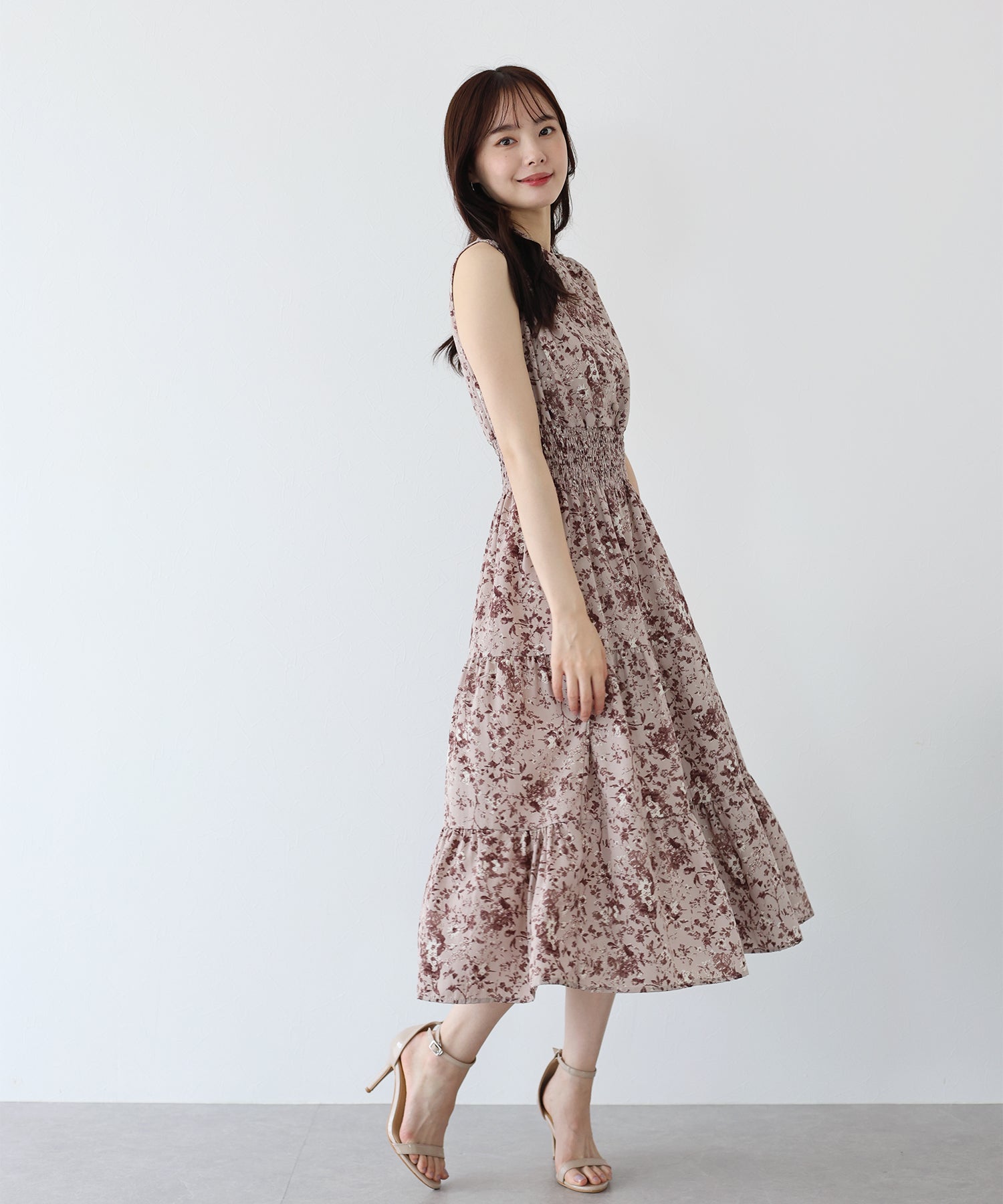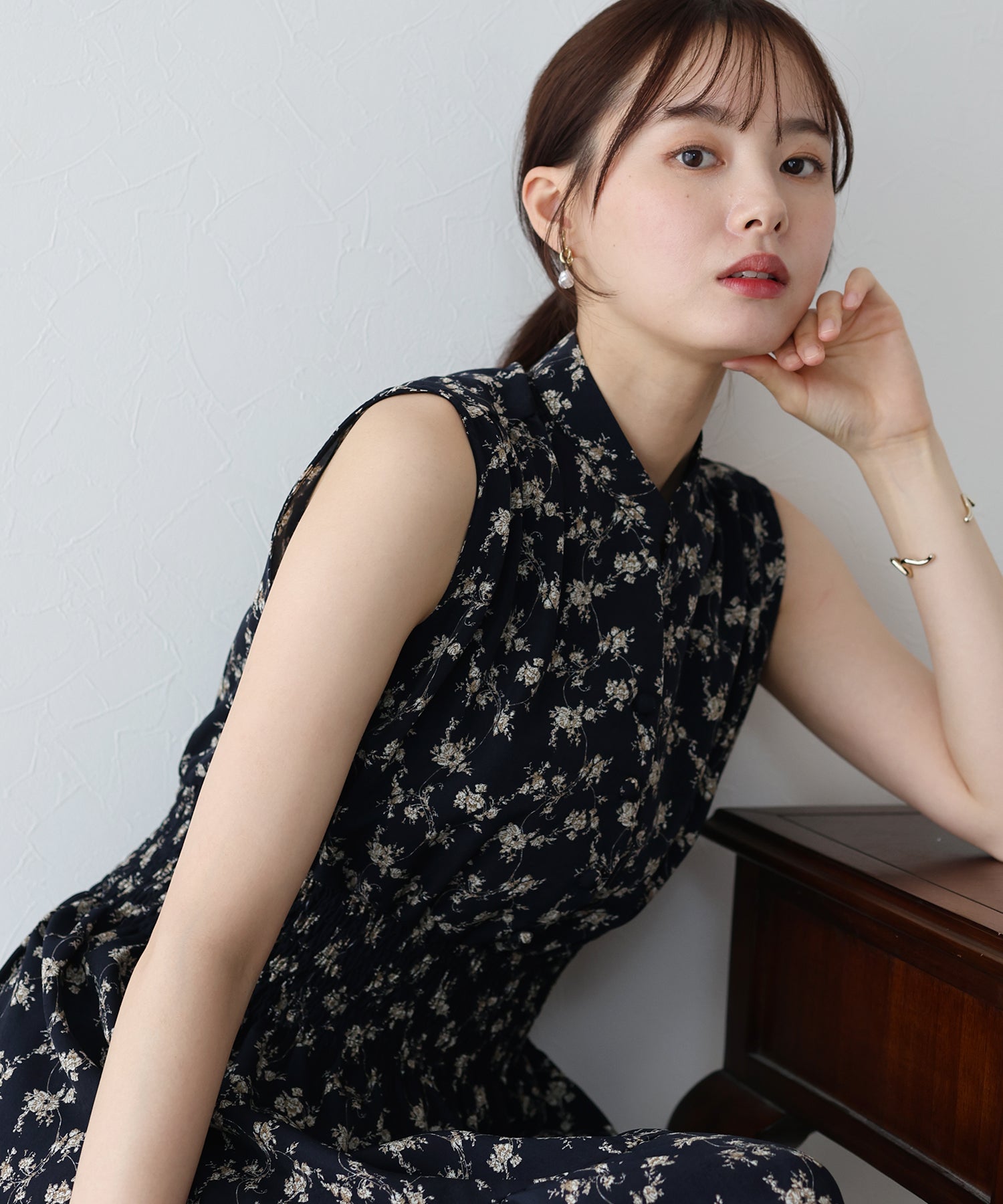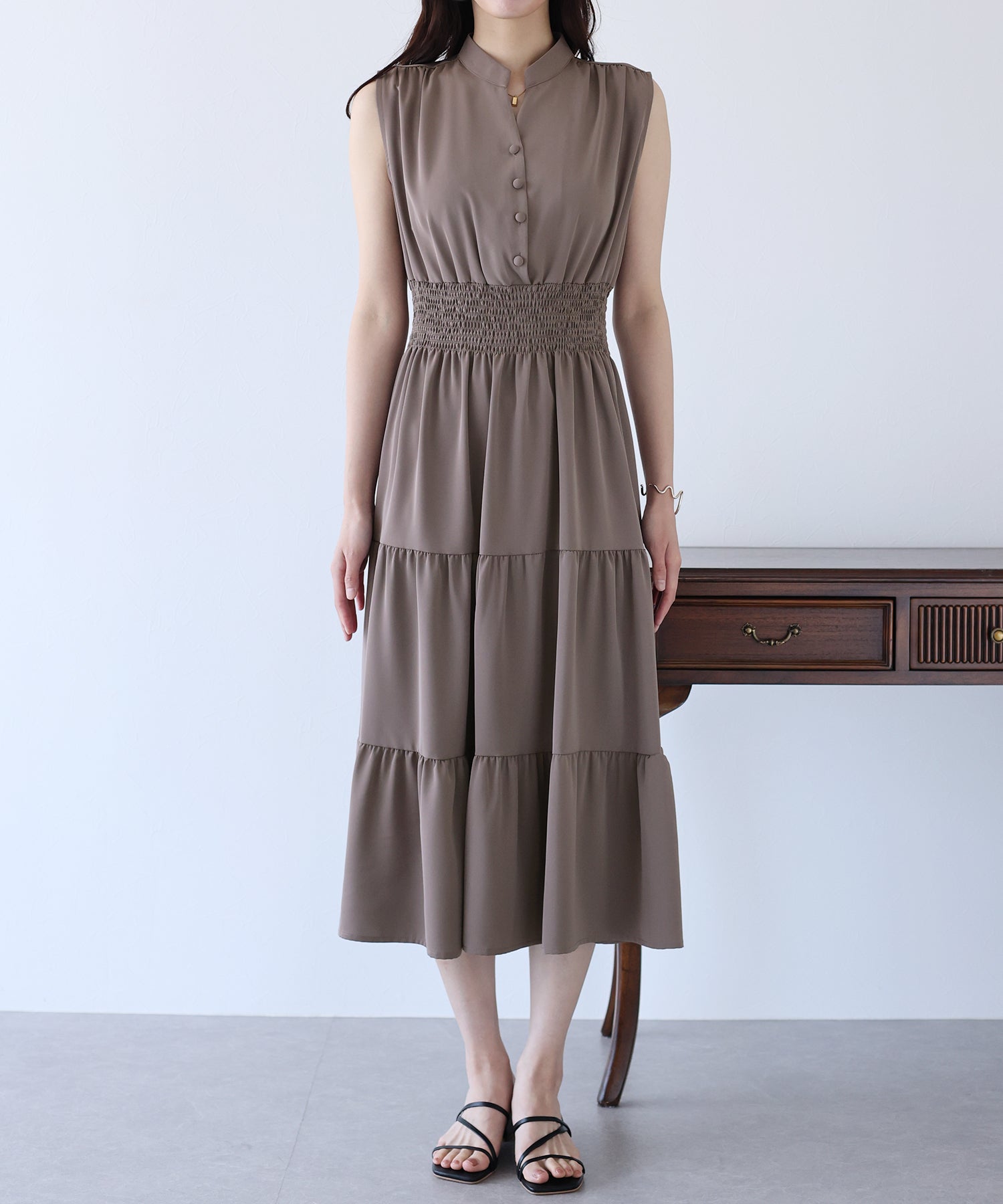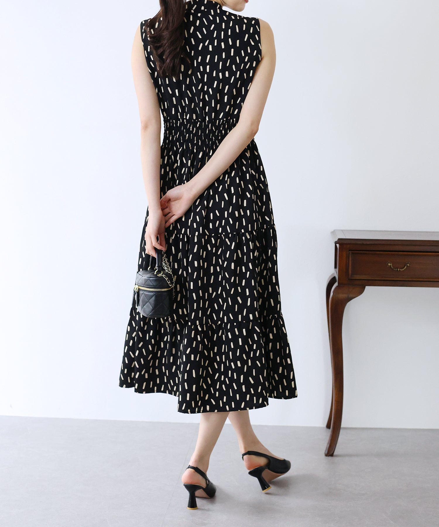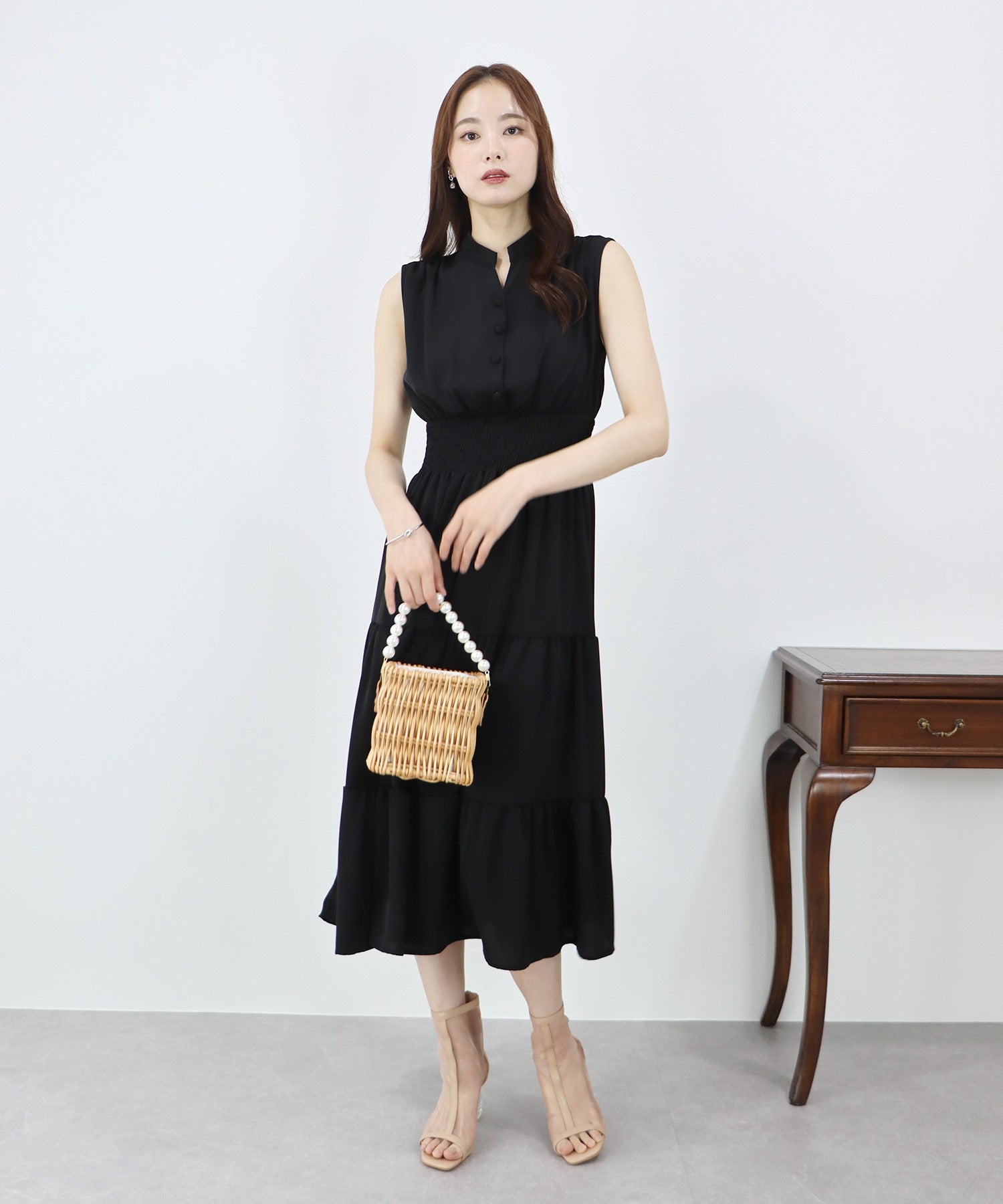 ?STYLING 1枚で着映えするワンピースは足元や小物で印象を変えて楽しめます。 ヒールを合わせてフェミニンに、 クリアサンダルやかごバッグなどの季節感のあるアイテムを合わせて夏らしいコーディネートが◎