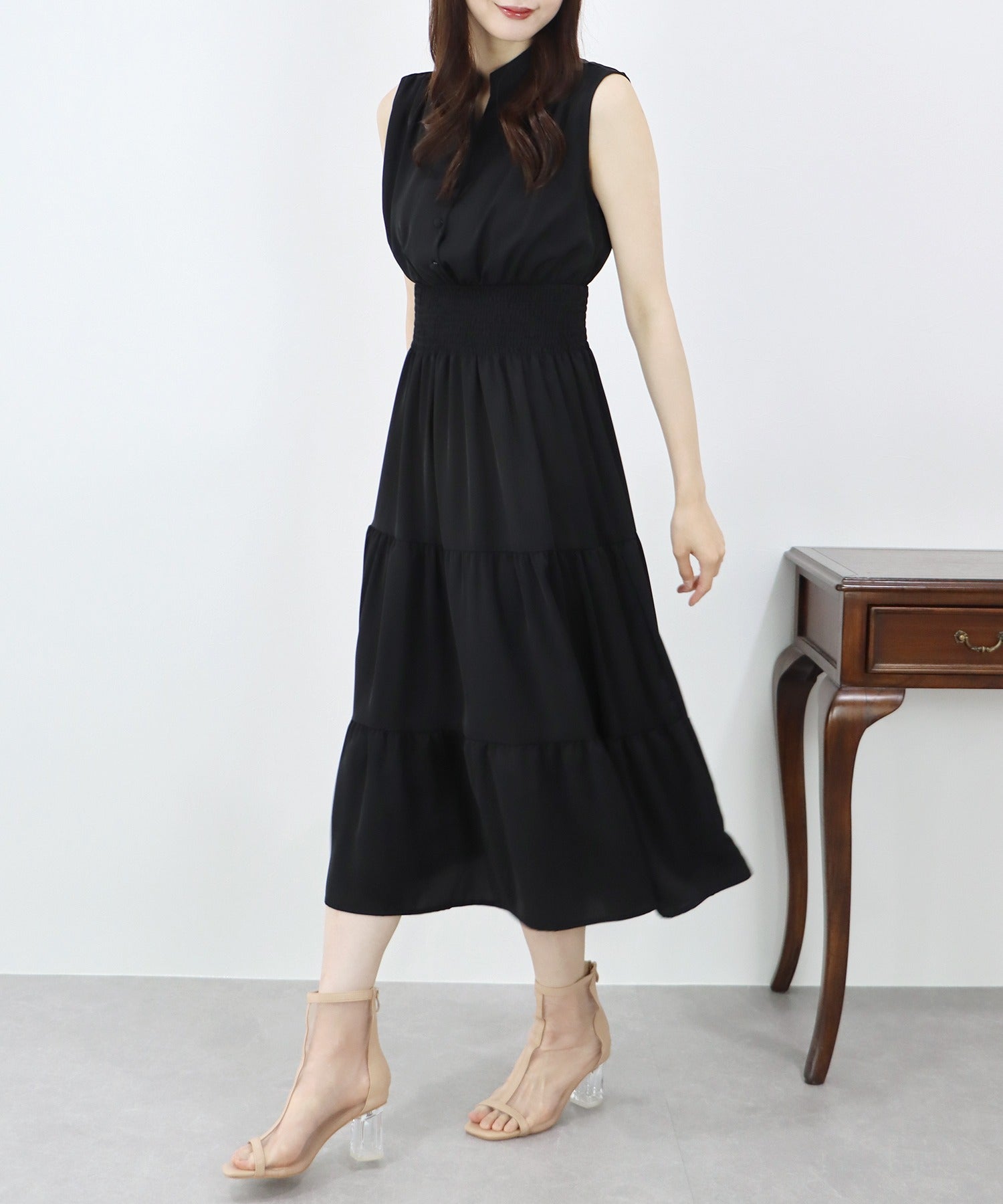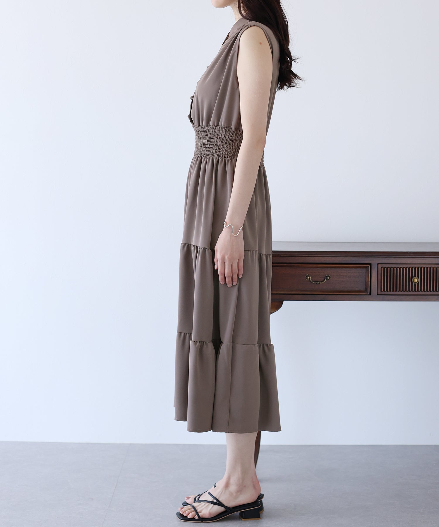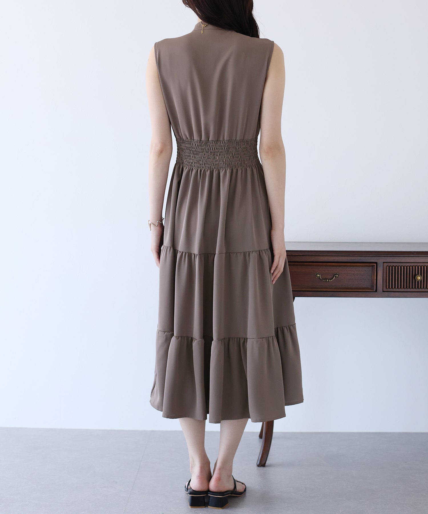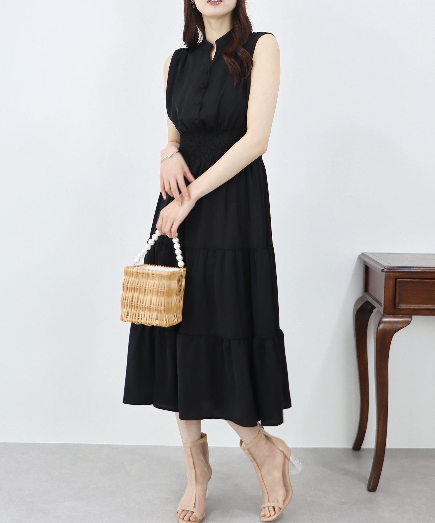 ?STYLING 1枚で着映えするワンピースは足元や小物で印象を変えて楽しめます。 ヒールを合わせてフェミニンに、 クリアサンダルやかごバッグなどの季節感のあるアイテムを合わせて夏らしいコーディネートが◎
