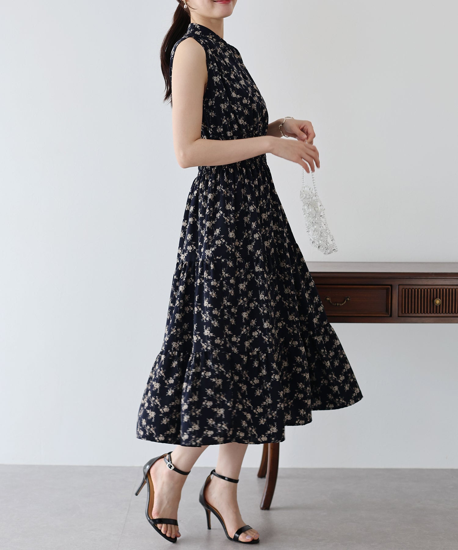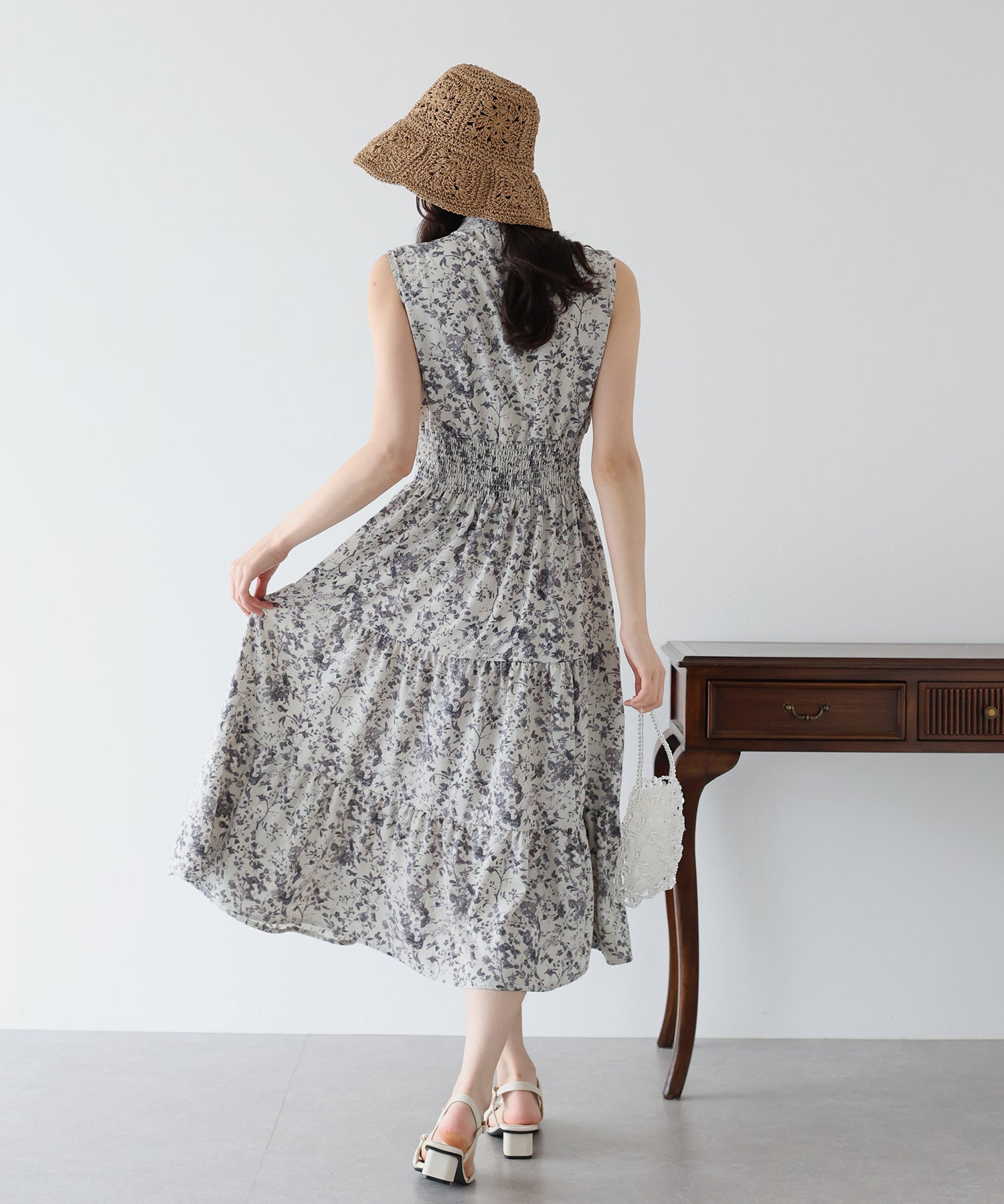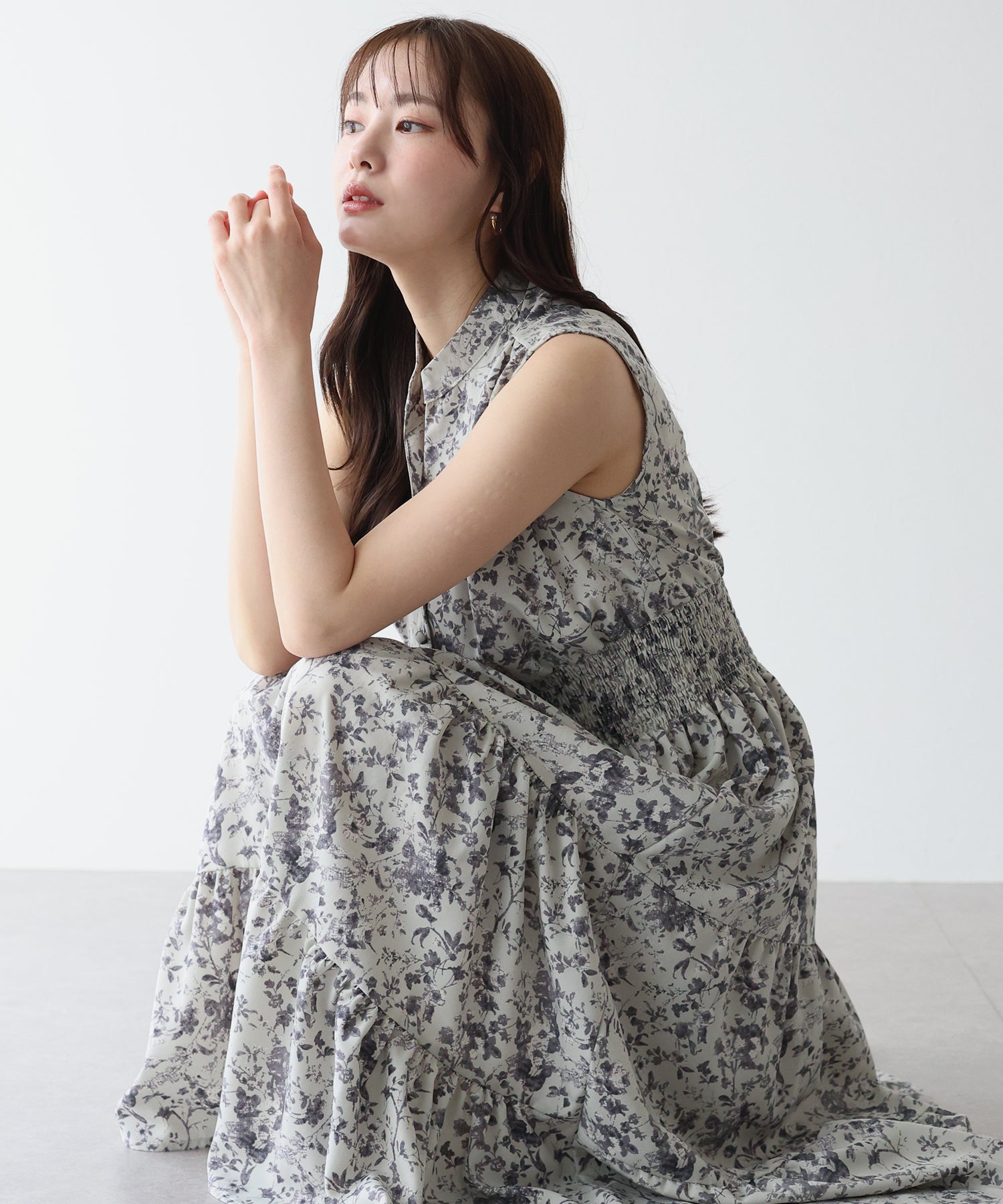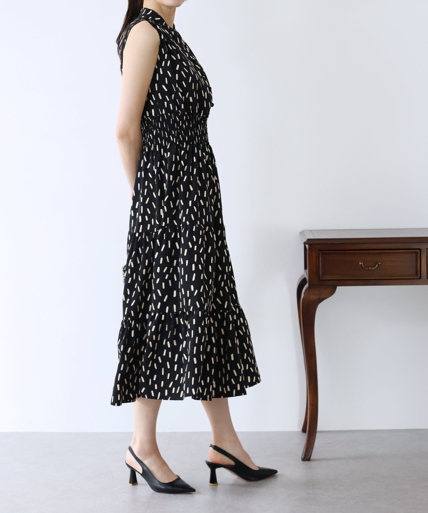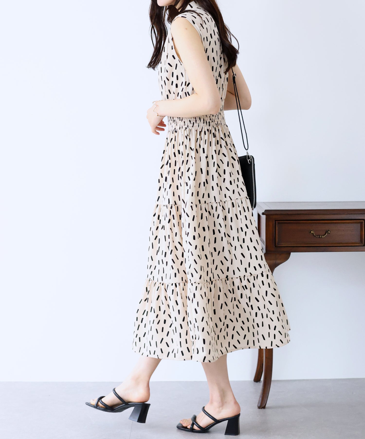 ?POINT 洗練された雰囲気が漂う、大人のデイリー総柄ワンピース。 ネックはスキッパーデザインで顔周りをすっきりと見せてくれます。 足首までのロング丈で、一枚着ればおでかけできるお手軽さも嬉しいアイテムです。